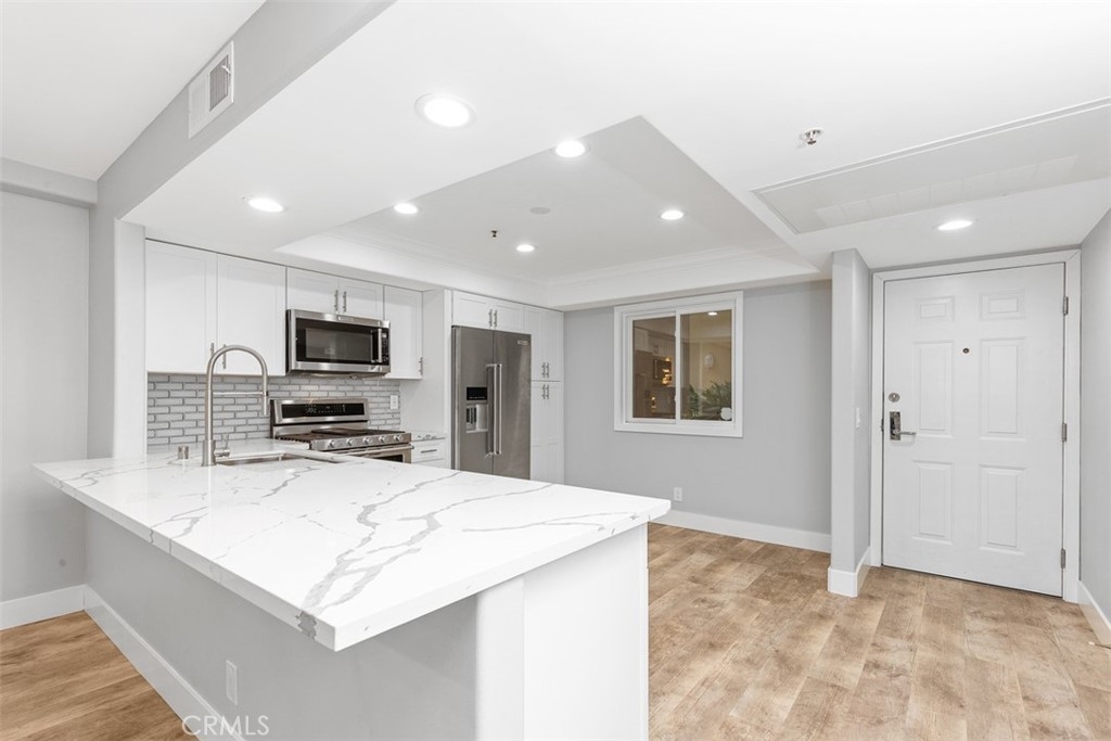 * * * LOCATION LOCATION LOCATION * * * TOTALLY REMODELED!! An Absolute Stunning Beach Condo. From the moment you walk in - Feel the Fresh Ocean Breeze. Not a dime spared. Tastefully Designed! Nothing was left untouched. No Carpet. Single level/ No steps inside. All-New Stainless Steel Appliances, intricate custom back splash to compliment the Gorgeous Quartz counter tops with hints of natural light gray veins. Beautiful Beachwood Plank flooring throughout. Open Kitchen to the main Living space onto your spacious peaceful patio overlooking the tropical lush courtyard. The custom bath features the newest and hottest trends which include a separated walk-in shower and bathing tub with fresh coastal tones. Enjoy the beach feel throughout. It’s Modern Chic design meets Luxury Downtown Living in the heart of the growing and historic SURF CITY, Huntington Beach. Perfect for a weekends or everyday resort living. The choice is yours……