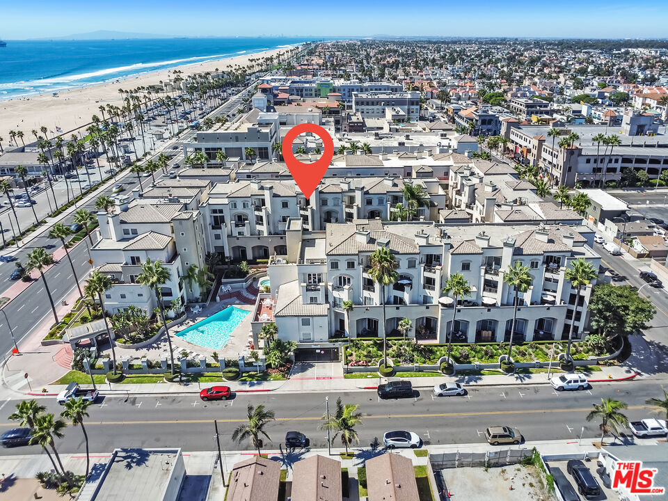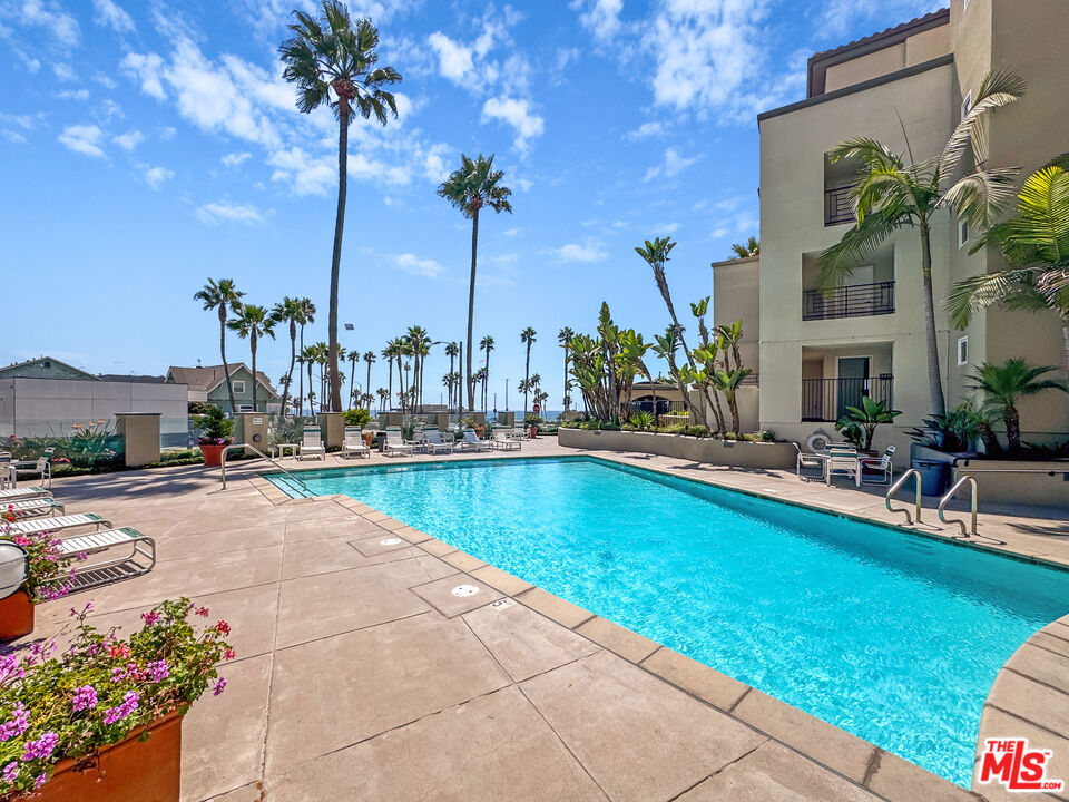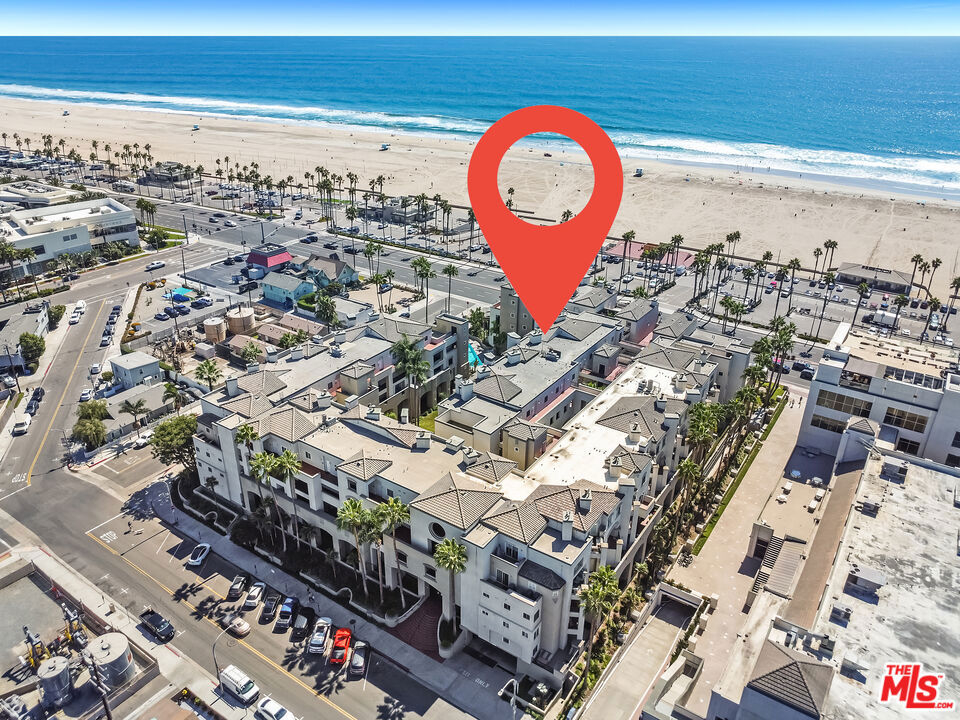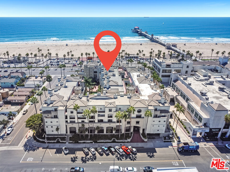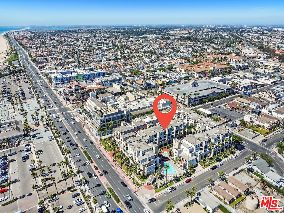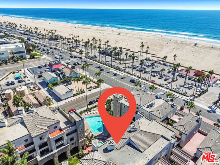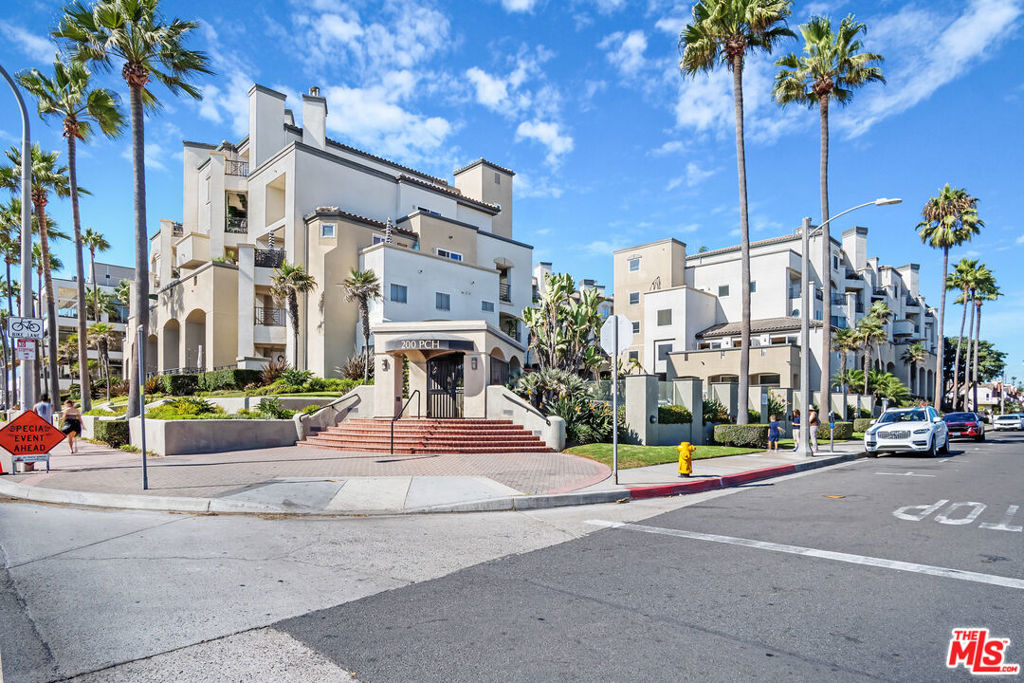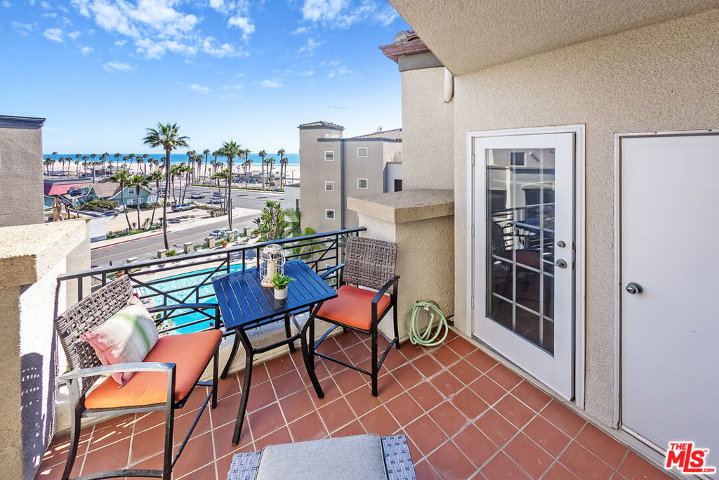 Ever dreamed of being mere moments from warm sand and ocean views all day long? This top-floor coastal haven puts you above it all literally right off the iconic Pacific Coast Hwy! Set in a striking resort-style complex, this 2-bedroom, 2-bath condo combines an elevated 1,181 sq ft layout with vacation vibes year-round. From the elevator hall, enter to discover a sunlit interior where tile floors, recessed lighting, and neutral tones create a relaxed, yet sophisticated mood. A stunning fireplace anchors the living area, while the open-concept kitchen, with its sleek countertops, complement of appliances, and handsome cabinetry, makes hosting feel effortless. Pour a drink at the breakfast bar or dine under the stars on your oversized balcony deck, where sights and sounds of the Pacific steal the show. Your generous primary suite features an ensuite, while double doors lead to a second retreat perfect for guests or as a workspace. Enjoy community perks, including the pristine pool and spa, gym, underground parking, and extra storage. Minutes from the pier, trendy restaurants, shopping, and top-rated schools, your seaside lifestyle begins here!
