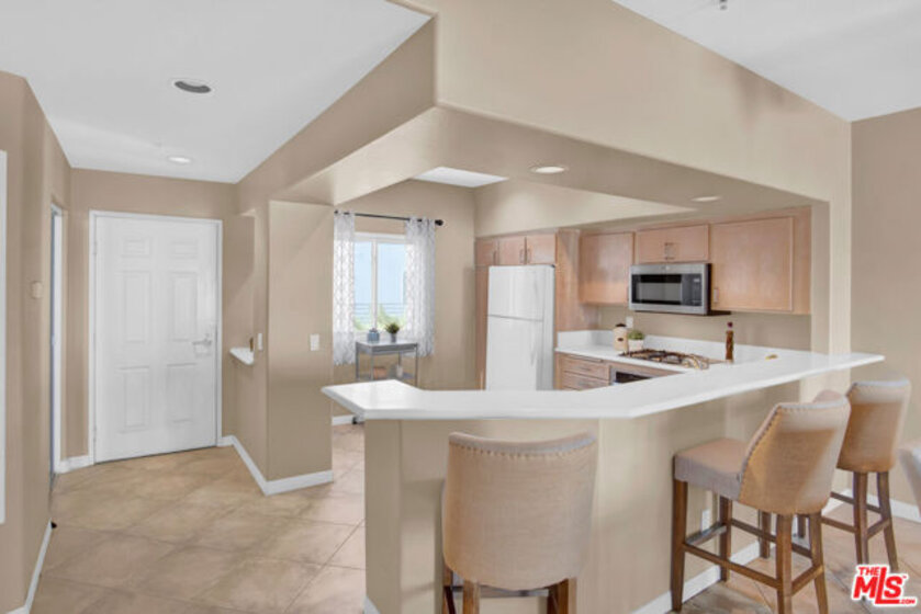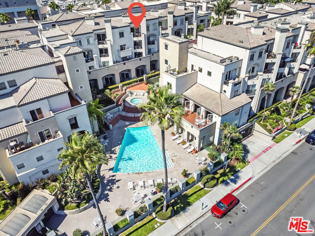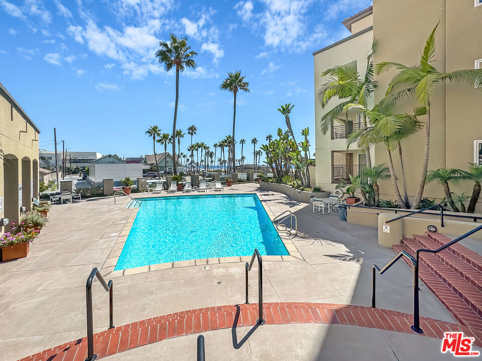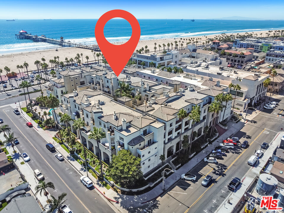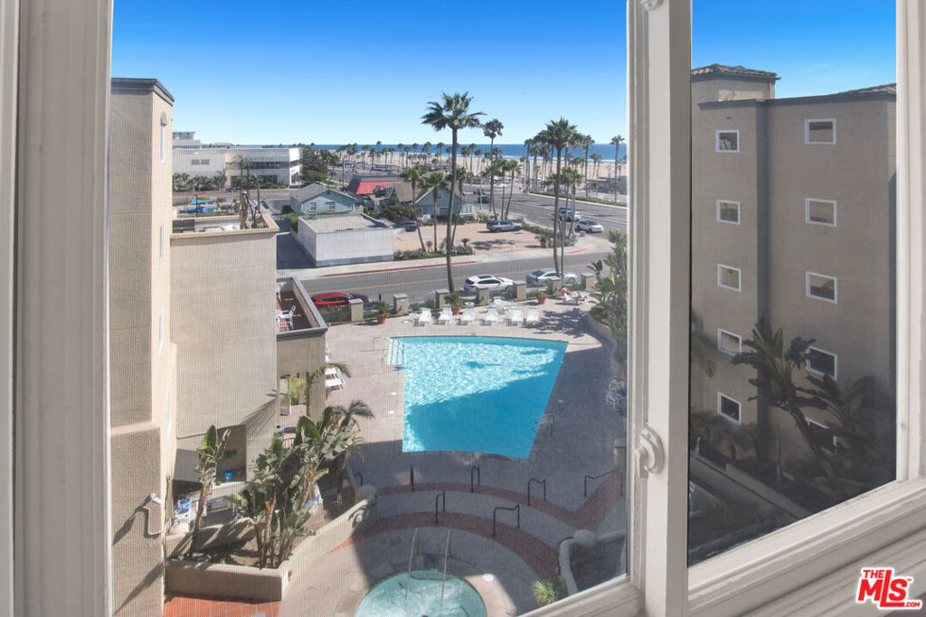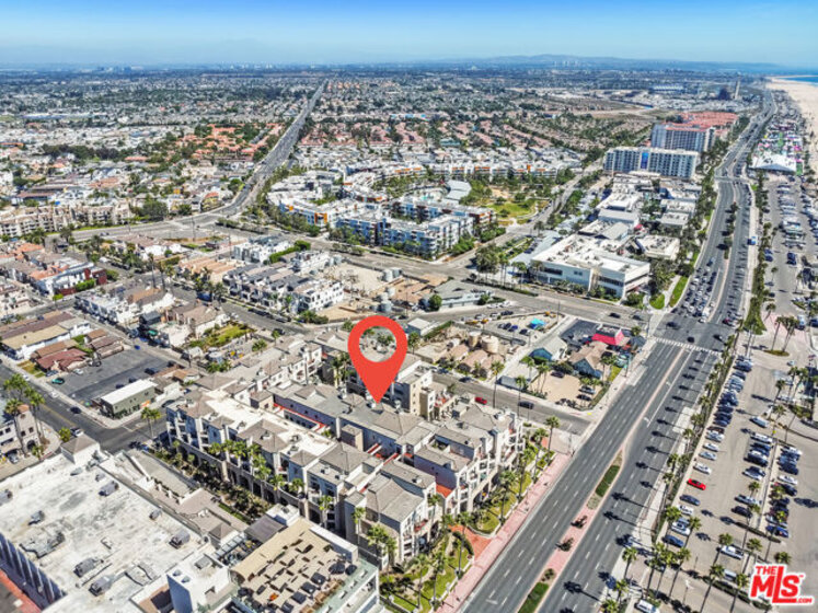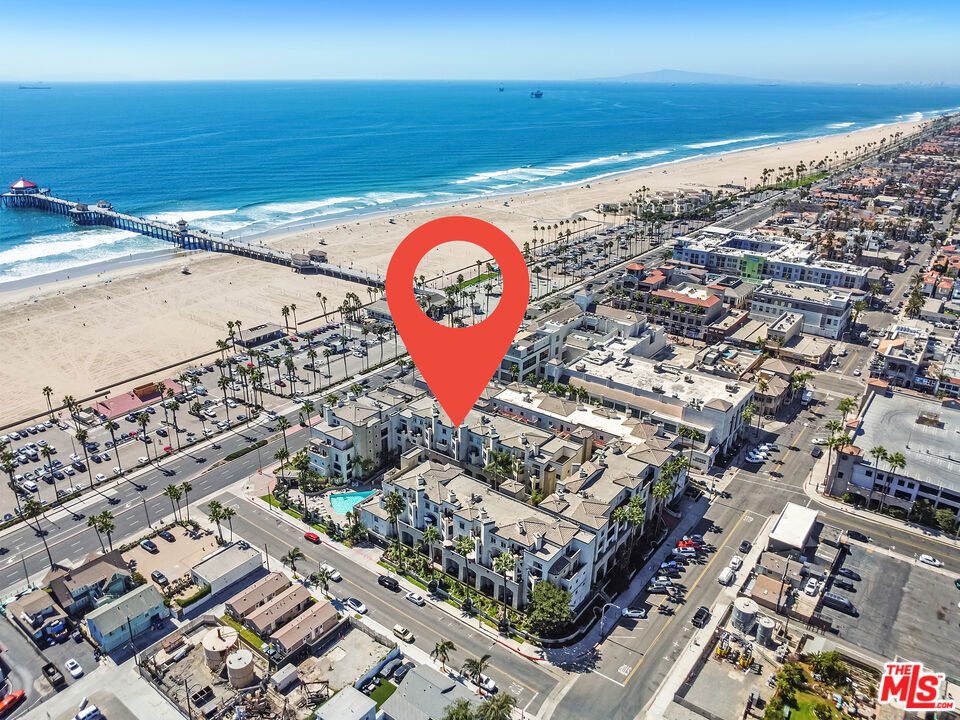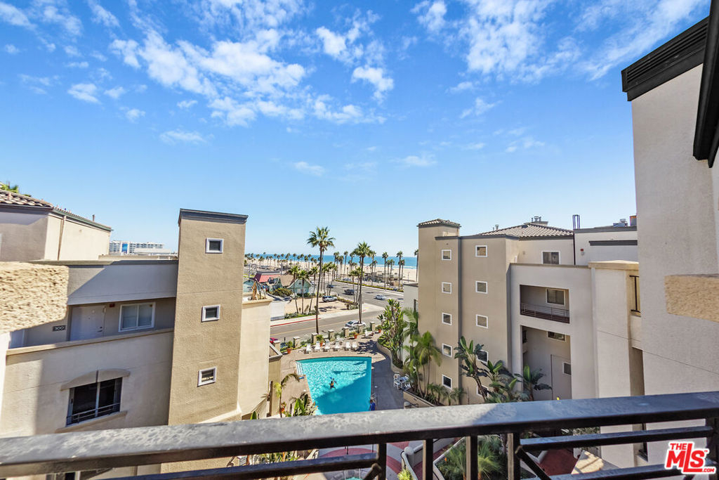 Ever dreamed of being mere moments from warm sand and ocean views all day long? This top-floor coastal haven puts you above it all literally right off the iconic Pacific Coast Hwy! Set in a striking resort-style complex, this 2-bedroom, 2-bath condo combines an elevated 1,181 sq ft layout with vacation vibes year-round. From the elevator hall, enter to discover a sunlit interior where tile floors, recessed lighting, and neutral tones create a relaxed, yet sophisticated mood. A stunning fireplace anchors the living area, while the open-concept kitchen, with its sleek countertops, complement of appliances, and handsome cabinetry, makes hosting feel effortless. Pour a drink at the breakfast bar or dine under the stars on your oversized balcony deck, where sights and sounds of the Pacific steal the show. Your generous primary suite features an ensuite, while double doors lead to a second retreat perfect for guests or as a workspace. Enjoy community perks, including the pristine pool and spa, gym, underground parking, and extra storage. Minutes from the pier, trendy restaurants, shopping, and top-rated schools, your seaside lifestyle begins here!