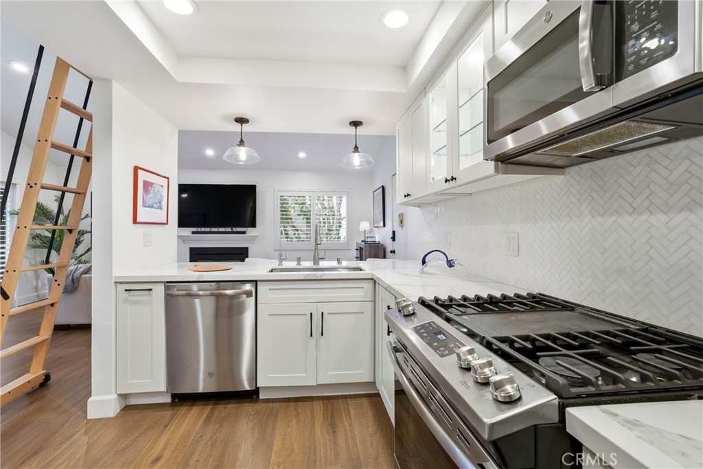 New Year. New You. New Home. And this one delivers. Completely move-in ready and beautifully remodeled from top to bottom, this home is the definition of turnkey—nothing to do but unpack and enjoy. Warm, wide-plank wood floors flow throughout an open, inviting floor plan designed for both everyday living and entertaining. The stunning kitchen features sleek quartz countertops, stainless steel appliances, and modern finishes that open seamlessly to the living and dining areas. Above, soaring ceilings create volume and light, while a one-of-a-kind finished loft space (approximately 150 sq ft) adds flexibility—perfect for a home office, creative studio, or cozy retreat. A remodeled guest bath and generously sized secondary bedroom provide comfort and style, while the spacious primary suite offers great natural light and a beautifully remodeled en-suite bathroom. In-unit laundry adds everyday convenience. New plantation shutter through out. Step outside to a large wrap-around balcony, ideal for morning coffee or evening unwinding. The home also includes one private garage plus an additional parking space—a rare and valuable bonus. Located in a gated community with expansive green space, BBQ areas, tennis courts, and a resort-style pool, this home offers both privacy and lifestyle. Tucked just off Main Street, you’re moments from downtown dining, shopping, and entertainment. ?? Remodeled. Turnkey. Incredible value. This is the one you’ve been waiting for.