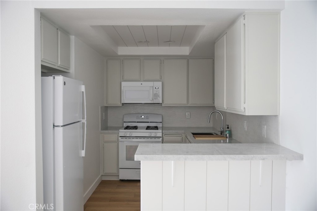Rare opportunity to own your own condo just 2 miles away from the beach! This one bedroom, one bathroom, single-level home was just renovated by owner/custom home builder. Designer finishes throughout, marble countertops, vinyl hardwood floors, shiplap detailing, upgraded light fixtures, brand new GE appliances. Enter through the front door to an open family room with gas fireplace, two oversized windows boasting natural light, with coat closet. Dining room next to chef's kitchen. Brand-new GE refrigerator/freezer with ice maker, range, dishwasher, microwave, stainless steel sink with brand-new kitchen faucet. Stunning MARBLE countertops with textured tile backsplash. Oversized primary bedroom with large reach-in closet and private bathroom. Double sink vanity with marble counters. Large outdoor patio with beautiful landscaping and enclosed with white fence. One-car detached garage with storage area. Pier Pointe Community offers its residents a pool, spa, clubhouse and low HOA fees. Home is move-in ready. You don't see this quality of finishes in a homes like these, don't let this opportunity pass you by!