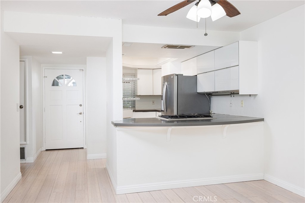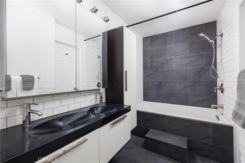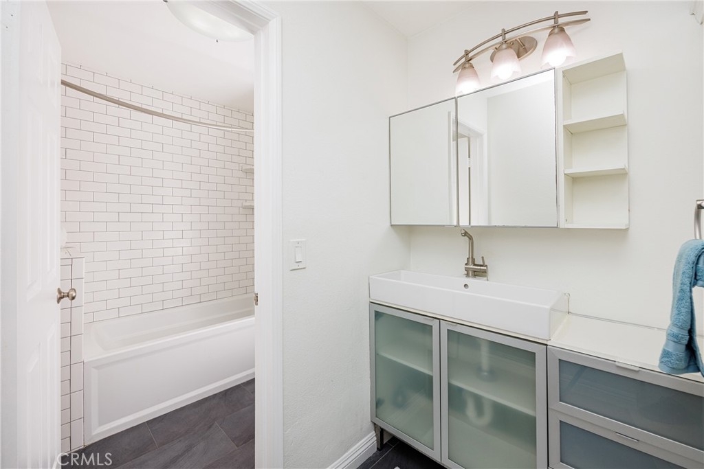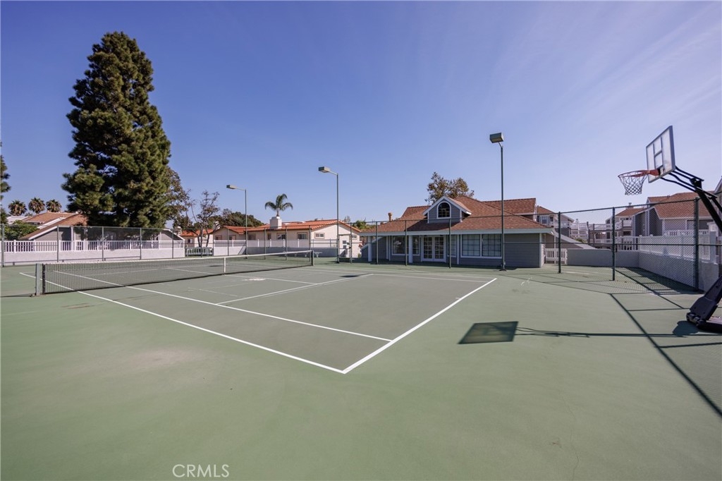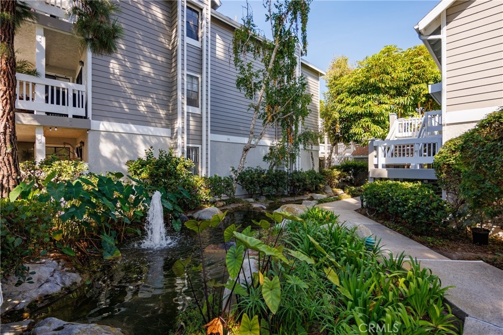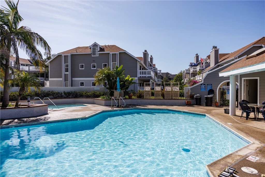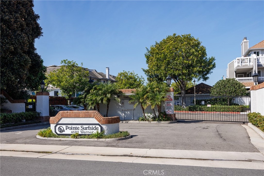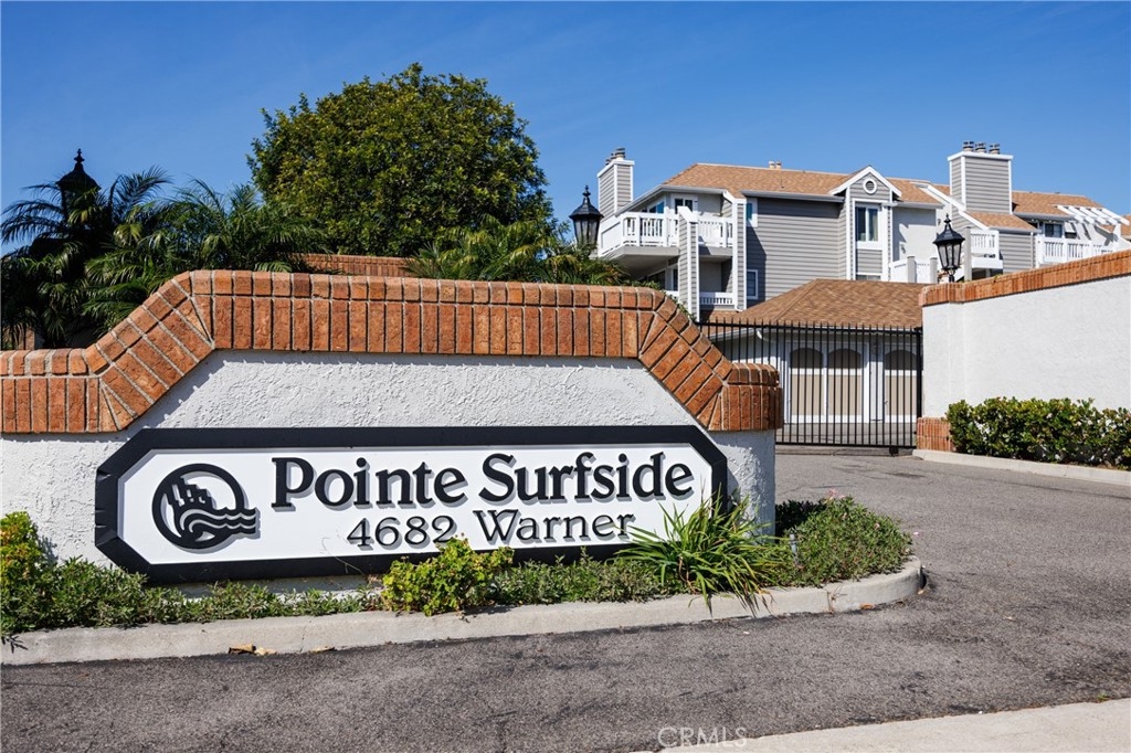 Pristine lower level condo located in this highly desired Pointe Surfside community. This spacious 2 bedroom home boasts newer paint and laminate flooring throughout. Step into your new home with a beautiful kitchen that opens to dining area and family room. Kitchen has plenty of counter space and cabinets for storage. There is counter seating as well as area for a breakfast table. The family room also has a stone surround fireplace with mantle and sliding glass door leading out to the covered patio area. Two large bedrooms each with their own en suite bathrooms. Front bedroom has large closet with sliding doors, separate sink area and full bathroom. The back bedroom is the true primary one with sliding glass door to backyard, large closet and oversized master bathroom with dual sinks and steps into the tile surround shower. Perfect home also has inside laundry and plenty of extra space for storage. This gated community has ample guest parking, newly resurfaced pool and spa, tranquil water features and streams throughout, 2 tennis courts and clubhouse. This home provides a great opportunity to live just minutes from the beach, bike trails, the Bolsa Chica Wetlands, hiking trails, Trader Joes, great restaurants & shopping in the Huntington Harbor Shopping Center.