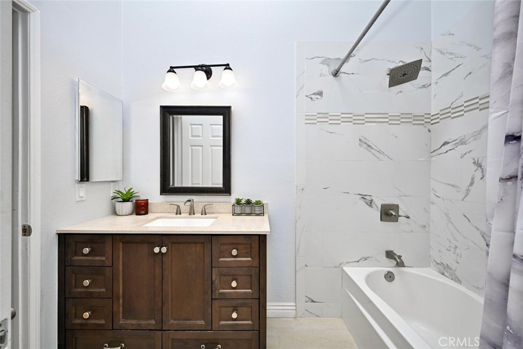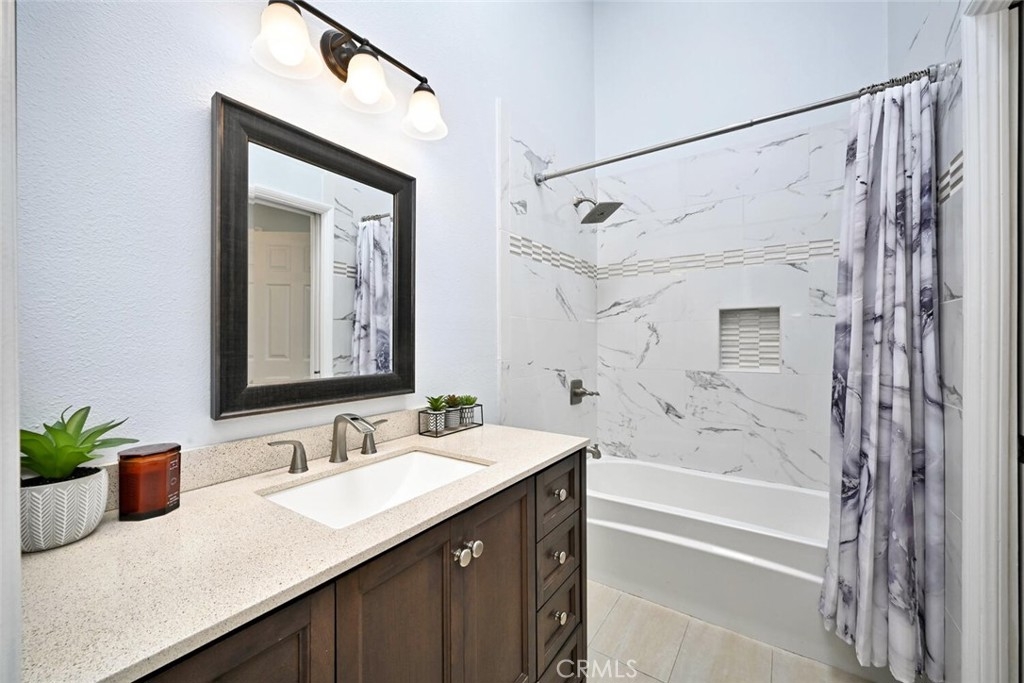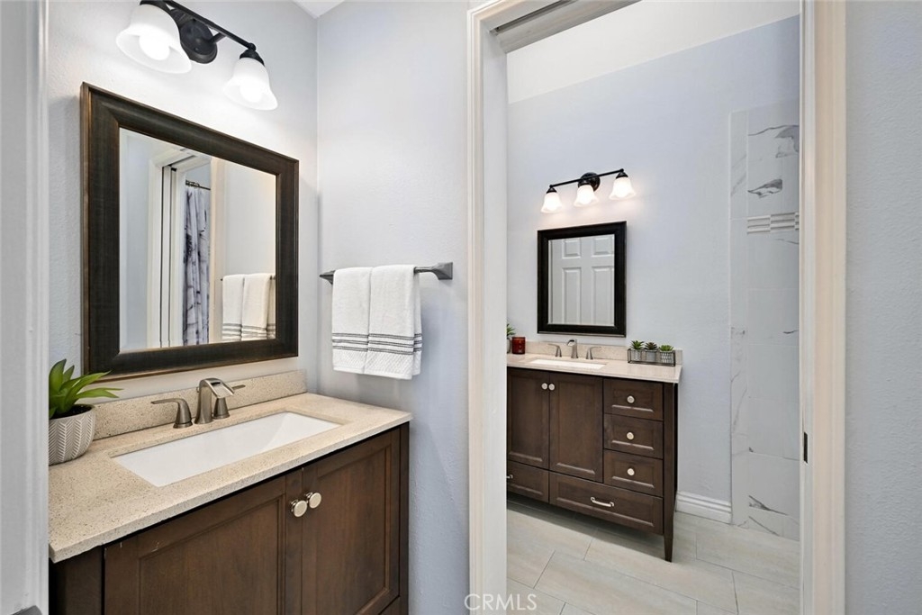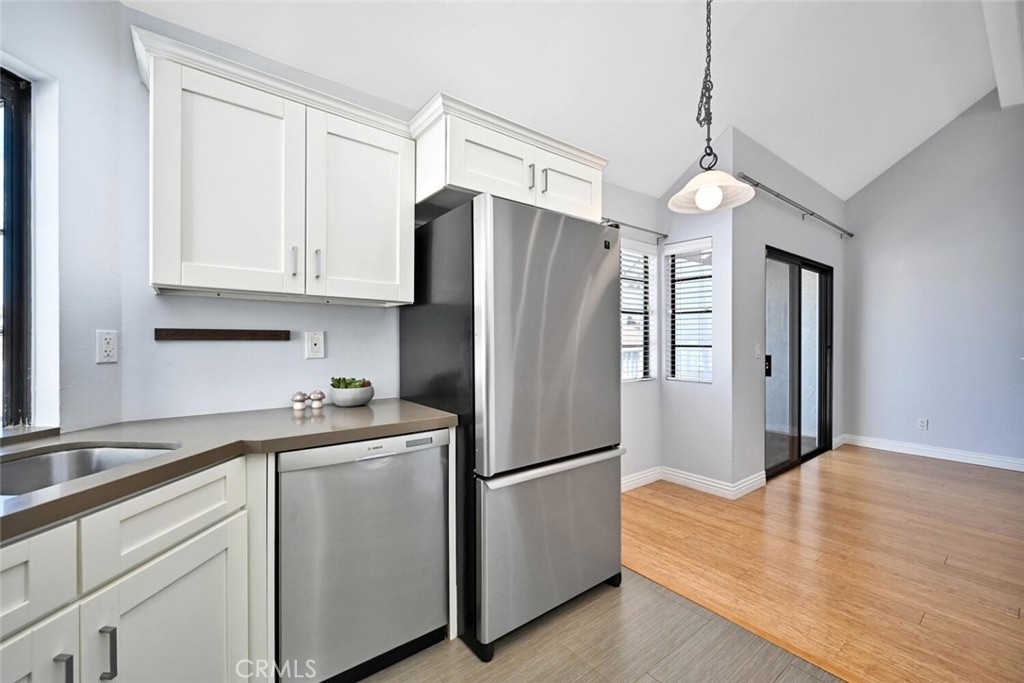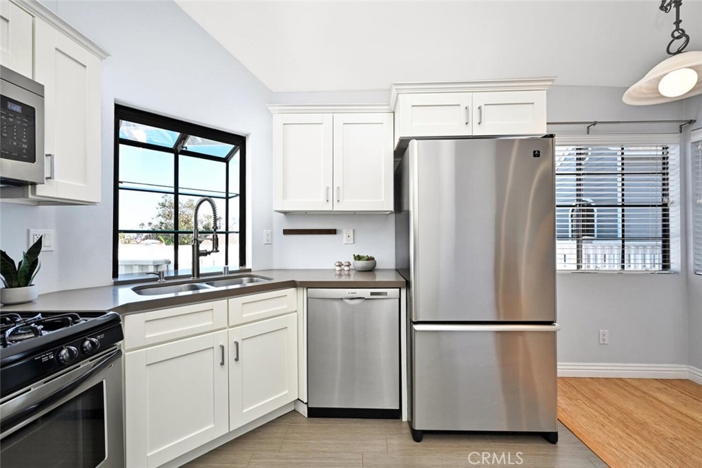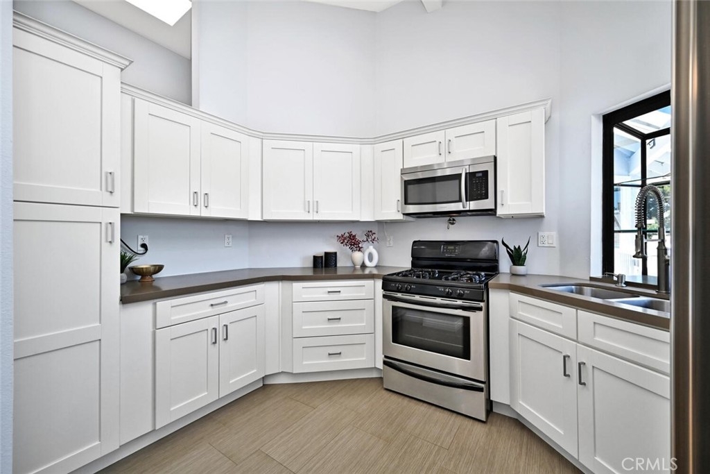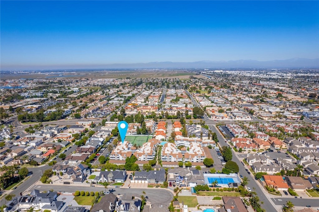 Penthouse Huntington Beach condo near Huntington Harbour & Bolsa Chica State Beach! This top floor unit is bright and open with vaulted ceilings, two private patios, ocean breezes, custom paint, wide plank Bamboo floors with cork underlay, recessed lighting, skylights and more! Upon entry you are welcomed into the spacious living room with vaulted ceiling and gas fireplace. The fully remodeled Kitchen has quartz countertops, crisp white cabinetry with soft close features, recessed lighting, pantry and built-in stainless steel appliances to include a gas stove, microwave, dishwasher and refrigerator. The primary bedroom has mirrored closet doors and access to the rear patio.The secondary bedroom includes a sliding glass door to the rear patio which also has multiple storage areas for added convenience. The remodeled bathroom is perfectly situated with a sink and bathtub in one area and another sink and toilet separated by a door giving privacy when needed. Enjoy the large front patio with beautiful mountain views and ocean breezes that sits just off the living room, perfect for entertaining. This home is complete with an interior washer and dryer, assigned parking space, ample guest parking and an elevator to the unit. This gated community offers a pool, spa, clubhouse and tennis courts. Enjoy walking or biking to the beach, shopping, dining, the wetlands, Sunset Beach and all this city has to offer. Come live in this coastal community where you can enjoy the fun in the sun, but getaway to a quiet home surrounded by excellent schools, easy road access & great amenities. Don’t miss out!!