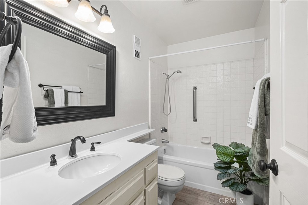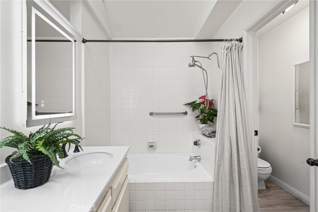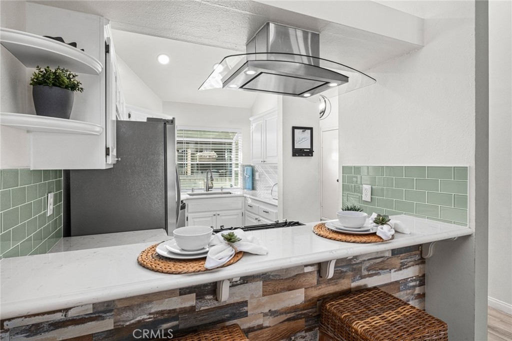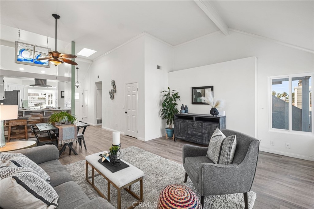 Welcome to your coastal retreat at 4682 Warner Avenue, Unit B308, nestled in the heart of Huntington Beach. This charming third floor penthouse unit property offers a cozy escape with 2 spacious bedrooms and 2 beautifully appointed bathrooms, all within a generous 1,131 square feet of living space. The spacious primary bedroom features an en-suite bathroom with dual sinks and a roman tub. The second bedroom opens up to the balcony and is perfectly situated as a luxurious guest room or office space. Step inside and be greeted by vaulted ceilings and an abundance of natural light streaming through the skylight, creating an inviting and airy atmosphere. The open-concept living area seamlessly flows onto your private balcony, perfect for enjoying morning coffee or evening sunsets. The proximity to the ocean will have you enjoying the refreshing coastal breeze all year long. The kitchen is a culinary delight, featuring stainless steel appliances, updated countertops, sea glass inspired backsplash and ample counter space, making meal preparation a delight. The unit has all updated windows and doors including an eye-catching garden window above the sink for your own private herb garden. Additional amenities include the convenience of a washer and dryer in the unit, along with additional laundry facilities in the building. This home is part of a vibrant, gated community that boasts an array of updated amenities. Take a dip in the communal pool, unwind in the spa, or host a barbecue in the designated area. Stay active with access to a tennis court multi-sport court and a common media/recreation room. Parking is a breeze with an coveted assigned single garage space and ample additional guest parking available. Pets are considered welcome in the community, making it a perfect haven for all members of your family. With its close proximity to the Brightwater trailhead, Bolsa Chica and Sunset Beach, beach, Huntington Harbour shops and restaurants, you'll relish the walkable and bikeable coastal lifestyle and the great sense of community that surrounds you. Don't miss the opportunity to make this your new home, where comfort meets convenience in a setting that truly feels like a getaway.