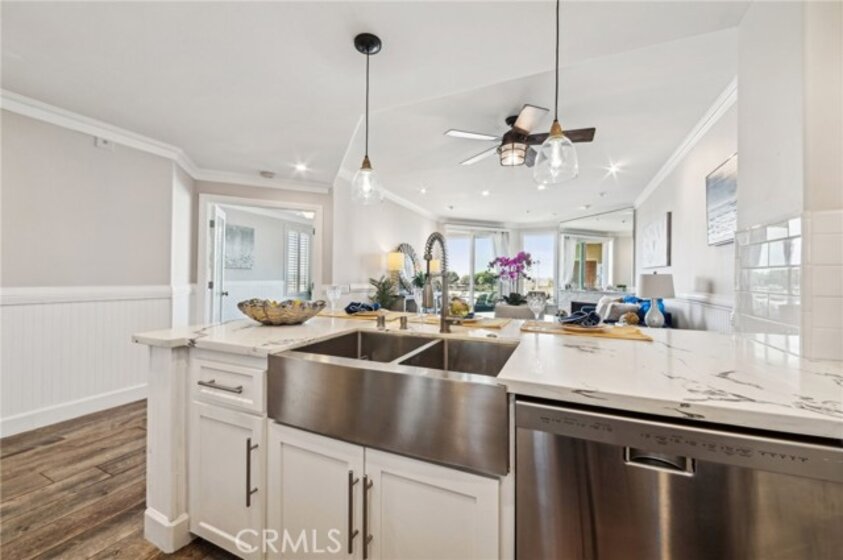 The best views in Huntington Harbour and the biggest slips available! Experience luxury waterfront living in this spacious 1-bedroom condo, with a 45-foot slip available for your yacht in the private marina with end ties available for guests. Directly across from Peter's Landing so you can make a quick dinghy trip for dining, to the beach or get groceries at Mother's Market. Huntington Harbour Yacht Club is nearby as well. Enjoy panoramic views of the harbour and mountains from your floor-to-ceiling windows, flooding the open floor plan with natural light. High-end finishes enhance the refined ambiance, while your private balcony offers the perfect spot to unwind and take in breathtaking sunsets. This residence combines style and serenity, ideal for those seeking a unique lifestyle at the water’s edge. This is resort style living at it's finest. Nearby you'll find parks and walking paths, pet friendly neighbors, kayaking, boating, biking, surfing and more. The community amenities include a year-round heated, saltwater pool and spa on the water complete with an outdoor kitchen for entertaining and a sauna to soothe you at the end of the day. Plenty of guest parking is reserved for residents. Single Level. No Steps. Elevator. Convenient shopping, dining and access to freeways while still being nestled in a quiet corner of the harbour.