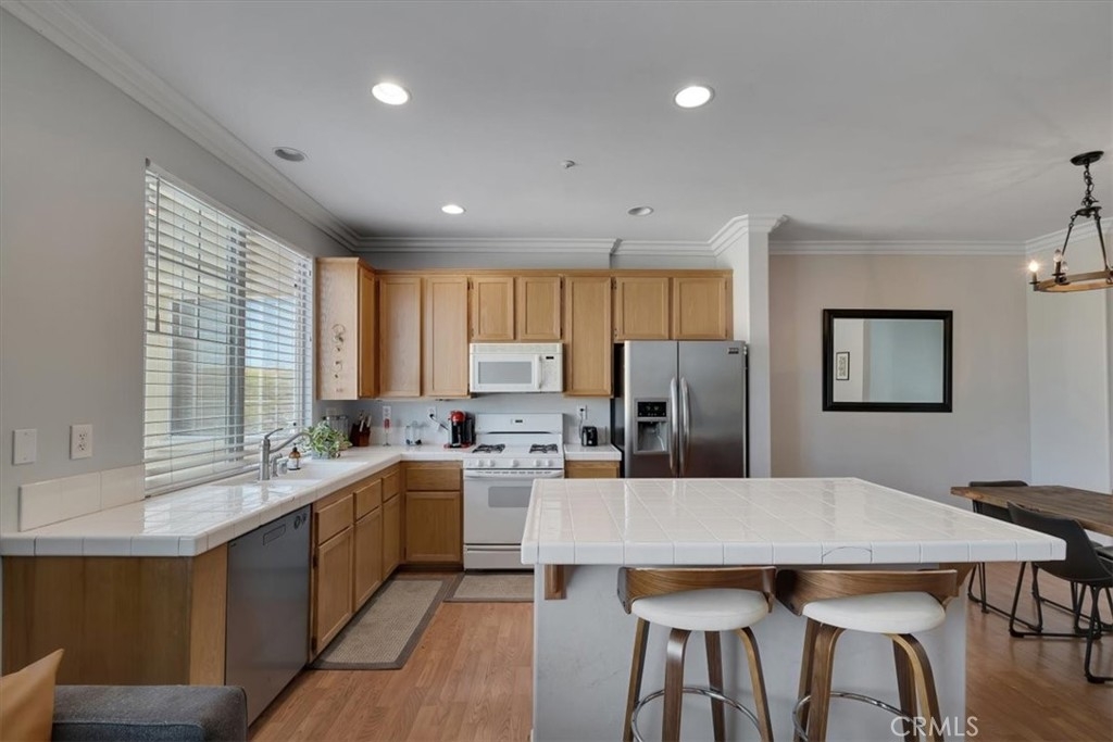Affordable living near the beach! This tri-level home offers wonderful natural light, living room with fireplace, spacious kitchen with center island opens to family room and country kitchen dining area, 3rd floor primary bedroom with walk-in closet, two secondary bedrooms & bath plus laundry service area (washer & dryer not included). Upgrades include central A/C, newer interior paint, crown moulding, plantation shutters & laminate wood floors & stairs! 1 car attached garage plus 1 assigned parking space. Located in Seacliff Elementary School District too! This gated community is part of The City of Huntington Beach Inclusionary Housing Program.