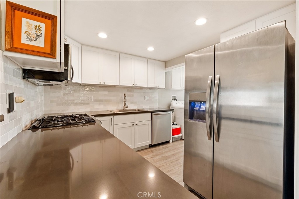 Experience true waterfront living in this rare first-floor corner unit in Sea Harbour. It has a deeded boat slip capable of accommodating a 29' boat, with power and water. Located on the main channel, the living room, bedroom, and spacious 300 sq. ft. deck are designed to feel like a private dock. Enjoy stunning harbor views from the living room, bedroom, and deck. This recently remodeled one-bedroom, one-and-a-half bath condo features a modern kitchen with quartz countertops, self-closing cabinets, and new stainless steel appliances. The primary suite offers stunning water views, a walk-in closet, and an updated en-suite bathroom. Additionally, the condo includes a guest half-bath, and in-unit laundry hookups. Resort-style amenities include two pools, a spa, gym, tennis courts, pickleball, and a clubhouse. Prime location—just a 5-minute walk to the beach, steps from restaurants, and near Bolsa Chica Wetlands and the Huntington Harbour Yacht Club. Includes two parking spaces. Don't miss this turnkey waterfront retreat!