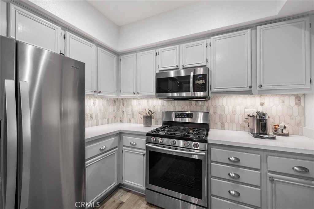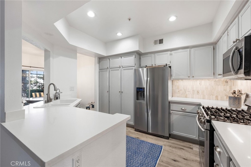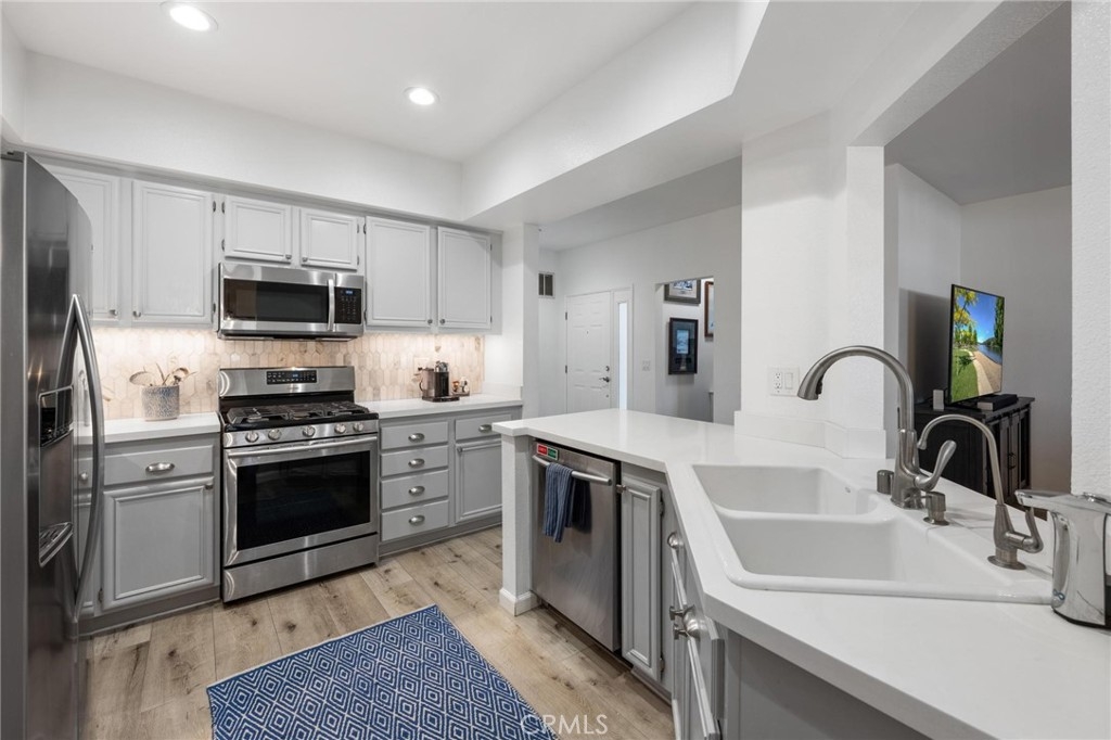 Tucked away in the guard gated community of Seabridge, only about a mile from the ocean, is 20171 Sealpoint Lane #105. Offering some of the finest luxuries of coastal living, this incredible community sits just moments from the beach with amenities such as four pools with hot tubs, four tennis courts, two clubhouses, several parks, as well as stunning landscaping. This 2-bedroom, 2-bathroom home spans 1,246 square feet, and also includes a very rare 3-CAR tandem garage. The moment you step inside you're greeted with natural light, luxury vinyl flooring, and a true coastal feel. To the left, you’ll find the formal living room with a cozy fireplace that sets the stage for intimate gatherings, a separate dining area, along with a private office nook. The heart of the home lies in the spacious kitchen, adorned with quartz countertops, recessed lighting, custom backsplash, and premium stainless-steel appliances. Down the hallway you'll find the guest bedroom, guest bathroom, and the washer/dryer closet. The primary bedroom suite is a spacious retreat, with dual closets leading to the primary bathroom with dual sinks, a walk-in shower, and custom tile flooring. You also have your own private, covered back patio to enjoy the SoCal weather year round. With the ocean just moments away and tucked within the confines of the Seabridge guard gated community, this residence offers the ideal blend of privacy, convenience, and coastal charm.
