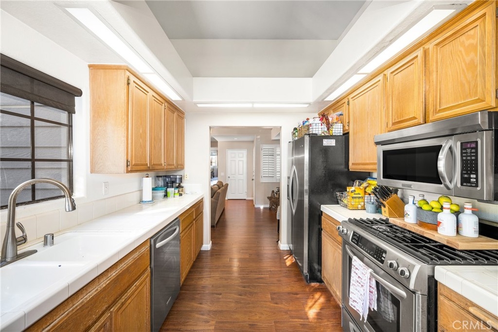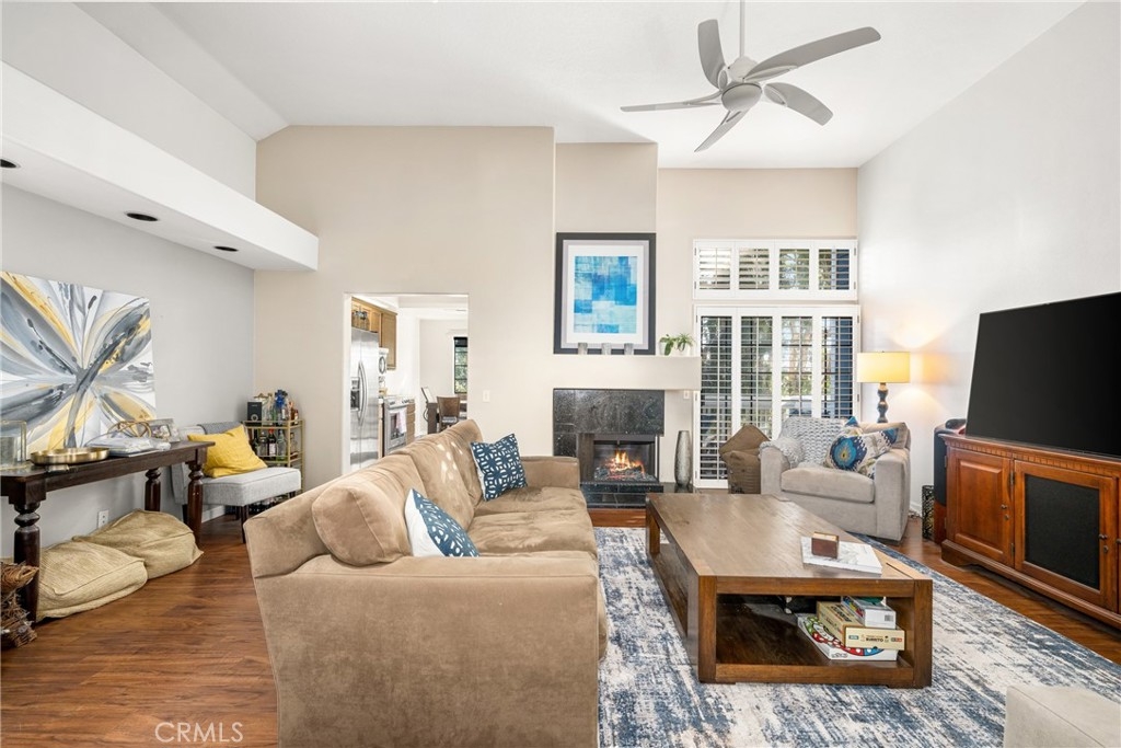 A must see in the sought after Seabridge Villas community of Huntington Beach, just 1.5 miles from the ocean! Beautiful upper unit with high ceilings, open floorplan, lots of natural light. Need some air? Open the sliding doors and windows and feel the cool ocean breeze. Laminate and tile flooring throughout for that beachy feel. Large living room with cozy fireplace and separate dining area. Open to eat in kitchen, sliding glass doors from both kitchen and living room to outside deck. Lovely views to greenbelt from kitchen and primary bedroom. Stackable Washer & Dryer and a newer water heater. Need storage? Use the ladder to the finished attic area. 1 car garage with more storage, extra long driveway for extra parking. Seabridge Villas amenities include staffed guard gated entrances, many pools, spas, lakes, waterfalls, tennis courts racquetball, rentable clubhouse, greenspace with a dog park. Penthouse condo homes are rare in this area, don't miss this one!