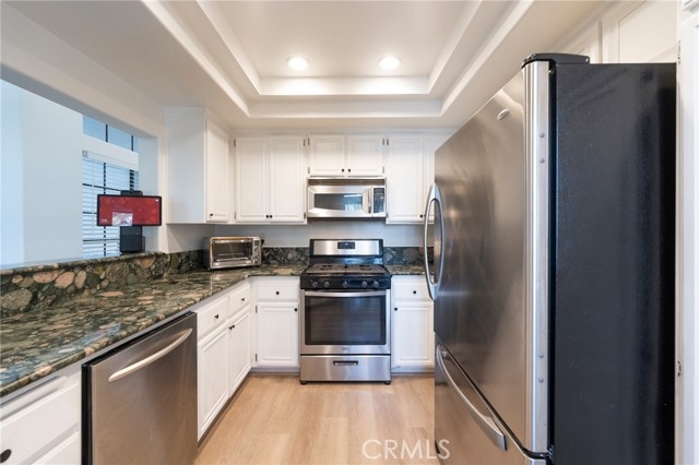 Beautiful Condo located in the Penthouse of Seabridge ! Soaring Cathedral Ceilings ! End Unit ! Great Location with Beautiful Views of the Lush Landscaping and Water ! Striking Luxury Vinyl Plank Flooring thru-out - Newer Paint - New lighting - Great Kitchen opens up to Dining area and Livingroom and has a lot of Counter space perfect for cooking exquisite meals and Entertaining large parties while sitting by the fireplace - Both Bedrooms are large with lots of closet space - Large Balcony is surrounded by Wonderful Nature - Inside Laundry - This unit has its own garage Plus driveway ! Just a few steps to all Amenities - Pools, Jacuzzis, Tennis Courts, Clubhouse, and large Park - Seabridge is a Gated Community just down the street from the Beach, Huntington Beach Pier, Main Street, Pacific City Plus Amazing Restaurants and Shopping !!! Life is really good !