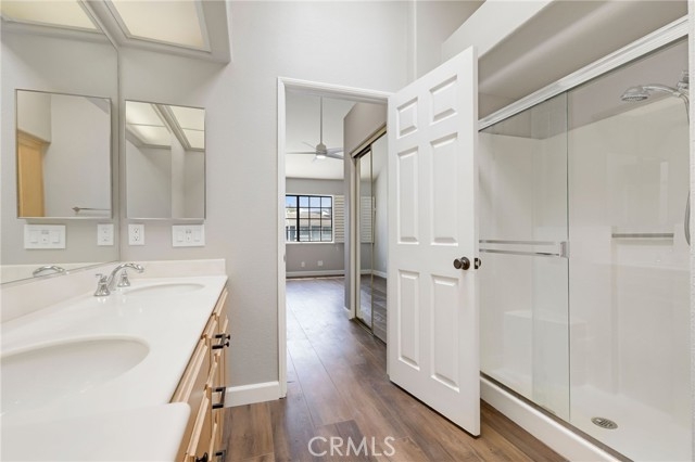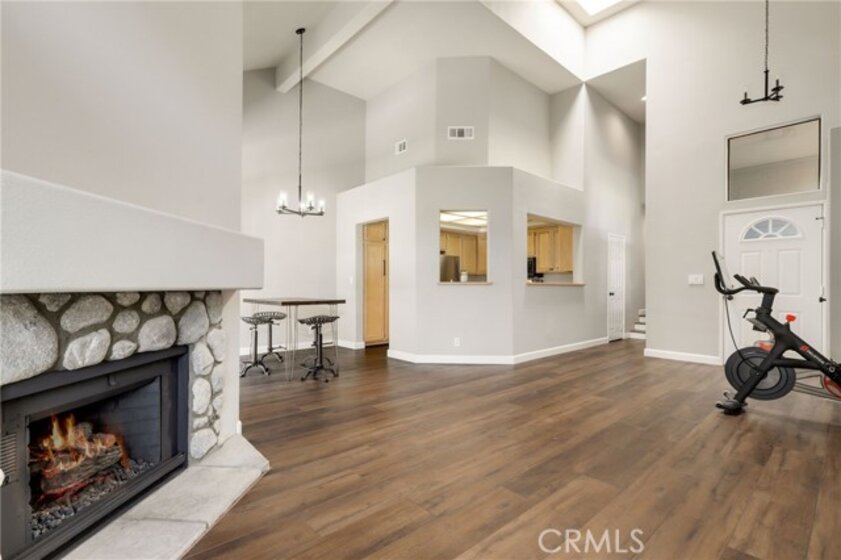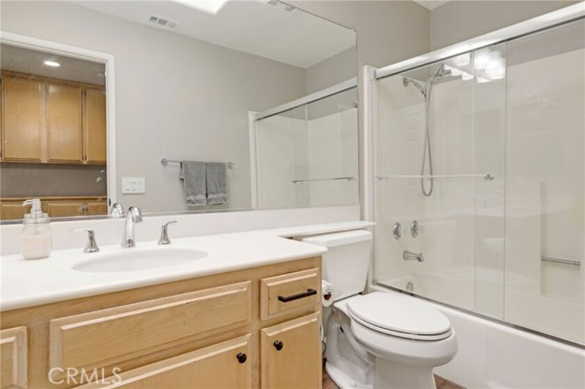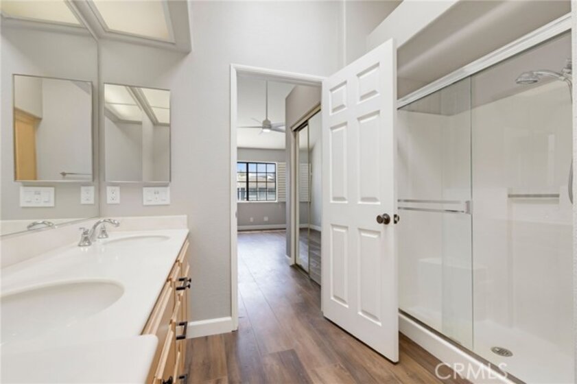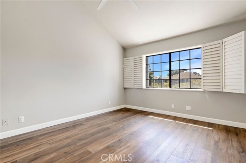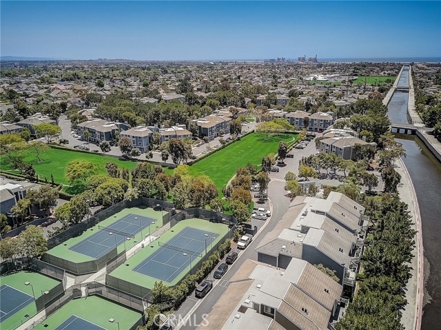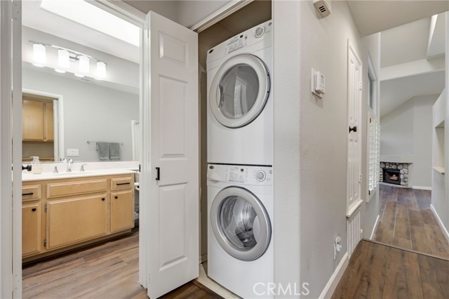 This beautiful home in the prestigious Seabridge Village of Huntington Beach welcomes you white and gray modern tones, high ceilings, recessed lighting and upgraded Laminate Vinyl Plank flooring makes for an elegant space. The open concept living room with stone fireplace, plantation shutters and an adjacent dining area features large windows that allow an abundance of natural light to illuminate the open floor plan throughout. The kitchen impressive with light cabinetry, plenty of countertops and storage, the appliances include a single gas oven range, microwave, dishwasher and refrigerator. Step out on to the large balcony to enjoy the sounds and views of the creeks and streams. Down the hallway is a full bathroom with single sink vanity, tub in shower and a separate inside laundry area closet that includes a stackable washer and dryer for your convenience. The primary ensuite features double wardrobe mirrored closet doors, a ceiling fan, plantation shutters, high ceilings, a private bathroom with dual sink vanity and step in shower. The secondary primary is generously sized with plantation shutter and mirrored wardrobe closet doors. A two-car attached garage with direct access, close guest parking and dual pane windows. The Seabridge gated and guarded community amenities have a lot to offer with a variety of sparkling pools and spas, sauna, greenbelts, waterfalls and streams throughout, a park like area and tennis courts. Enjoy Surf City USA at its best, nearby Downtown Main St, shopping, restaurants, the Pier, minutes from the beach, parks, sports complex, biking, hiking and outdoor living! Must see this home!