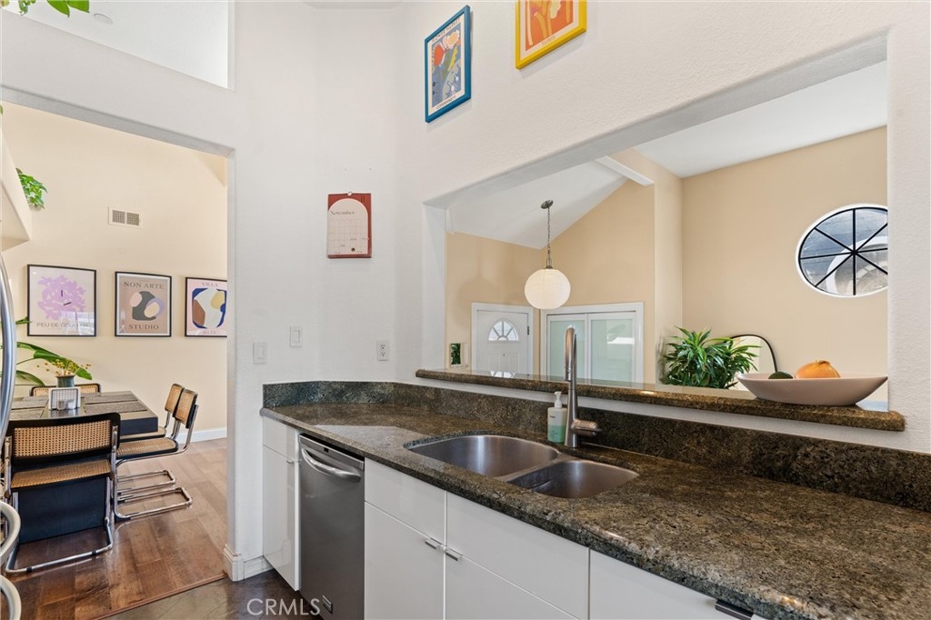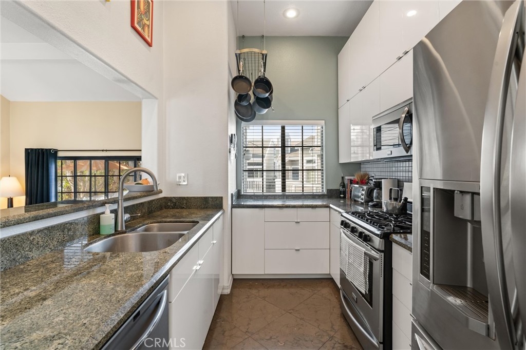 Welcome to 20331 Portview Circle, a stunning penthouse condo nestled in the popular gated community of Seabridge. This cozy home offers a perfect blend of modern luxury and comfort, featuring high ceilings and a bright, airy main area that connects seamlessly to the dining area and remodeled kitchen. Step into the living room adorned with large custom tiles, while the dining area and master bedroom boast beautiful hardwood flooring. The kitchen features sleek modern cabinetry, granite countertops, stainless steel appliances, and a new tile backsplash. The spacious master bedroom is your personal retreat, featuring high ceilings and a cozy nook ideal for a workspace. The master bathroom offers a separate soaking tub, walk-in shower, and a dual vanity, complemented by a walk-in closet with custom organizers. Just off the main area, step outside and enjoy serene lake views from your private patio, accessible through a convenient patio door. Additional features include a new water heater, updated interior paint, a new stackable washer and dryer, recessed lighting, and a one-car detached garage. The Seabridge community offers an array of amenities, including 4 pools, 4 jacuzzis, 4 tennis courts, and a large park. With 24-hour guard-gated entries, this community ensures both security and convenience. Located close to downtown, the beach, and Pacific City, 20331 Portview Circle is the perfect place to call home. Don’t miss the opportunity to embrace luxury living in this exceptional lakeside condo!