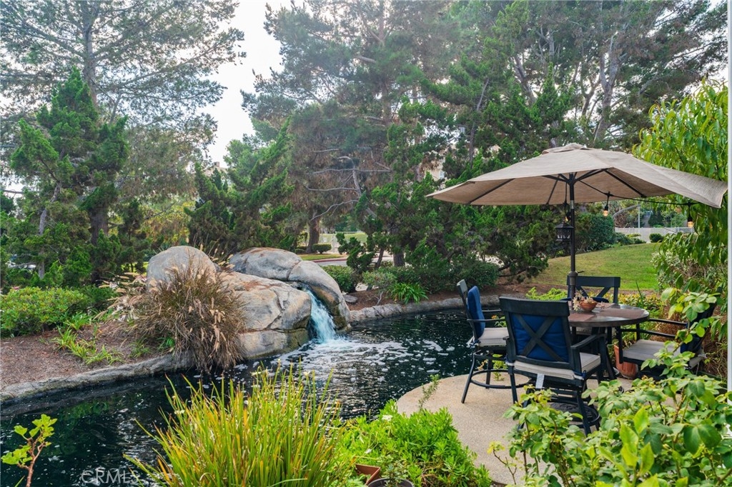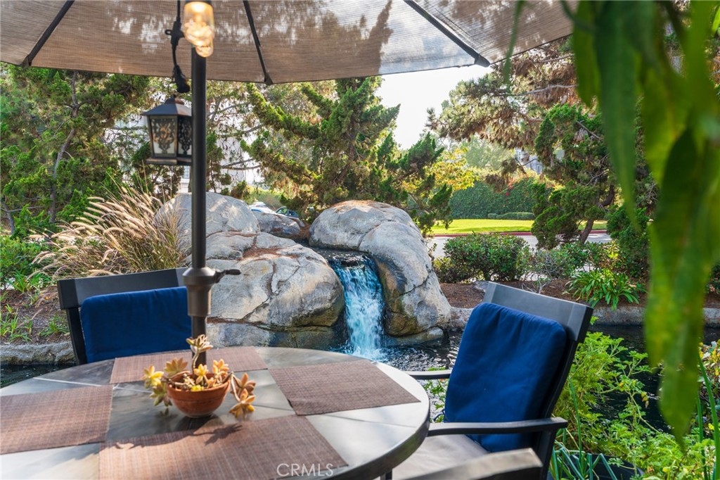 Beautiful First Floor Condo with a large Patio that sits right on a soothing Lagoon and waterfall ! Amazing Location ! Paradise surrounds you - Lush Greenery and Landscaping - Upgraded Eat-in Kitchen has upgraded Cabinets and Granite Counters with a Beautiful Travertine Backsplash that overlooks your Patio and Sparkling Lagoon - Upgraded Wood Flooring thru-out - Pristine Condition ! Recessed Lighting thru-out - Shutters thru-out - Very Large Livingroom has Romantic Fireplace and room for Dining Area, Both Large Bedrooms overlook the Park ! Both Baths are upgraded with Tiled Flooring and Granite Counters - 1 Car Garage plus endless Guest Parking - Seabridge is a Guard Gated Community with 4 Pools, 4 Jacuzzis, 4 Tennis Courts, and a large Park ! Just down the street from the Beach, Huntington Beach Pier, Main street, Plus endless Shopping and Restaurants !