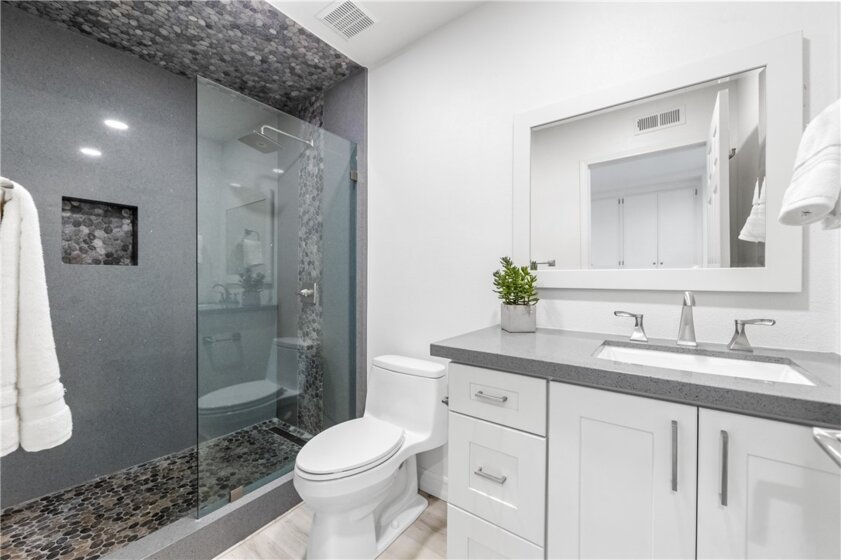 Nestled in the prestigious Seabridge community, this stunning bottom-floor corner unit is a rare find! Fully remodeled from top to bottom and move-in ready. From the moment you step inside, you'll be greeted by thoughtful upgrades throughout, including gorgeous granite finishes, an elegant fireplace with beautiful fire-glass, and not one but two stunning standing granite and pebble showers. The spacious primary suite is a true retreat, featuring a generous double closet and a luxurious double-vanity bathroom. Step outside and take in the serene, picturesque pond view right from your own private double patio. Enjoy the convenience of your very own driveway and garage a coveted feature in this community. As a resident of Seabridge, you'll have access to four tennis courts, four relaxing pools and spas, and an abundance of lush green space, all within a beautifully maintained, 24/7 guard-gated neighborhood that offers both security and peace of mind. And the location? Simply unbeatable just a short mile from the beach, putting the best of coastal living right at your doorstep. This is the lifestyle you've been waiting for don't miss your chance to call it home!