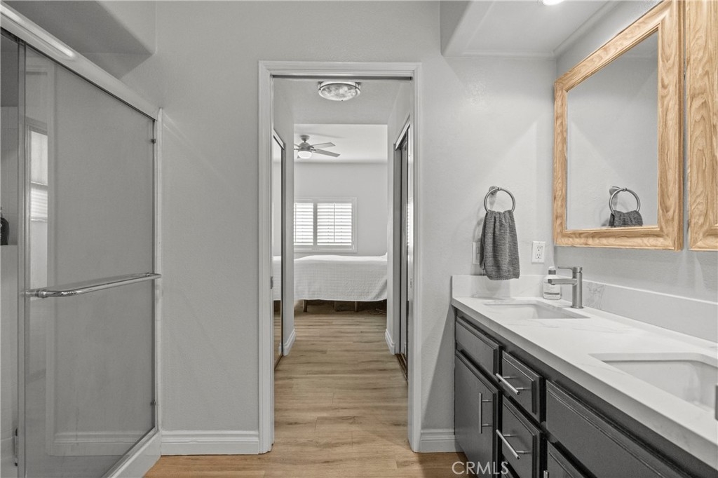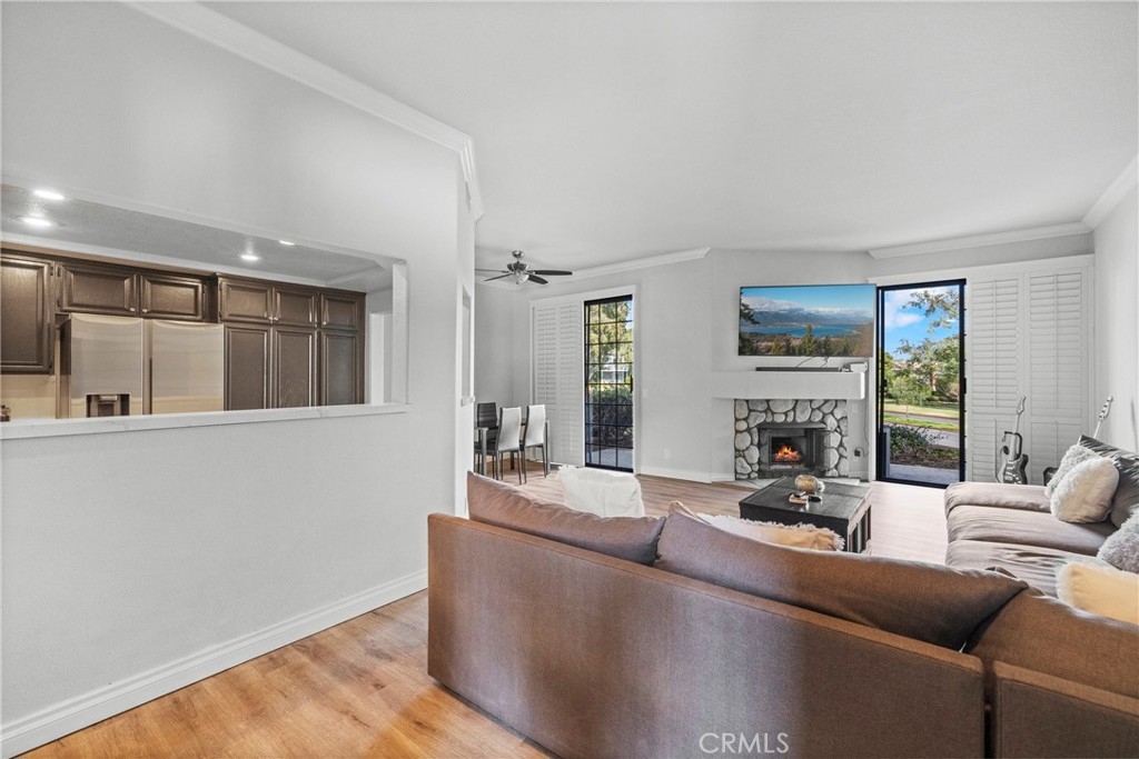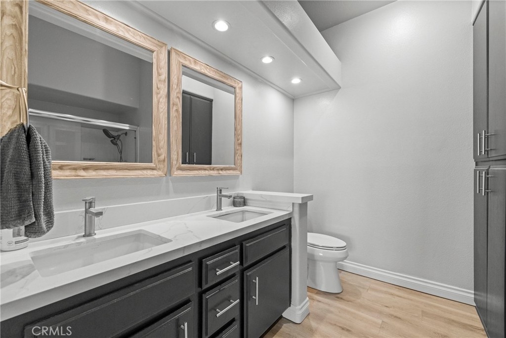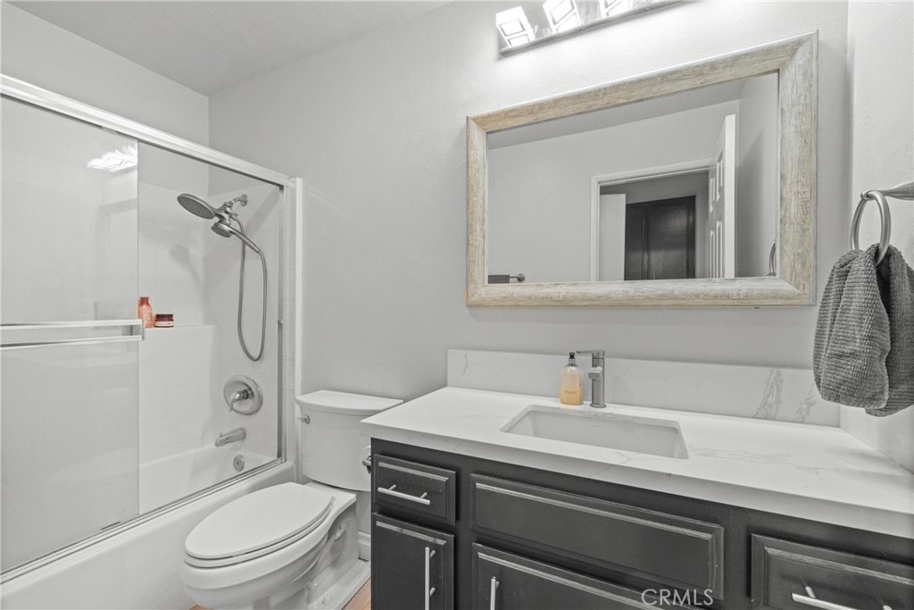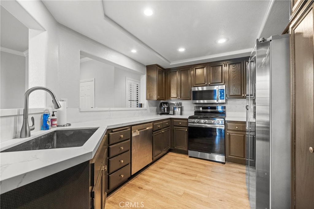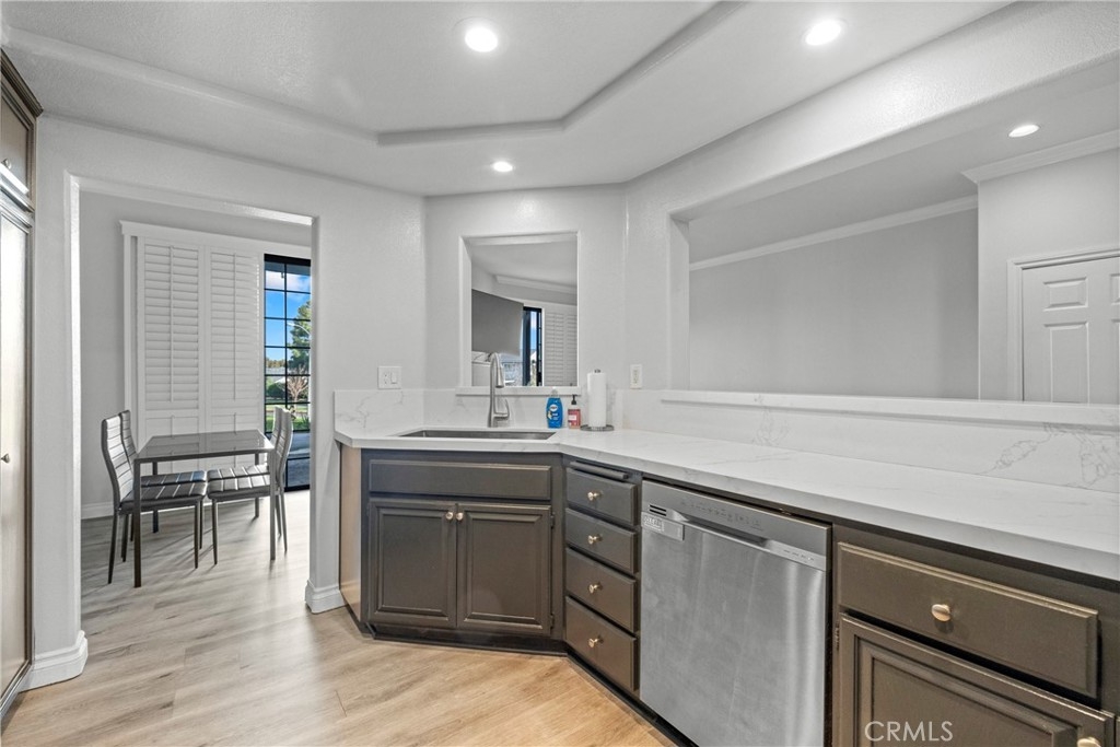 This stylishly remodeled condo offers a seamless blend of comfort and sophistication. Upon entry, the living room, adorned with a cozy fireplace, creates a warm ambiance, complemented by plantation shutters that enhance the overall elegance. From there, the updates throughout are endless- premium quality waterproof vinyl plank flooring, newer baseboards, and ceiling fans, while in the kitchen you can find new quartz countertops, professionally painted cabinets, and newer stainless steel appliances including dishwasher, stove, oven, microwave and garbage disposal, which elevate both style and functionality. The primary bedroom is a retreat with ample closet space and primary bath offering new countertops, new toilets and dual sinks, along with a spacious walk-in shower. Convenience meets luxury with in-unit laundry, one-car garage and outdoor patio space. The gated Seabridge community adds an extra layer of security and boasts amenities like two pools, tennis courts, a gate guard, and a clubhouse for a resort-like lifestyle. Plus, the proximity to downtown Huntington Beach ensures easy access to vibrant shops, dining, entertainment and beaches. This condo is not just a home; it’s a lifestyle upgrade.