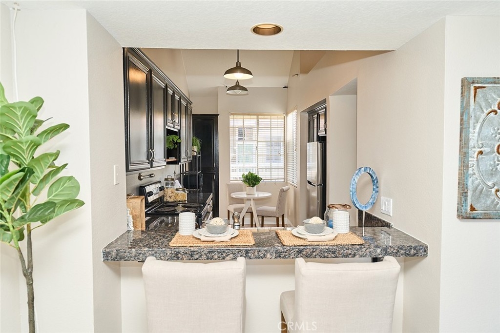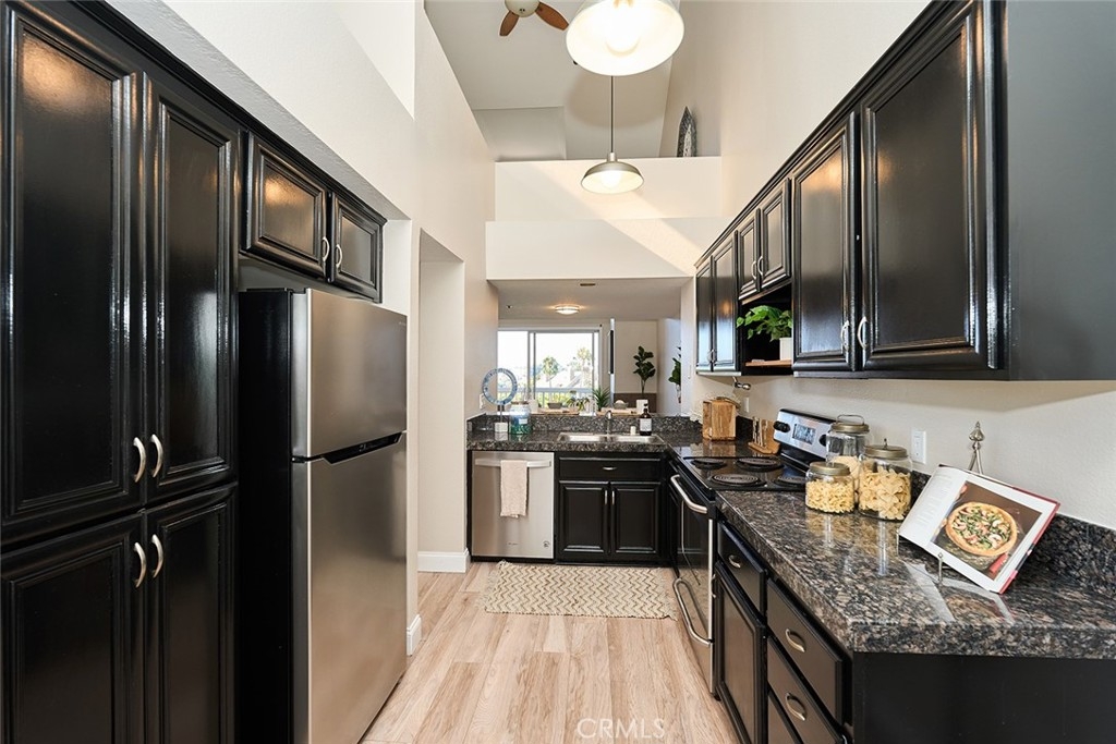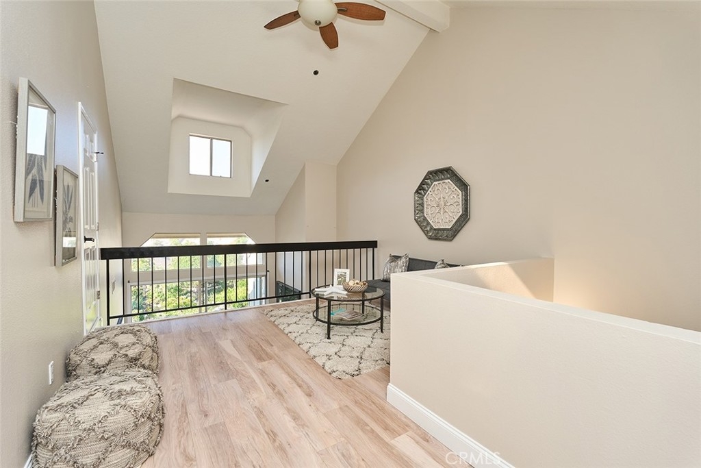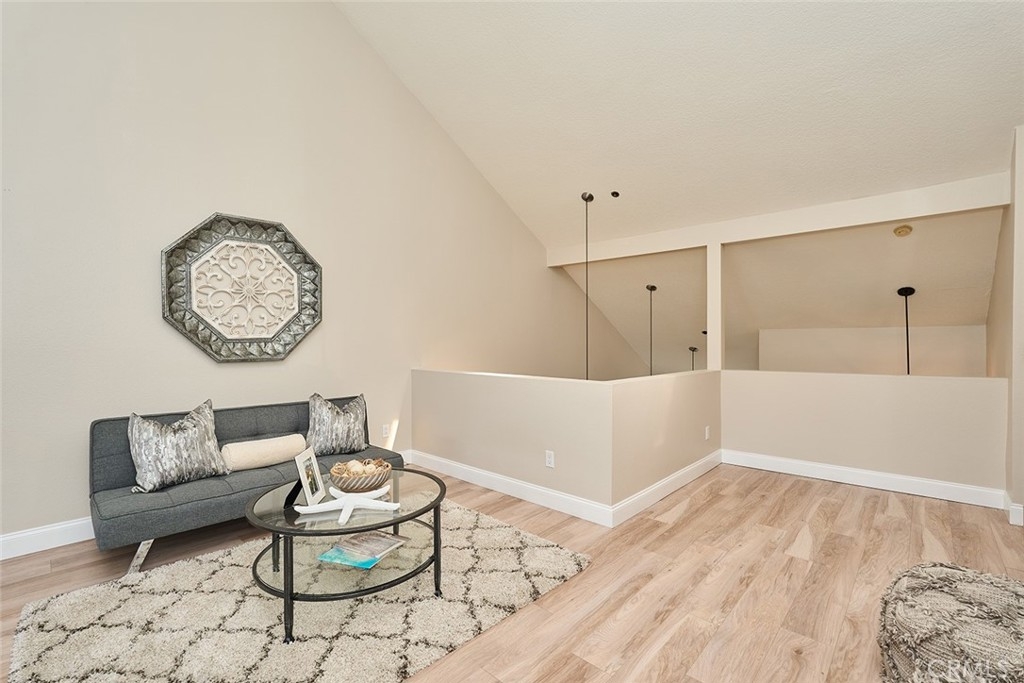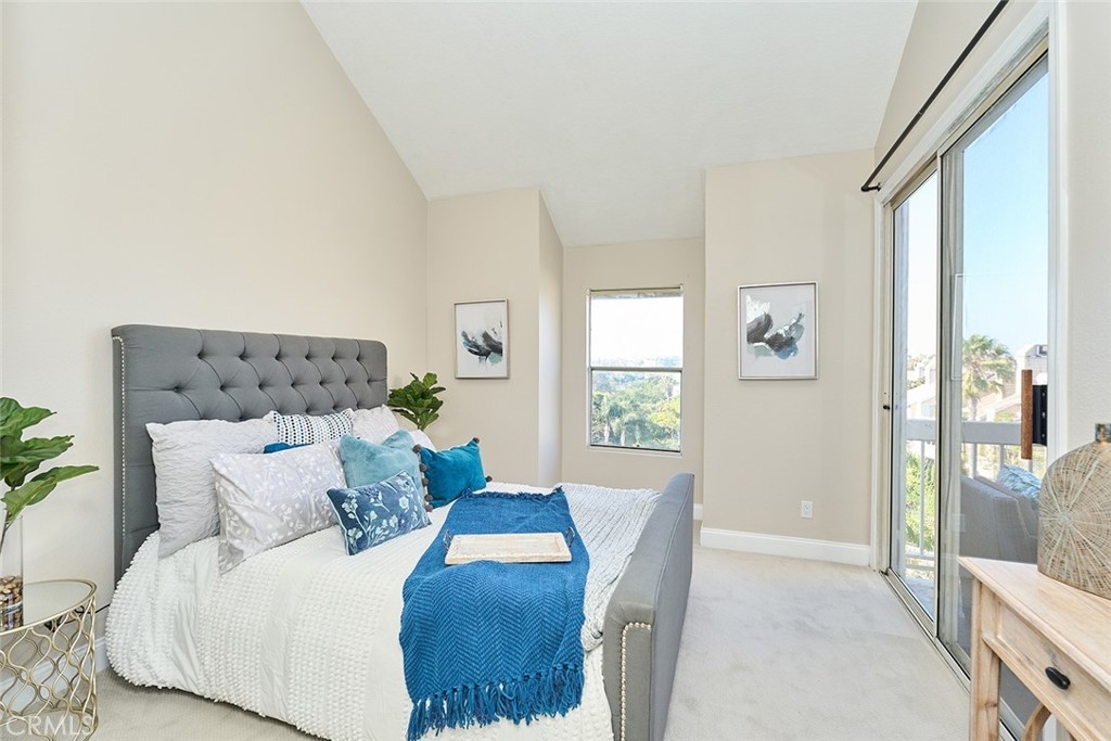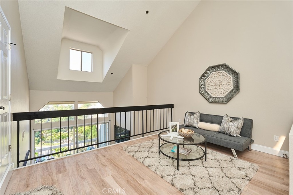 Rarely available PENTHOUSE located in the highly desired Seabridge Community in South Huntington Beach! Located on the 4th floor, this 1301 square foot home has two spacious bedrooms, two full bathrooms, plus a loft! Upon entering the home, you are greeted with dramatic cathedral ceilings and an open floor plan. There is a private balcony off the living room perfect for entertaining and relaxing with the sounds of streams and city views and watching the Disneyland fireworks! The kitchen is designed with an open layout with breakfast nook, plenty of storage, and a breakfast bar which opens to the dining and living room space. The living room features impressive vaulted ceilings, fireplace, and dramatic glass windows leading to the outdoor space. The primary bedroom is in the back of the unit. With an en-suite bathroom with shower/tub, window with soaring views and private balcony access. The secondary bedroom is conveniently located near the entryway and has a full bathroom which can be used by guests from the living room. This bedroom is next to the spiral staircase that takes you to the impressive loft area. This top-level loft is perfect for an additional bedroom, home office, gym, hangout room or whatever you desire. There is an additional large storage room accessible from the loft that many owners have converted into a 3rd bedroom. Upgraded with fresh paint, new carpet and laminate flooring this home is move in ready! The unit also includes an inside laundry area and two covered parking spaces. Seabridge is a 24-hour gate guarded community with all the amenities you could dream of. Multiple pools, spas, tennis courts, a dog park, walking paths, sauna, and a well-equipped gym. Ideally located close to downtown Huntington Beach, Main Street, Pacific City, shopping, restaurants and the beach. Seabridge boasts a resort lifestyle with soothing waterfalls, steams, and a tranquil ambiance. This home is the perfect coastal oasis!
