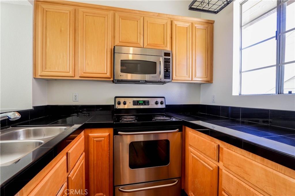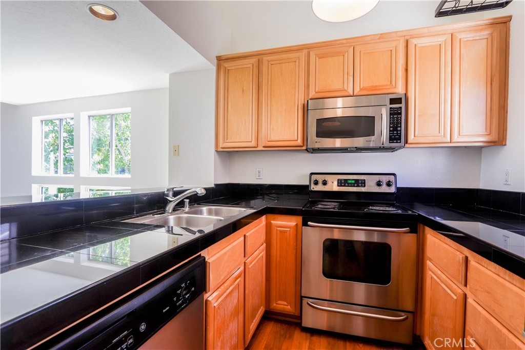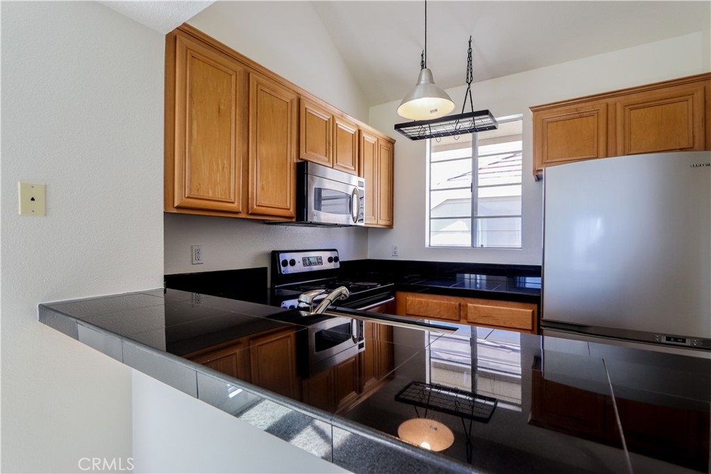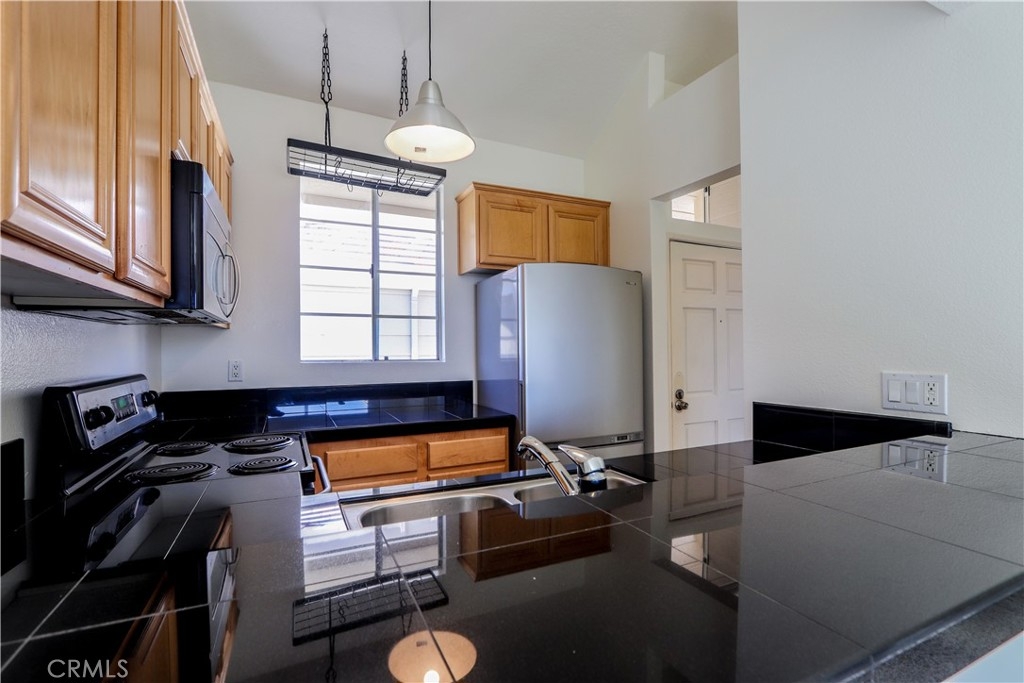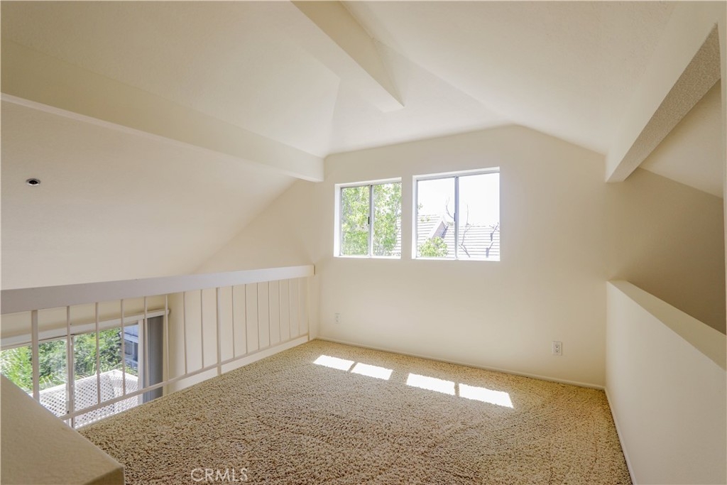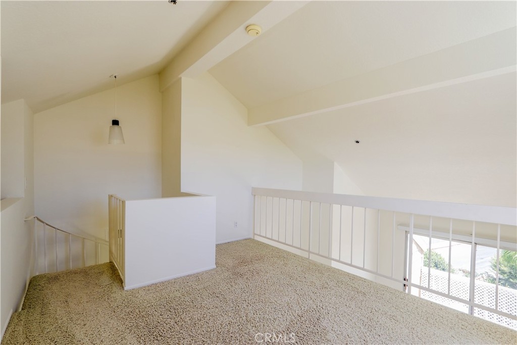 Bright and open one-bedroom condo with loft in Seabridge Villas in Huntington Beach. This top-floor end-unit condominium offers approximately 890 square feet of living space with plenty of natural light from end-unit windows and vaulted ceilings. A spiral staircase leads to the loft which could be used as an office or additional living space. Enjoy a private balcony with panoramic views. Living room offers a fireplace and kitchen contains stainless steel appliances and granite tile countertops. For your convenience, a stackable washer/dryer is available within the unit. Condo comes with 2 assigned parking spaces in parking garage. An exterior closet is also available on the patio for storage. The community has a 24-hour guard gate and features beautiful landscaping, streams and lakes, pools, hot tub, gym, community clubhouse, and elevators. Water and trash utilities are included in HOA dues. This prime location is just a short mile to the beach and other popular destinations in downtown Huntington Beach.