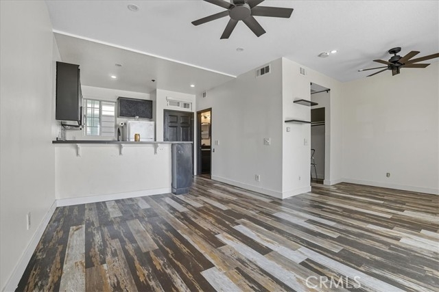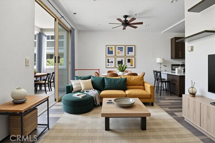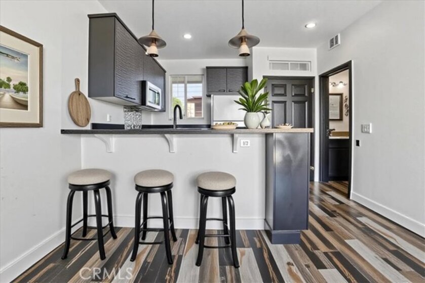 Step into sweeping south-facing views and ocean breezes—your coastal studio retreat awaits. The space feels larger with expansive balcony, clean laminate flooring, kitchenette featuring black granite bar-style counters that double as a dining area. Appliances include an electric range, microwave, refrigerator, plus a stackable washer/dryer. A walk-in shower, walk-in closet, and additional storage keep things organized and clean. This guard-secured gated community, delivers resort-style living with: Two spacious pools & spas, indoor gym, dry sauna, rentable clubhouse and subterranean parking + bike storage with elevator access. Four lighted tennis courts, spacious green belts and dog friendly community, lush landscaping, with waterfalls, lagoons, as well as walking paths throughout. Walking or biking distance to downtown Huntington Beach and Pacific City shopping, restaurants and nightlife.