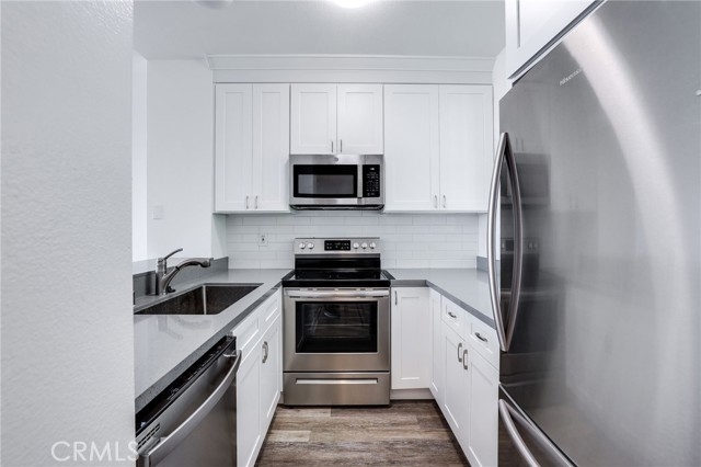 Welcome to this stunning 1 bedroom, 1 bathroom condo located in the pristine Seabridge Villas community! This condo features an upgraded kitchen with granite counters, custom cabinets, newer stainless-steel appliances with a full bathroom that offers a large walk-in closet with built ins. Front door has retractable screen for great breezes. This home also has a balcony off the living room for relaxation and to take in the mesmerizing views of the surrounding neighborhood, and on clear days, the ocean! Double pane windows with black out shades provided in the bedroom for a quiet and private sleeping experience. Subway tile in the bathroom and two separate sinks for personal and guests come with the unit. There are TWO assigned covered parking spaces in the designated parking structure. This community has amenities such as pools, a spa, and a place where you can store your bicycles.
