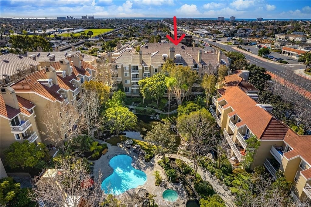 Resort style living in this open and airy penthouse loft close to the beach! This floorplan is rarely on the market, it's the largest floorplan in the Villas community. Vaulted ceilings with an abundance of natural light in this south facing unit. Two bedroom suites PLUS a spacious loft or office area. Living room, dining area and additional space for storage or bedroom in the loft area. Unit comes with two assigned parking spaces, one inside and one outdoor space. 24 hour guard gated community with pools, spas, ponds and waterfalls with lush landscaping, Tennis courts, a Gym with Sauna, reservable clubhouse for entertaining, and a large park area. Enjoy the ocean breezes and open view with an ocean peek from your balcony. Close to Downtown Huntington, The Pier, Pacific City, shopping and restaurants. Welcome home to this oasis in sunny Southern California!