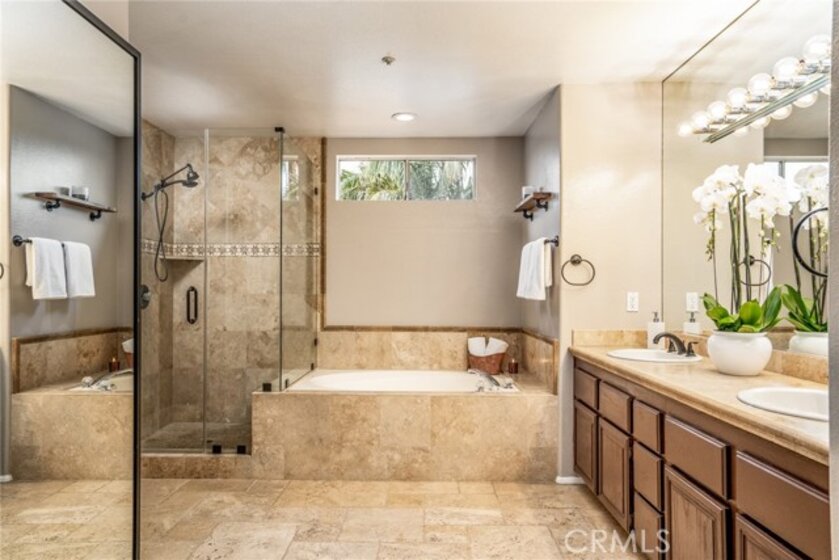 You're going to LOVE, LOVE, LOVE living in the quiet gated community of Seacliff Palms! This amazing, light-filled end unit townhome is located within the greater Seacliff area and is in a prime location near all of HB's most desired amenities. With only 32 attached properties in the development, you'll appreciate the tranquility and quality of life of the neighborhood. This wonderful home features beautiful engineered wood & tile floors, central air conditioning, bull-nose corners, smooth ceilings, recessed lights, elegant baseboards, plantation shutters, and dual pane windows & sliders throughout. The upgraded kitchen features granite counters & breakfast bar, stainless steel Frigidaire & Whirlpool appliances, and loads of storage cabinetry & pantry. This home boasts almost 1,800 sqft. and is the largest model in Seacliff Palms. This extremely desirable floor plan offers two large master suites that are completely distanced from each other (perfect for privacy) and each has their own ensuite bathroom. The upstairs bedroom suite offers two closets (including one large walk-in) and huge ensuite bathroom w/separate tub and frameless glass walk-in shower, high-end tumbled tile, travertine tile, dual sinks, and designer fixtures. This home has a private gated entrance and sunny wraparound patio w/lots of space for furniture, BBQ, and gardening. The 2 car attached garage has direct access, and features storage cabinets and included washer/dryer. This community features a heated pool & spa perfect for rest and relaxation. This home has everything you're looking for... a very safe, gated community w/awesome location & neighbors. This home is part of the Huntington Beach High (rated 9) and Seacliff Elementary (rated 9) School District. Five Points shopping center & Trader Joe's is located across the street. 350 acre HB Central Park & Library, The Equestrian Center, HB Sports Complex, Disc Golf Course, Meadowlark Golf Course & Club, HB Pier & Shops/Restaurants, and the ocean are just minutes away!