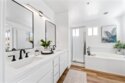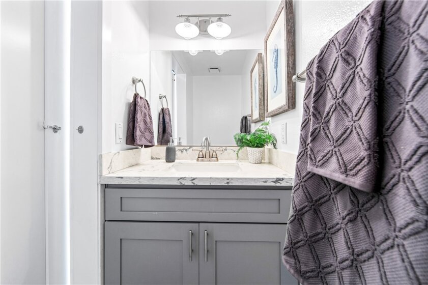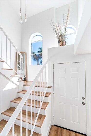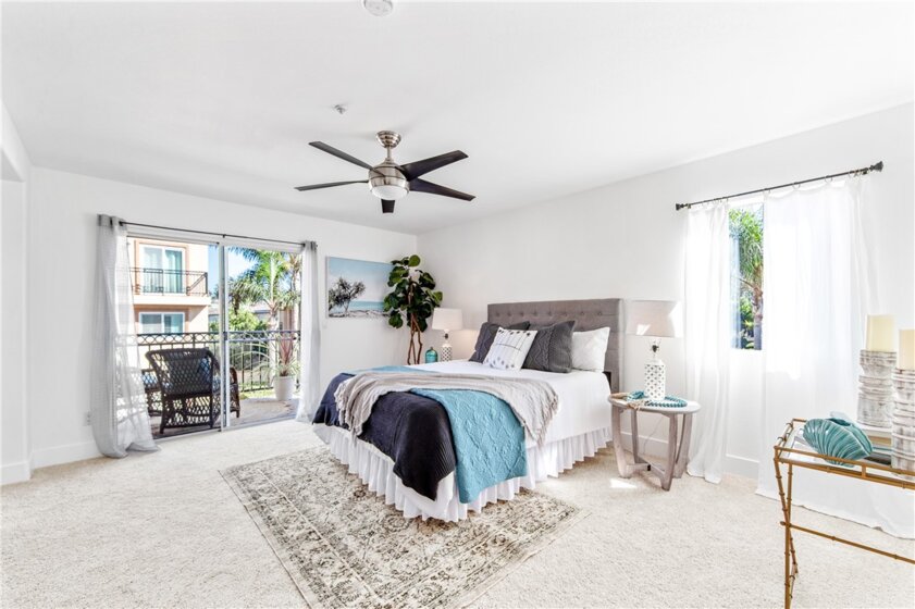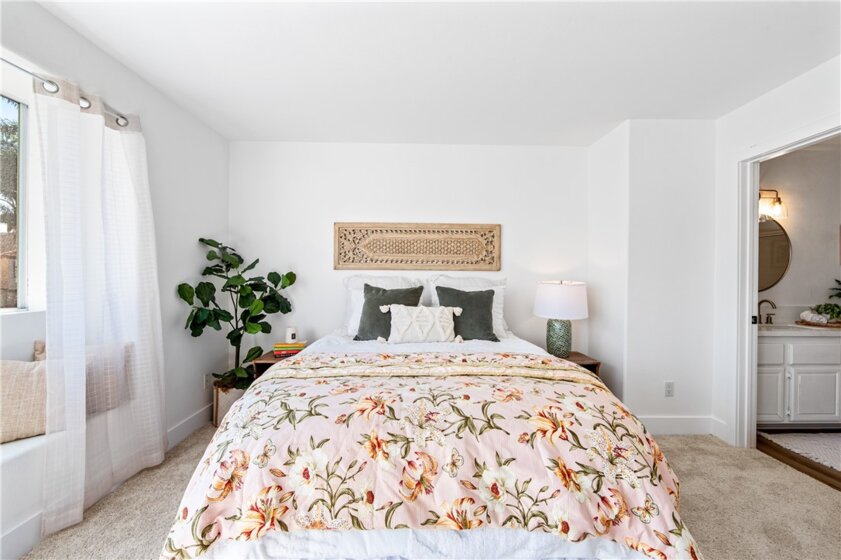 Welcome to Seacliff Palms – Huntington Beach’s Best Kept Secret! This beautifully updated 2-bedroom, 2.5-bath townhome is a hidden gem in one of Surf City’s most private and peaceful gated enclaves—just 2.5 miles from the beach and a short stroll to Trader Joe’s, Seacliff Village, Five Points Shopping Center, and top-rated Huntington Beach schools. Tucked inside a quiet cul-de-sac within a cul-de-sac, this home offers the best of both worlds: easy access to all the fun and flair of downtown Huntington, while being perfectly sheltered in a serene, well-maintained, Gated community of only 32 homes. Step inside to find a light-filled loft-style living area with soaring ceilings, a dramatic matte black fireplace trimmed in natural wood, a statement waterfall chandelier in the stairwell, and wall-to-wall windows that overlook the sparkling pool. The downstairs half bath has been stylishly remodeled, and upstairs, both bedrooms enjoy full en-suite bathrooms, creating an ideal layout for privacy and comfort. The larger primary suite includes dual sinks, a soaking tub, separate walk-in shower, a sit-down vanity, a private water closet, and a generous walk-in closet. The oversized kitchen is a dream with sleek cabinetry, abundant counter space, a wraparound breakfast bar, and a spacious walk-in pantry. There is direct access to the garage through the kitchen, and the laundry area is conveniently located inside the large garage. An extra-long driveway provides rare and valuable additional parking. The entire home has been thoughtfully refreshed with new flooring, updated fixtures, and trim work, making it feel clean, modern, and move-in ready. Outdoors, enjoy a resort-style pool just steps from your living room window. Super low HOA fee of $350 covers gated access, pool, exterior maintenance, and common area landscaping. With no neighbors directly in the front, excellent walkability, and a truly unbeatable location, this is the kind of opportunity that rarely comes available. The designated schools include Seacliff Elementary and Huntington Beach High School, both highly regarded. Whether you're starting out, investing, or downsizing, this peaceful and private home offers everything you love about coastal living—without the noise or congestion. Don't miss this rare chance to own in one of Huntington Beach’s most underrated and centrally located communities. It’s a sweet spot you’ll never want to leave.