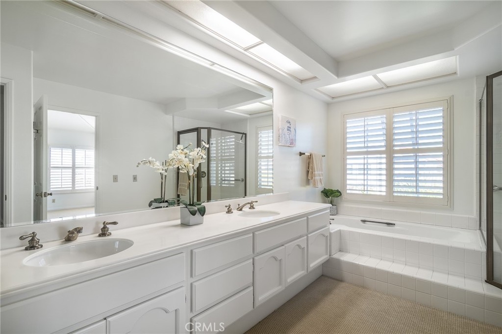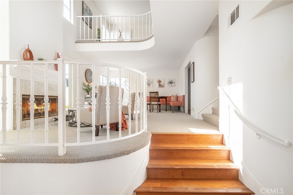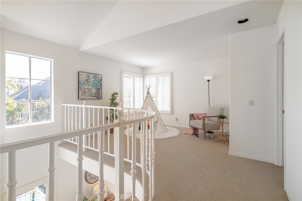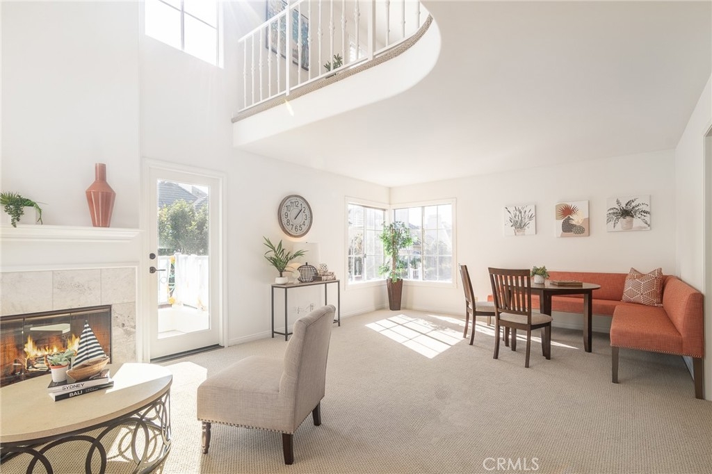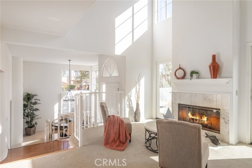 Tucked away in the highly desirable, guard gated community of SeaCliff on the Greens just across the way from the ocean is this stunning 2-bedroom, 2.5-bath end unit home with a downstairs den that can easily be converted into a third bedroom, and a spacious loft on the second level. The home has brand new carpet and fresh interior paint! This is the largest floor plan offered of all the SeaCliff Club Series models! The location is incredible as an end unit overlooking a sparkling pool, and the community is just a short distance to the shops and eateries of Pacific City and Main Street, as well as the fun activities of Downtown Huntington Beach. The corner lot location offers unparalleled privacy and also overlooks one of the community pools. Your front courtyard leads to the home's entrance, where you'll immediately notice the abundance of natural light. Step down into the formal dining area, which leads to the kitchen equipped with granite countertops and recessed lighting. The lower level also hosts the spacious formal living room with a fireplace, as well as a convenient bonus room/den that can easily be converted into a downstairs bedroom. Up the stairs you'll see the sizable loft area -- perfect for an at-home workspace -- and just down the hallway is a guest bedroom with an attached bathroom. The primary bedroom suite with vaulted ceilings has its own attached balcony overlooking the front patio and community pool, opening into the primary bath with dual sinks, a tub, and walk-in shower. Offering resort-like amenities and sitting just a short distance to the beach, this SeaCliff on the Greens home is a must-see!