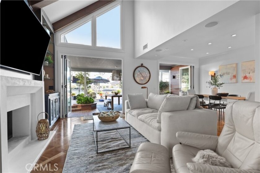 Summer is here and nowhere in Huntington Harbour will you find this much waterfront for under 3 million dollars. You have a 30 foot boat slip, that is all yours, right outside your backdoor; over 50 feet of unobstructed views of the water and the beach across the channel. AND the ability to rent a second boat slip to your left, if you choose. Nearly every inch of this home has been updated. The downstairs has wall to wall hardwood walnut flooring laid out in a parquet Versailles pattern. There is a modern element with a beautifully appointed concrete fireplace surround, fresh white paint with accent walls, modern entry chandelier and vaulted ceilings with wood beams. The primary bathroom is wall to wall marble with a walk-in in shower, dual shower heads and double vanities. The primary has a jaw dropping closet that is cedar lined and comes with pull down handles for ease of use and plenty of storage. Enjoy coffee on your expansive balcony right of the primary suite that overlooks the water. On the back patio facing the deep water, you will find a spa, built-in bbq and refrigerator and brick flooring underfoot that makes this area feel like an extension of the house. The fourth bedroom was converted to an office with beautiful wooden built ins but could be used as a 4th bedroom. The two large bi-fold patio doors open almost the entire South wall of the home and allow for ocean breezes and a wide view of the channel. Take your Duffy over to Pelican Isle for dinner, shopping or a quick stroll to the sand/ocean or PCH for easy access to more restaurants, nightlife and entertainment. Enjoy the Huntington Harbour Christmas boat parade from the comfort of your backyard! Summer is here. This home will not last!