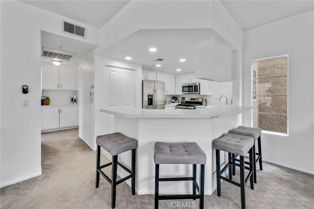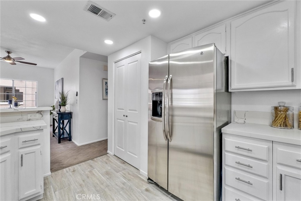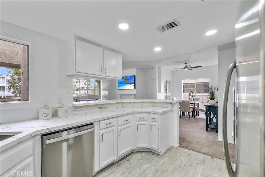 Walk to the beach!! This fabulous condo offers an ultimate beach lifestyle. This quiet location is close to the beach and the Wetlands. This Single story, end unit allowing lots of sunlight to fill your home. Enjoy the ease of elevator access from the ground floor as well the subterranean garage making it fully handicap accessible, you'll find two reserved parking spaces, both with additional storage. The moment you step inside the condo, the living room welcomes you with vaulted ceilings and an abundance of natural light. Cozy up by the inviting fireplace, and allow the open dining area to seamlessly lead you into the well-appointed kitchen and dining area. New paint throughout. The kitchen is updated with quartz countertops, white crisp cabinets, new hardware, New flooring, and New stainless steel appliances. Both of the bedrooms in this residence offer vaulted ceilings, with the oversized primary bedroom granting you ample closet space, an ensuite bath, and a private balcony with additional outside storage. The secondary bedroom is generously sized, boasting large closets and its own vaulted ceilings, and is perfectly suited for guests or a home office. An updated bath in the hallway completes the living quarters. And to ensure year-round comfort, the condo is equipped with air conditioning, and newer shutters throughout, along with a stacked washer/dryer. The convenient Seaporte complex is highly sought after for good reason; it features a secure gated entry, a sparkling pool and relaxing spa, as well as a clubhouse and BBQ area for your outdoor gatherings. Top rated schools. HOA dues include basic cable/internet, water, and trash services, simplifying your life even further. Come live the great beach lifestyle today!