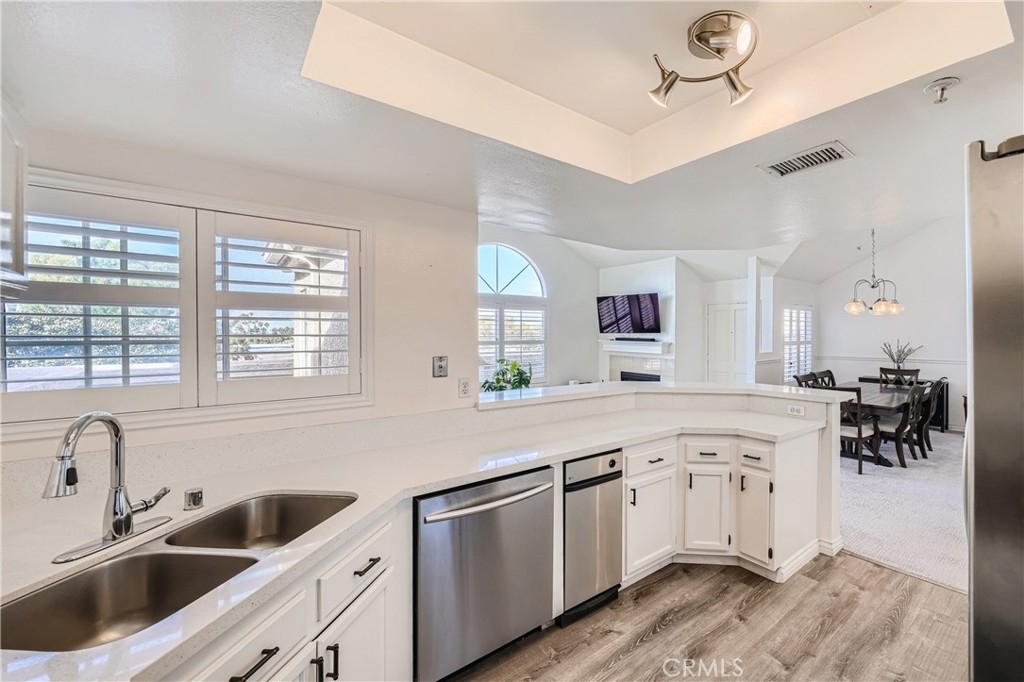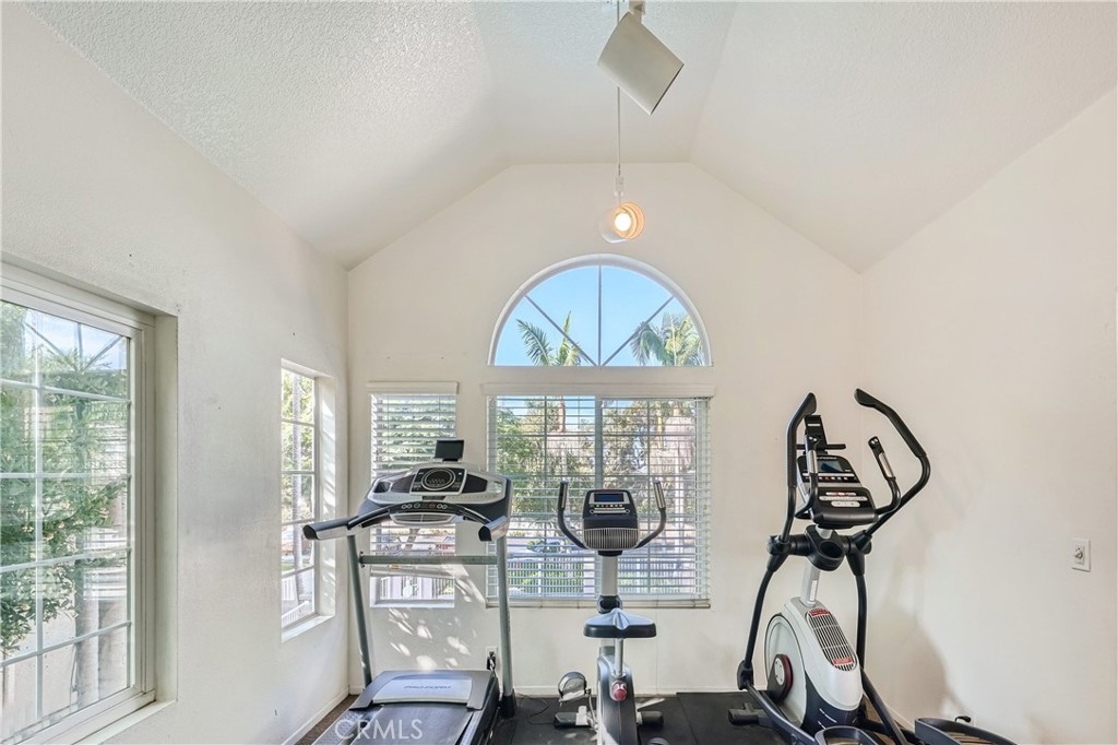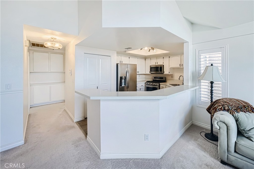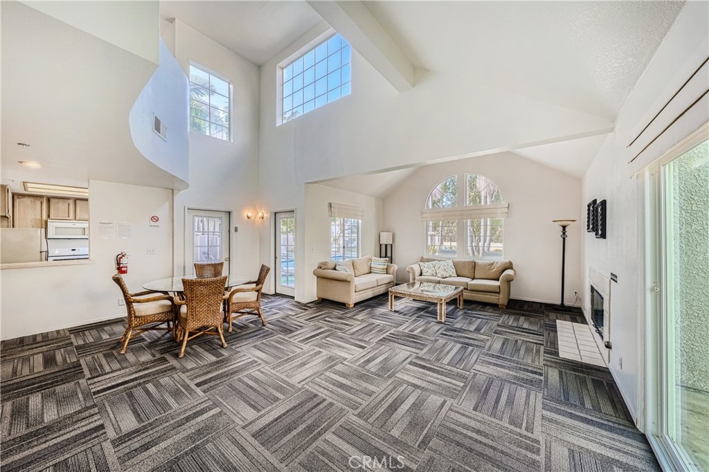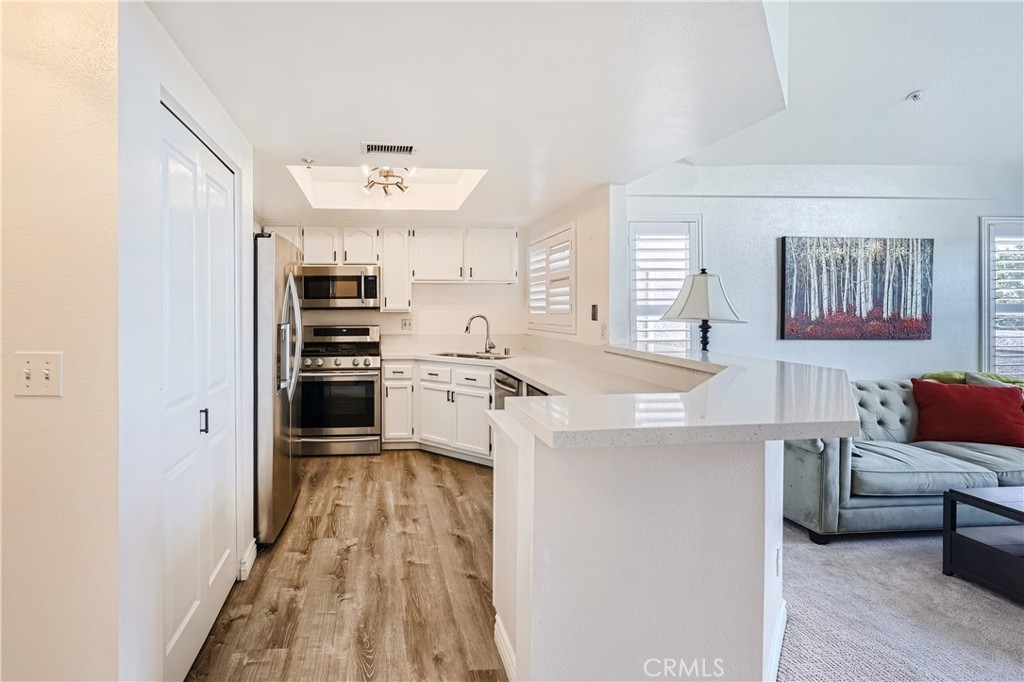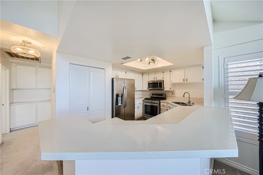 Embrace the ultimate beachside lifestyle in this updated 2 bed, 2 bath penthouse unit nestled within the gated Huntington Seaporte. Just 3 min. drive, or one mile walk/bike from the beach. This top-level gem is your gateway to coastal living at its finest. While super conveniently located, the gated complex offers a quiet, sophisticated lifestyle with ocean breezes blowing through your windows. Enjoy the ease of elevator access from the ground floor as well the subterranean garage making it fully handicap accessible, you'll find two reserved parking spaces, both with additional storage. The moment you step inside the condo, the living room welcomes you with vaulted ceilings and an abundance of natural light. Cozy up by the inviting fireplace, and allow the open dining area to seamlessly lead you into the well-appointed kitchen. The kitchen is updated with quartz countertops, painted cabinets, newer hardware, flooring, and appliances. The kitchen also features a gas range, dishwasher, and microwave. Both of the bedrooms in this residence offer vaulted ceilings, with the primary bedroom granting you ample closet space, an ensuite bath, and a private balcony with additional outside storage. The secondary bedroom is generously sized, boasting large closets and its own vaulted ceilings, and is perfectly suited for guests or a home office. An updated bath in the hallway completes the living quarters. And to ensure year-round comfort, the condo is equipped with air conditioning, and newer shutters throughout, along with a stacked washer/dryer. The convenient Seaporte complex is highly sought after for good reason; it features a secure gated entry, a sparkling pool and relaxing spa, as well as a clubhouse and BBQ area for your outdoor gatherings. HOA dues include basic cable/internet, water, and trash services, simplifying your life even further.