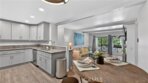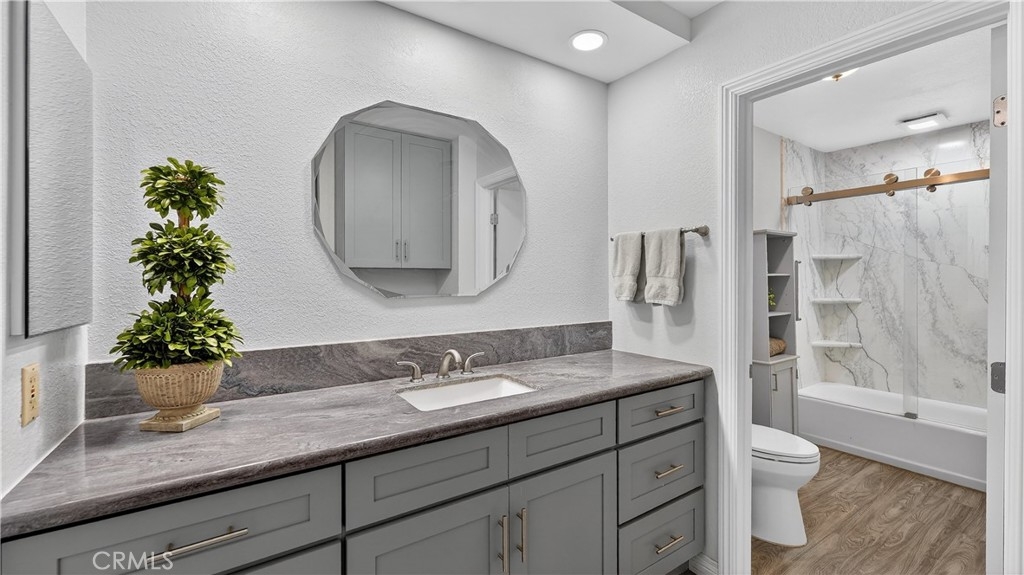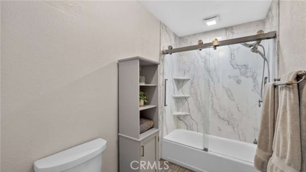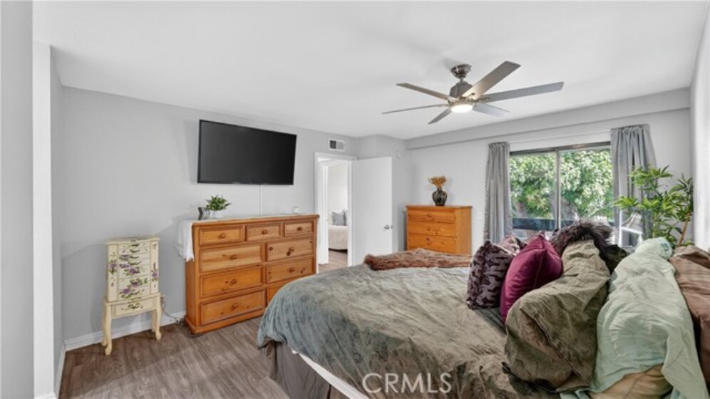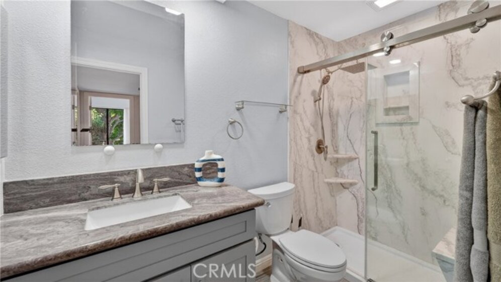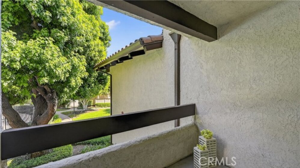 Located minutes to the beach in desirable gated community of Sea Spray! This beautiful home is located on the 2nd floor and features a spacious living area with fireplace and wood beamed ceilings that opens to a private balcony, a beautifully remodeled and expanded kitchen with stainless steel appliances including a double oven and quartzite counter tops. Beautiful laminate wood floors throughout all areas, two remodeled bathrooms with quartzite countertops, a spacious primary bedroom complete with a walk in closet and another private balcony. Additional highlights include interior laundry area with washer, dryer and shelving. This home comes with a detached garage and one assigned parking place, plus community EV charging and additional guest parking. Community amenities include a recently upgraded pool and spa, lighted tennis courts, a clubhouse, greenbelts and beautifully landscaped grounds. HOA includes water, gas and trash as well as a electric gate for homeowners. Prime location just 1.25 miles to the Huntington Beach, the pier, Main Street. Close to dining, shopping, nearby access to bike or jog the river trail. Also conveniently located near Edison High School, Golden West College and quick access to 405 and 22 freeways.