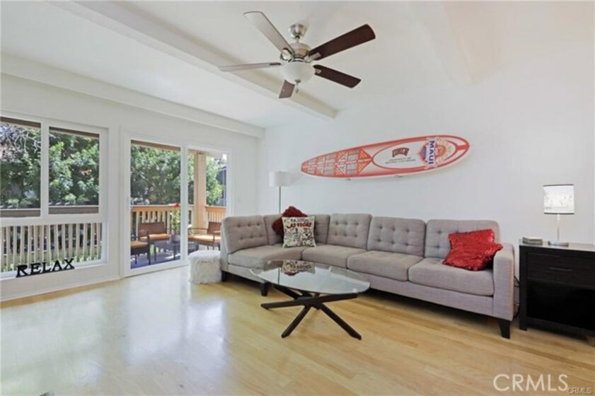 WELCOME TO YOUR HUNTINGTON BEACH HAVEN! This stunning remodeled condo is located in the highly desirable gated community of Sea Spray, with 2 beds/2 baths and 2 balconies. The condo is located on the second floor overlooking the lush community greenspace with sidewalks and mature trees. Step down to the living area with a beamed ceiling, travertine-like faced gas fireplace and an abundance of natural light and hardwood flooring throughout. The rich cherry-like finished cabinetry, granite countertops, and backsplash, recessed lighting, stainless steel appliances with black accents make for a well-appointed kitchen. The stainless wrapped counter has seating for two and industrial pendant lights. The open dining area suitable for almost any style of table and seating. The Master bedroom is carpeted, has an ensuite bathroom with vanity and beautiful cabinetry, separate tub/shower/toilet, tile flooring, a walk-in closet, and private balcony. The secondary bedroom is carpeted, a shaded window and double mirrored closet. The full-size washer and dryer are tucked away behind louvered folding doors in the hallway. Shelving above the washer and dryer for all your laundry and cleaning supplies. The two sunlit covered balconies are a perfect retreat any time of the day. Your detached one car garage just steps away from the condo, along with one reserved parking space. Comm pool, spa, clubhouse,tennis,volleyball courts. Minutes to the beach! Come take a look, you'll love it!! VA Financing