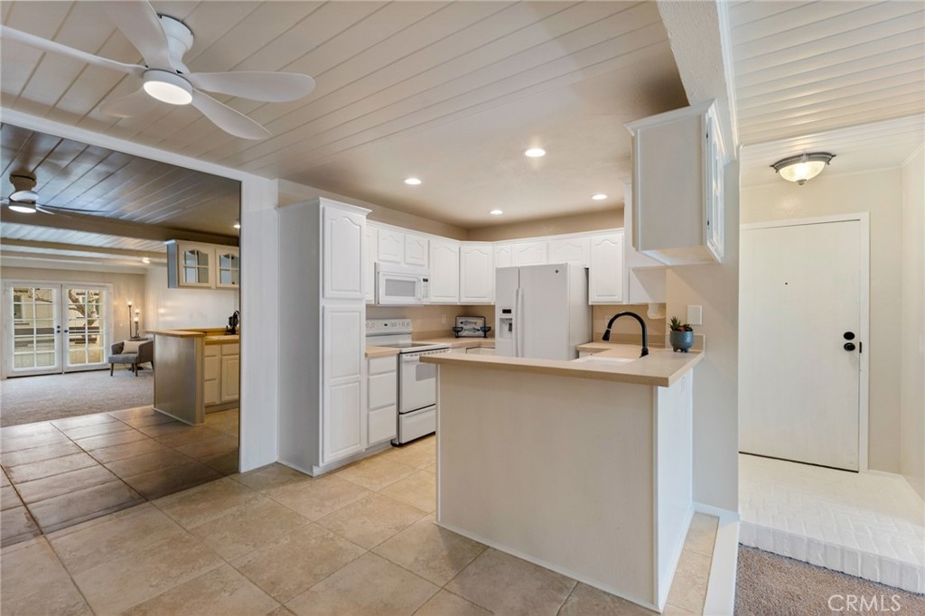 Beautiful partially RENOVATED home is in the desirable Sea Spray Community in Surf City Huntington Beach. This home features NEW interior paint, recessed lighting, light fixtures, tile flooring in kitchen and baths, NEW carpet in living and bedrooms. The large windows allow an abundance of natural light into the open floor plan throughout. The living room boasts a cozy fireplace, french doors lead to one of two balconies. An adjacent dining area with a breakfast bar top for high stool seating. The kitchen impresses with white cabinetry and hardware, tile countertops, full tile back splash. The appliances include an electric single oven range, microwave and dishwasher. The primary ensuite features a full bathroom, White counter tops, single sink vanity. The secondary bedrooms are generously sized and share a hallway full bathroom with a long vanity countertop, shower-tub combo bath with tile. The Community amenities include a pool, spa, tennis courts, greenbelt areas, professionally landscaped and manicure grounds. Detached garage, designated parking spot, plenty of guest parking near the unit. Nearby Trader Joes, the Huntington Beach Pier, Main Street shopping, restaurants, parks and more.