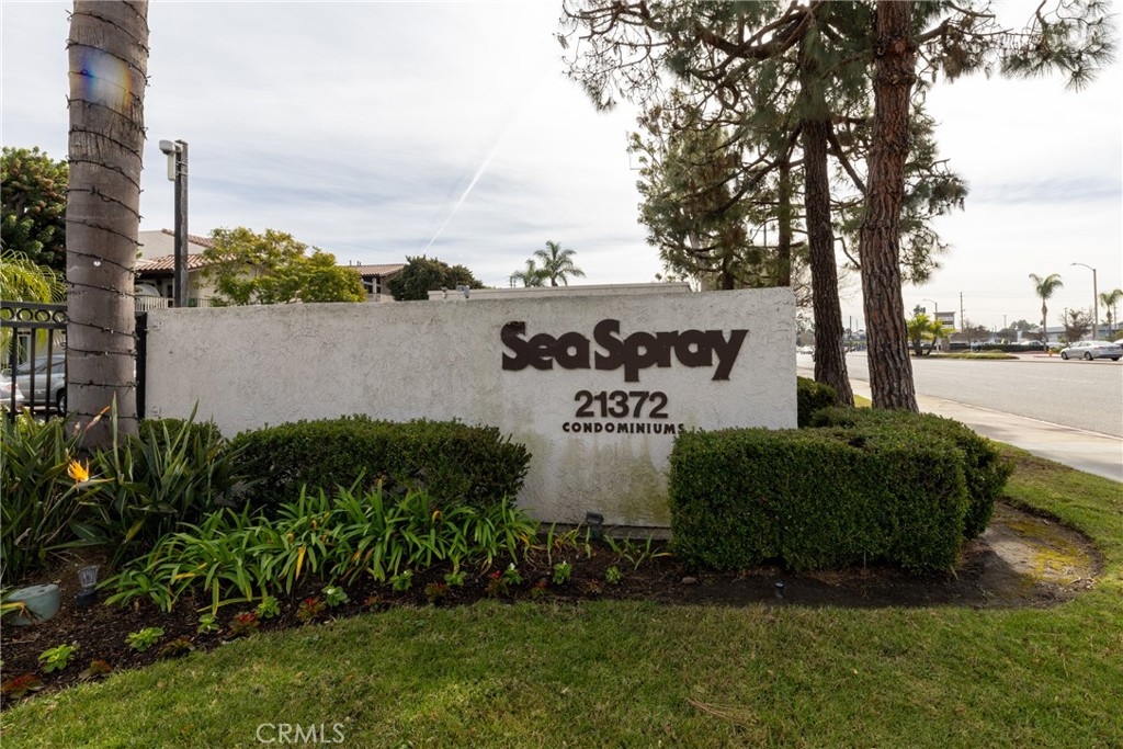 Welcome to the Neighborhood and enjoy all that the Surf City lifestyle has to offer. This Beautiful condo is in the SeaSpray community in Surf City Huntington Beach. Only 1.25 miles to the beach, across the street from Trader Joe's shopping center, and restaurants. The community has a pool and spa, two tennis courts, volleyball court, EV chargers. There is a direct access to the Santa Ana River bike trail which takes you directly to the beach. Spacious living room with an upgraded fireplace. Tile flooring throughout the living room, dining room and Kitchen. Large back patio off of the master bedroom. New large master bedroom fan. The kitchen features granite countertops and nearly new cabinets. The Master bedroom has a large walk-in closet. Upgraded bathroom with dual vanity and walk-in rain shower. This ground level, 2 bedroom and 2 full bathroom condo has an indoor laundry closet tucked into the hallway which has room for a full-size washer and dryer. 1 car garage (#416) and 1 assigned parking space (#109).