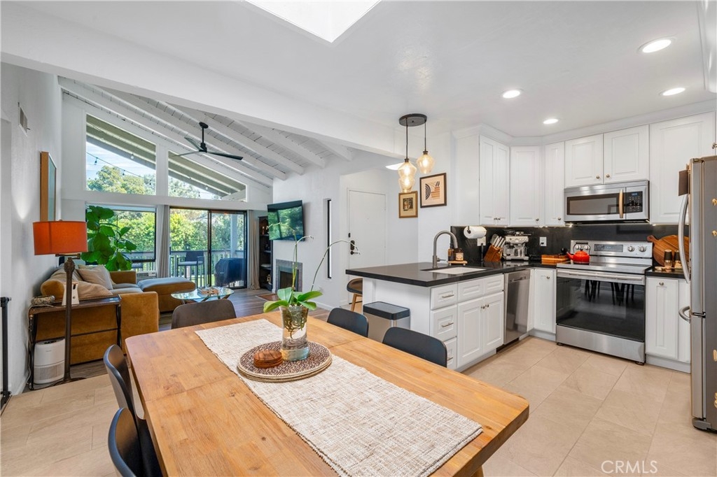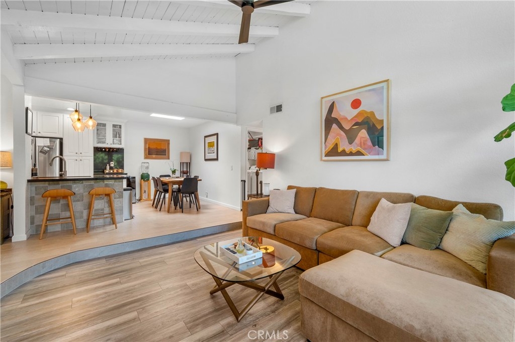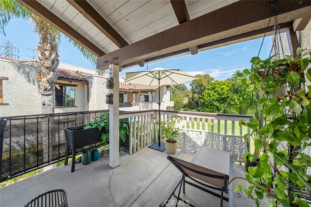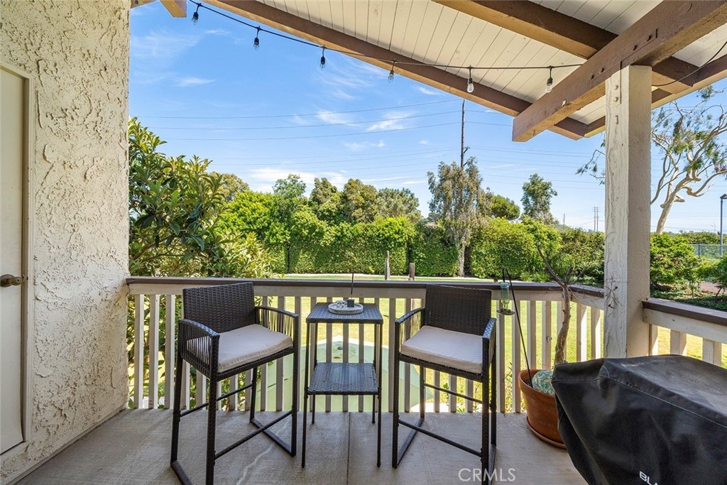 Welcome to the sought-after gated community of Seaspray, nestled in the heart of Huntington Beach. This beautifully remodeled upper unit exemplifies meticulous care and pride in ownership. Boasting 3 bedrooms and 2 bathrooms with vaulted ceilings and nearly 1,200 square feet of living space, this home features a newly remodled chef's kitchen with soft-close white cabinets, elegant quartz countertops and backsplash, a breakfast bar, recessed lighting, and newer stainless steel appliances. The kitchen seamlessly connects to the dining area and living room, creating an ideal space for entertaining. The spacious living room is enhanced by a cozy fireplace, a modern ceiling fan, and a balcony that overlooks lush, manicured grounds. The newly updated bathrooms showcase stylish herringbone-patterned limestone flooring, European white oak cabinets, and contemporary fixtures. The generous primary bedroom features a dressing area, a beautifully appointed bathroom, and its own private balcony. This unit also includes an inside laundry room, detached single-car garage, one assigned parking space and plenty of guest parking. In 2021, the meticulously maintained community experienced a significant transformation featuring an updated pool and jacuzzi spa, a clubhouse, illuminated tennis courts, new balconies, a 40-year roof warranty, and refreshed landscaping. The HOA covers water, trash, and exterior maintenance. Residents of this community enjoy access to two private gates leading to bike and walking trails that connect directly to the beach. Conveniently located near shopping, dining, parks, and hiking trails. With its prime location, this unit presents an outstanding opportunity to experience the ideal Huntington Beach lifestyle.