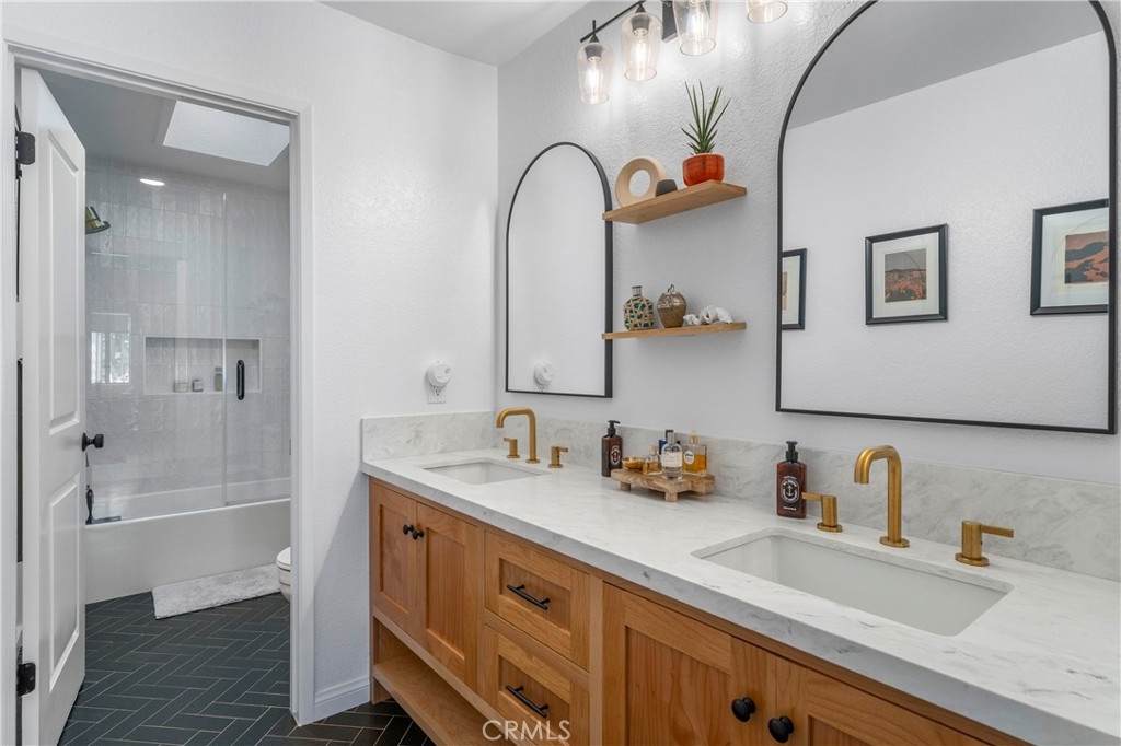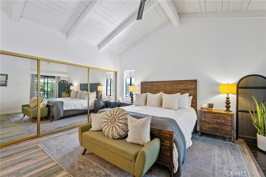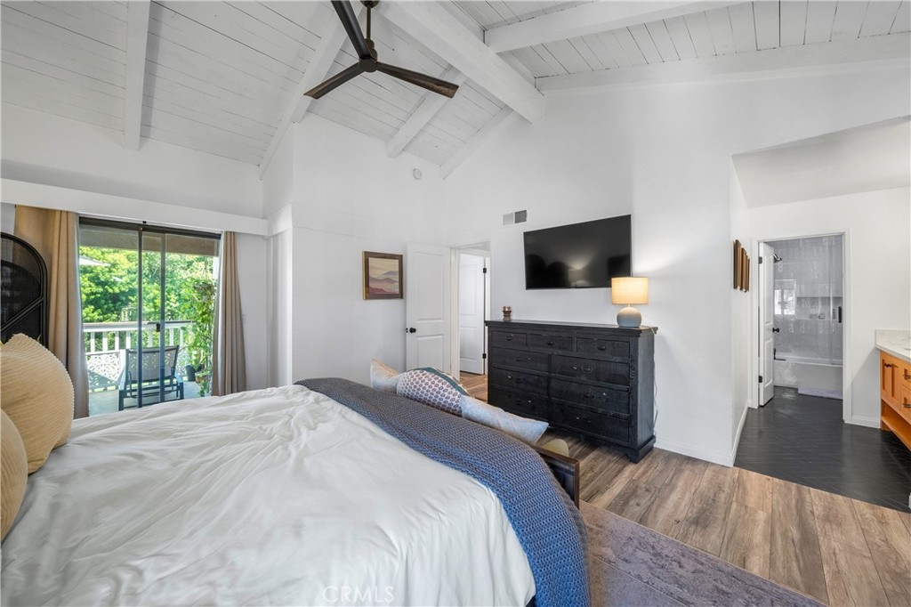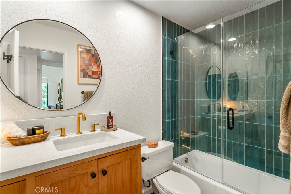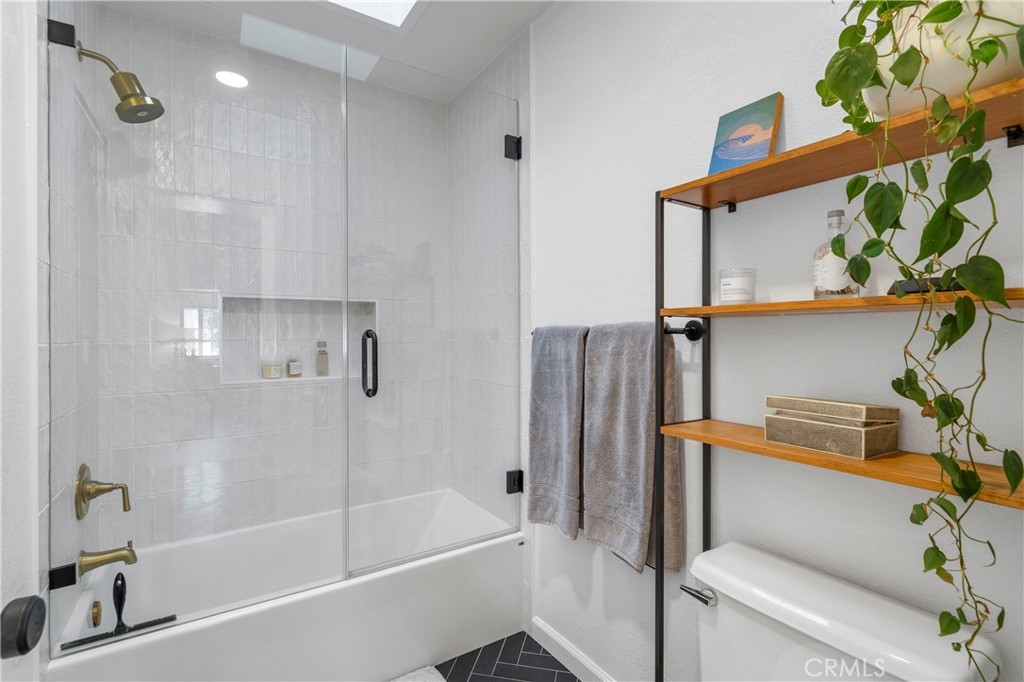 Welcome to the sought-after gated community of Seaspray, nestled in the heart of Huntington Beach. This beautifully remodeled upper unit exemplifies meticulous care and pride in ownership. Boasting 3 bedrooms and 2 bathrooms with vaulted ceilings and nearly 1,200 square feet of living space, this home features a newly remodled chef's kitchen with soft-close white cabinets, elegant quartz countertops and backsplash, a breakfast bar, recessed lighting, and newer stainless steel appliances. The kitchen seamlessly connects to the dining area and living room, creating an ideal space for entertaining. The spacious living room is enhanced by a cozy fireplace, a modern ceiling fan, and a balcony that overlooks lush, manicured grounds. The newly updated bathrooms showcase stylish herringbone-patterned limestone flooring, European white oak cabinets, and contemporary fixtures. The generous primary bedroom features a dressing area, a beautifully appointed bathroom, and its own private balcony. This unit also includes an inside laundry room, detached single-car garage, one assigned parking space and plenty of guest parking. In 2021, the meticulously maintained community experienced a significant transformation featuring an updated pool and jacuzzi spa, a clubhouse, illuminated tennis courts, new balconies, a 40-year roof warranty, and refreshed landscaping. The HOA covers water, trash, and exterior maintenance. Residents of this community enjoy access to two private gates leading to bike and walking trails that connect directly to the beach. Conveniently located near shopping, dining, parks, and hiking trails. With its prime location, this unit presents an outstanding opportunity to experience the ideal Huntington Beach lifestyle.