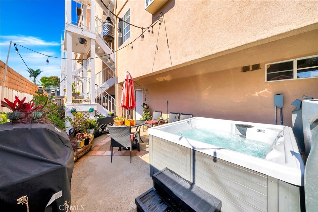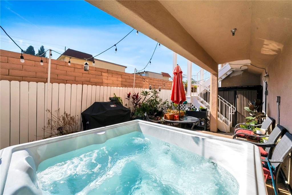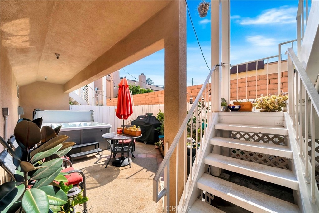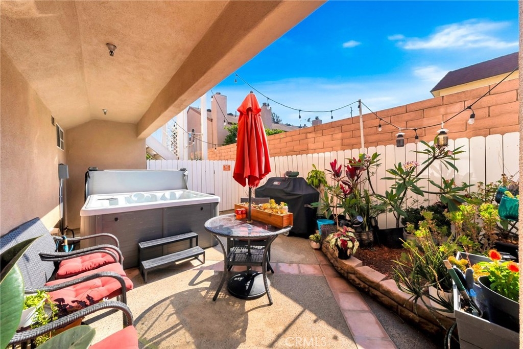 Experience the ultimate coastal lifestyle in this beautifully upgraded townhome offering over 1,500 sq. ft. of thoughtfully designed living space in the heart of Huntington Beach. Perfectly positioned just a short distance from the sandy shores and lively downtown, this 2-bedroom, 2.5-bathroom retreat blends modern comfort with beachside charm. Enter on the ground level where you’ll find a spacious 2-car direct-access garage with a pristine epoxy finish, as well as a dedicated laundry room for added convenience. Just beyond, step out to your private ground-floor patio—an inviting oasis featuring a relaxing new hot tub, perfect for unwinding after a day at the beach or entertaining under the stars. Ascend to the second floor and step into an inviting open-concept living and dining area, where vaulted ceilings and expansive windows fill the home with natural light. Enjoy cozy evenings by the gas fireplace, showcase your favorite décor on custom built-in shelving, and entertain with ease in the upgraded kitchen featuring sleek countertops, stainless steel appliances, and ample cabinetry. A stylish powder room on this level adds functionality for guests. Upstairs, you’ll discover two luxurious master suites, each boasting vaulted ceilings, spa-inspired en-suite bathrooms, and generous closet space—ideal for creating your own peaceful retreat. The true crown jewel of this home is the expansive private rooftop deck, where you can unwind, savor breathtaking sunsets, and enjoy ocean breezes just minutes from the beach. With newer laminate flooring throughout, thoughtful upgrades, and an unbeatable location near shops, restaurants, and Huntington Beach’s iconic coastline, this townhome is the perfect blend of style, comfort, and convenience.