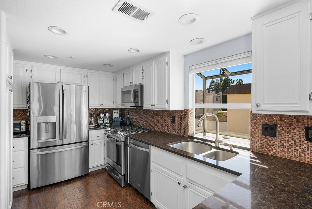 Just minutes from the surf and sand, this Huntington Beach home offers panoramic rooftop views, a private backyard, and a spacious two-car garage, all wrapped in a smart, stylish design that captures the best of coastal living. Soak up sunsets and ocean breezes from the rooftop deck, or unwind in the sunny backyard patio, perfect for morning coffee or evening gatherings. Inside, the well-thought-out layout flows perfectly, with open living and dining areas designed for everyday comfort and easy entertaining. The remodeled kitchen features new stainless steel appliances, a built-in wine fridge, and a casual breakfast bar. Upstairs, two oversized suites feel like private retreats with vaulted ceilings, mirrored closets, and ensuite baths. Additional perks include a dedicated laundry room, generous storage, and direct garage access. Nestled in a quiet enclave of just nine homes, this property strikes the ultimate balance between relaxed beach living and everyday convenience, with top schools, dining, shops, and freeways all within easy reach.