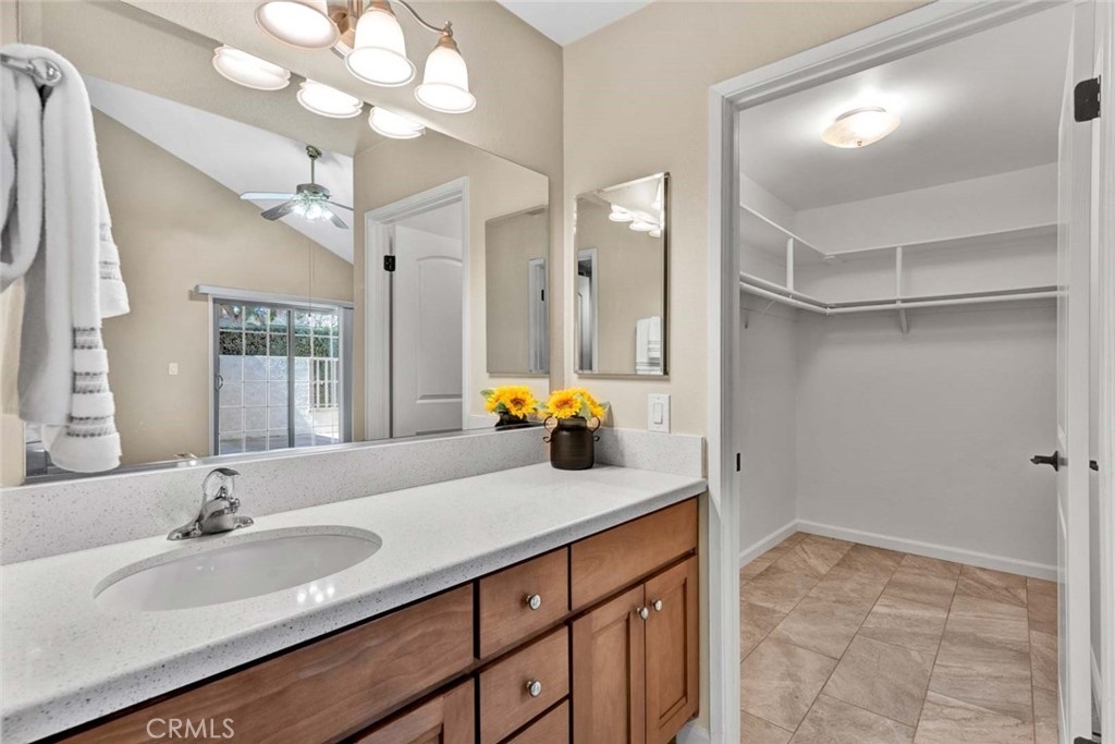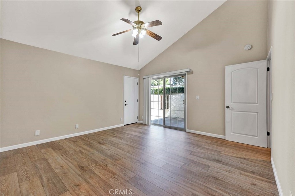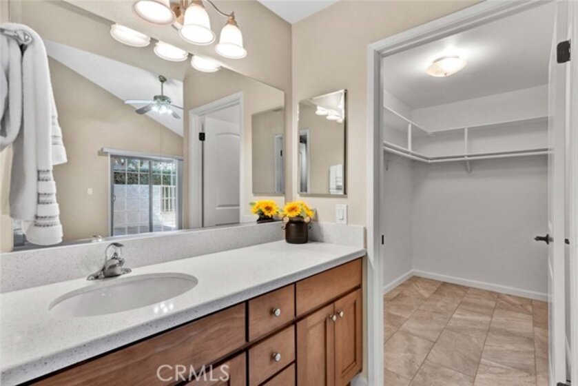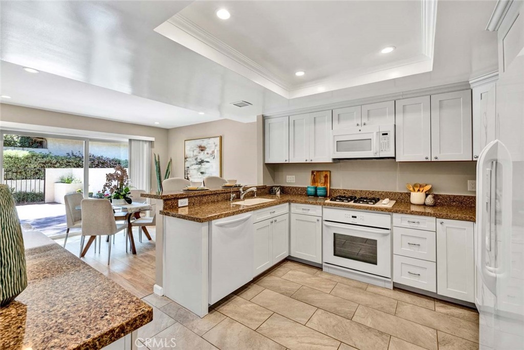 Tastefully updated and lovingly maintained, this 3 bedroom, 2 bathroom single story end unit home in the Springhurst townhomes may be the one you've been waiting for! The mood is subtle elegance from the 6 panel front door trimmed with leaded glass windows that leads to a living room flooded with natural light. The living room features a cathedral beamed ceiling, marble trimmed fireplace, recessed lighting, and laminate floors. It flows to the dining room and remodeled kitchen, with a breakfast bar, walk in pantry, granite counters, loads of cabinets, a gas stovetop, microwave, dishwasher, refrigerator, recessed lighting, and a buffet with additional storage that extends the length of the wall. Sliding doors exit to the main patio space, with planters to exercise your green thumb. The doors of the 3rd bedroom have been removed to form an alcove from the living room, perfect for an office, toy room or music area. The full bathroom has been beautifully remodeled. The primary suite is a comfortable size and boasts a large shower, a vanity area, a spacious walk-in closet, and direct access to the garage where the laundry facilities are. The primary suite and remaining bedroom open to a second patio. The 2-car garage has an epoxy floor, built in cabinetry, and a pull down ladder to the attic storage. Other features include central air conditioning, dual paned windows and a newer water heater. Springhurst HOA offers a pool, spa, clubhouse, RV parking and a spacious green park on a bluff.