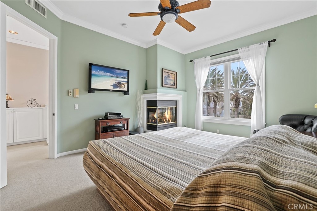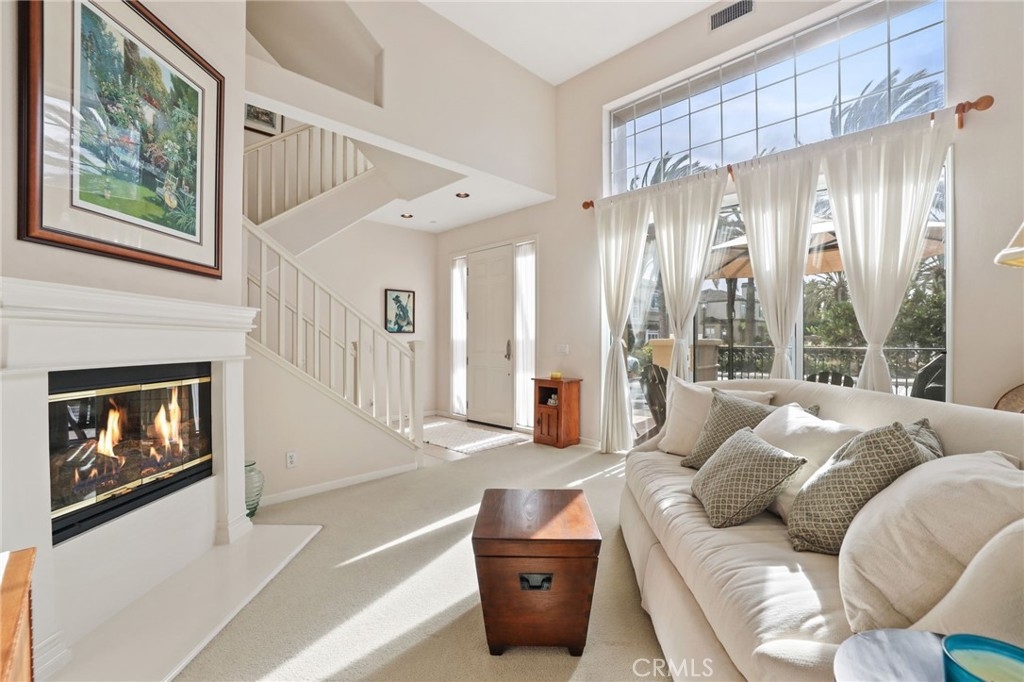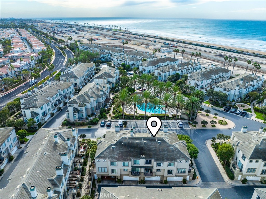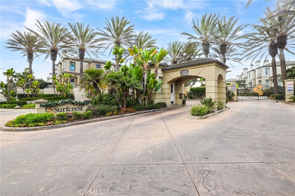 Arguably one of the best locations within the prestigious gated community of Surfcrest. This perfectly positioned row of 4 units overlooking the resort stye pool and spa hasn’t been available in over 20+ years and gives incredible views. This property receives tons of natural light all day long due to its location and non obstructed frontage. Ample guest parking close by so guests do not have to park far. Very well taken care of by original owners. As you walk in you’ll find the formal living room with fireplace and sliding doors leading out to the oversized patio, great for entertaining! Boasting an open floor plan with a balcony off of the kitchen / living area. 3 bedrooms, 2.5 baths, the primary suite offers amazing views of the pool and also has peek a boo ocean views, large walk-in closet, cozy fireplace, soaking tub, separate shower, and dual sinks. High ceilings throughout, tankless water heater, soft water system, oversized finished garage with storage and a large convenient interior laundry room with utility sink. Close to Main Street, The Huntington Club, Central Park, Wetlands,Shopping, Restaurants, Dog Beach, Bike Paths, and Award Winning Schools!