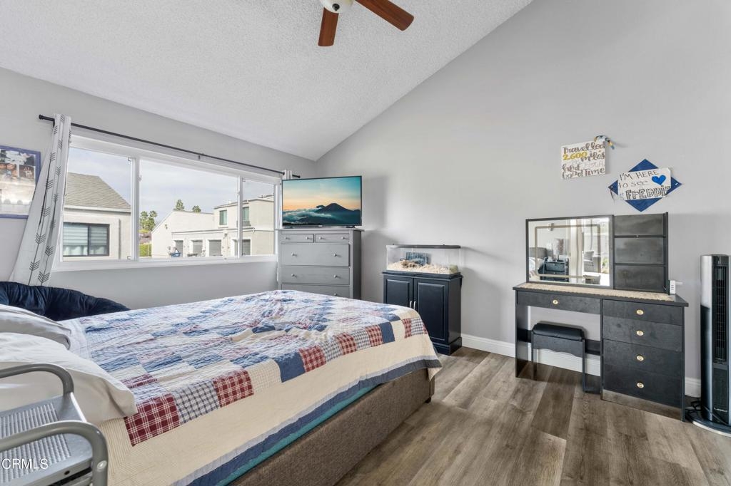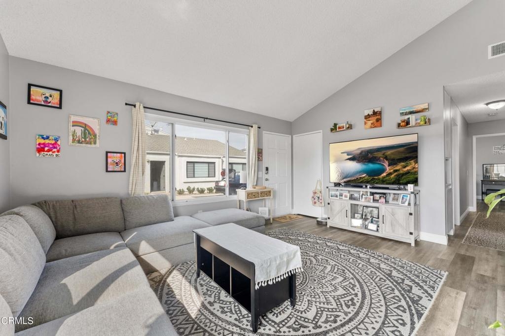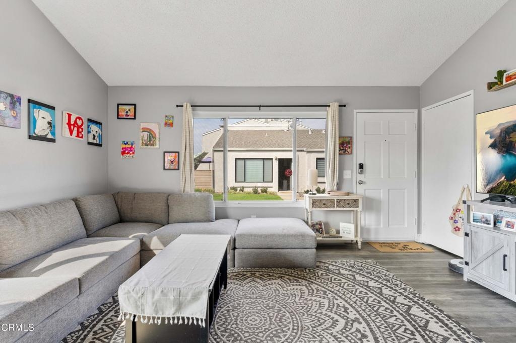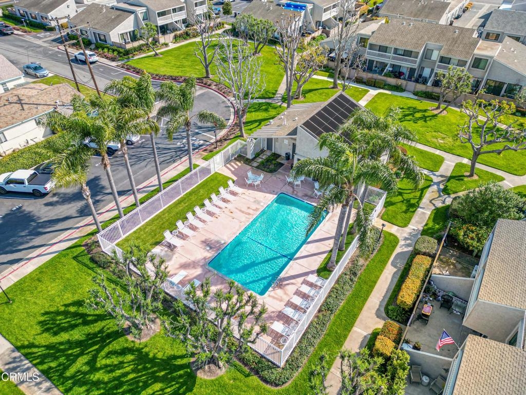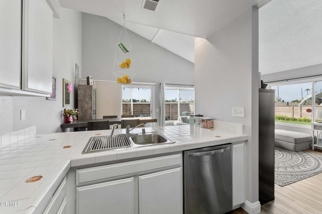 This single level home boasts a light, bright and airy room with vaulted ceilings, wood vinyl flooring with open views and open floor plan. Paint and vinyl flooring were done in August 2020. The kitchen is bright with white cabinets and tile counter tops with new appliances. Garage is attached to the house with new garage door opener with an app functionality to open from your phone. This house is equipped with a Nest door lock. As you sit on the open patio with concrete faux wood walls and a fire pit, you'll enjoy the sunshine, and the open private area where this unit sits in the back of the complex. Home is centrally located to beaches, freeways, restaurants, shopping & schoolsHOA: $339/month includes water, trash, maintenance grounds, building insurance. There is community pool and a clubhouse for residents to rent for events. Please do not go direct or disturb tenant.