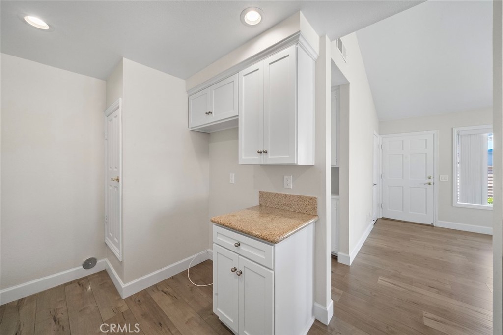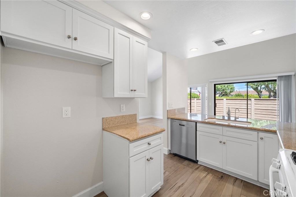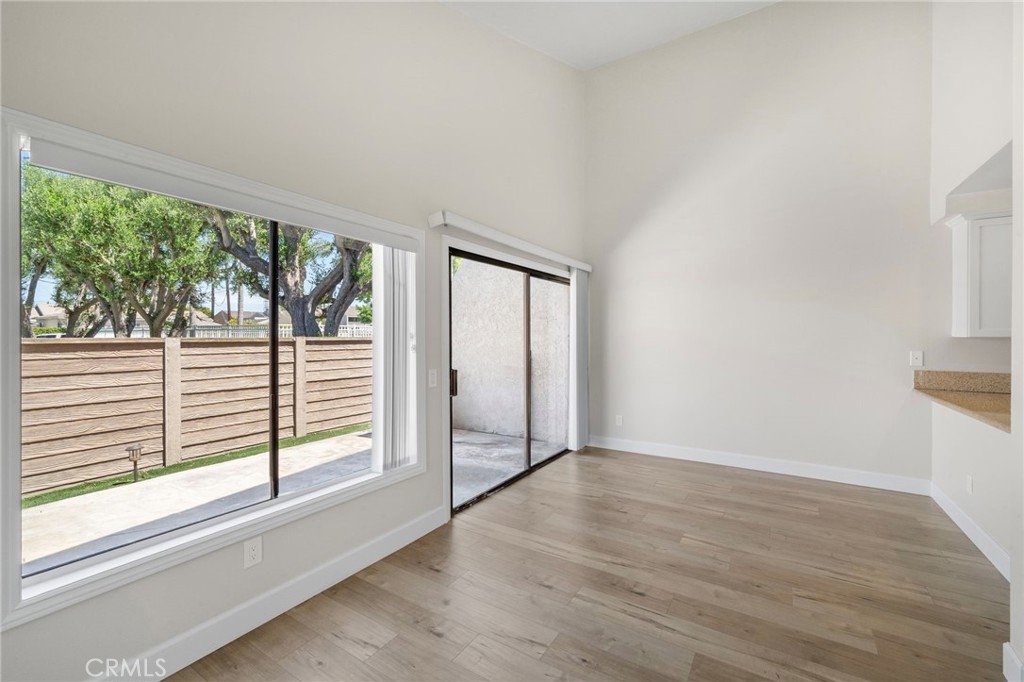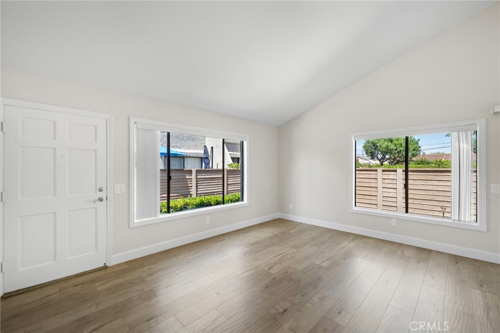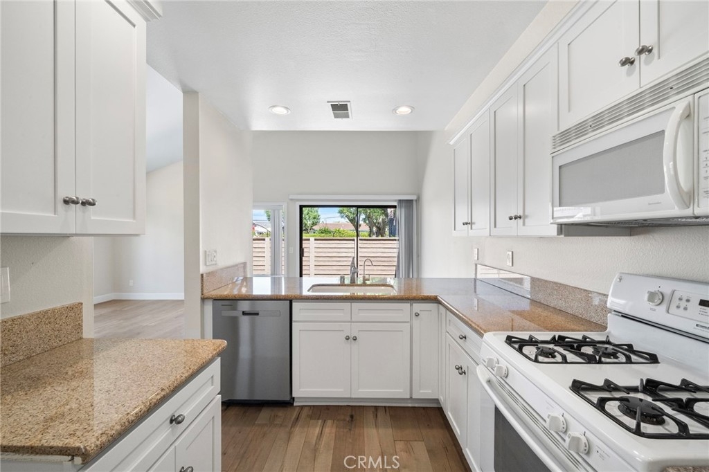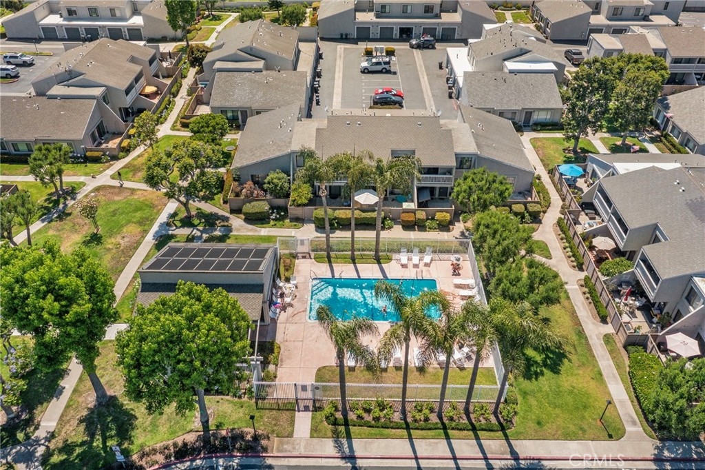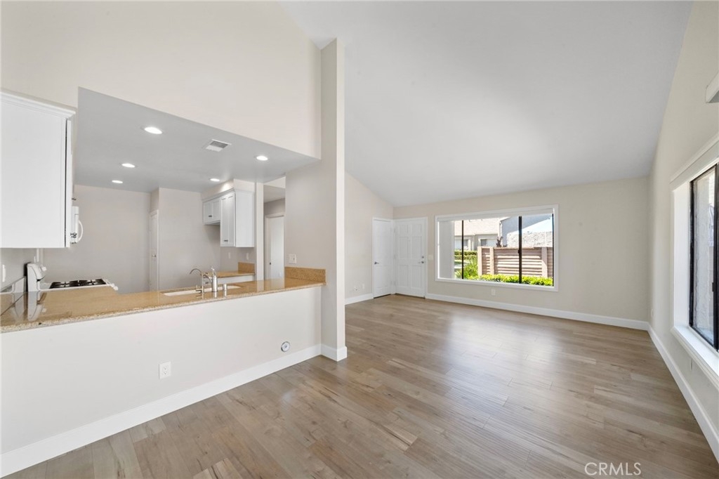 Beautifully Remodeled Single-Level End Unit in Prime Location Step into this stunningly remodeled single-level townhome, offering 2 spacious bedrooms and 2 full bathrooms in a bright, open floor plan. As an end unit, it enjoys extra natural light and privacy—ideal for comfortable, everyday living. The living and dining areas flow seamlessly beneath soaring vaulted ceilings, creating a true great room feel. The updated kitchen is a home chef’s delight, featuring newer stainless steel dishwasher, gas range and oven, microwave, ample cabinetry, overhead spot lighting, and a convenient breakfast bar. Stylish laminate wood flooring runs throughout the home, enhancing its modern yet inviting vibe. The large primary suite boasts its own vaulted ceiling, walk-in closet, and a beautifully remodeled bathroom complete with a walk-in shower, granite countertops, and elegant designer glass tile. The guest bathroom has also been tastefully updated and includes a shower/tub combination. Step outside from the dining area to your private patio—perfect for entertaining or simply relaxing with room for a table, chairs, and your BBQ setup. Additional features include a large one-car garage with vaulted ceilings offering excellent overhead storage and direct access to the kitchen—making unloading groceries a breeze. You’ll also enjoy an assigned parking space and guest parking nearby. As a bonus, the community includes a sparkling pool—an uncommon perk in this area! Ideally located close to top-rated schools, hospitals, shopping, dining, freeway access, beautiful beaches, and vibrant downtown Huntington Beach—this home truly has it all.