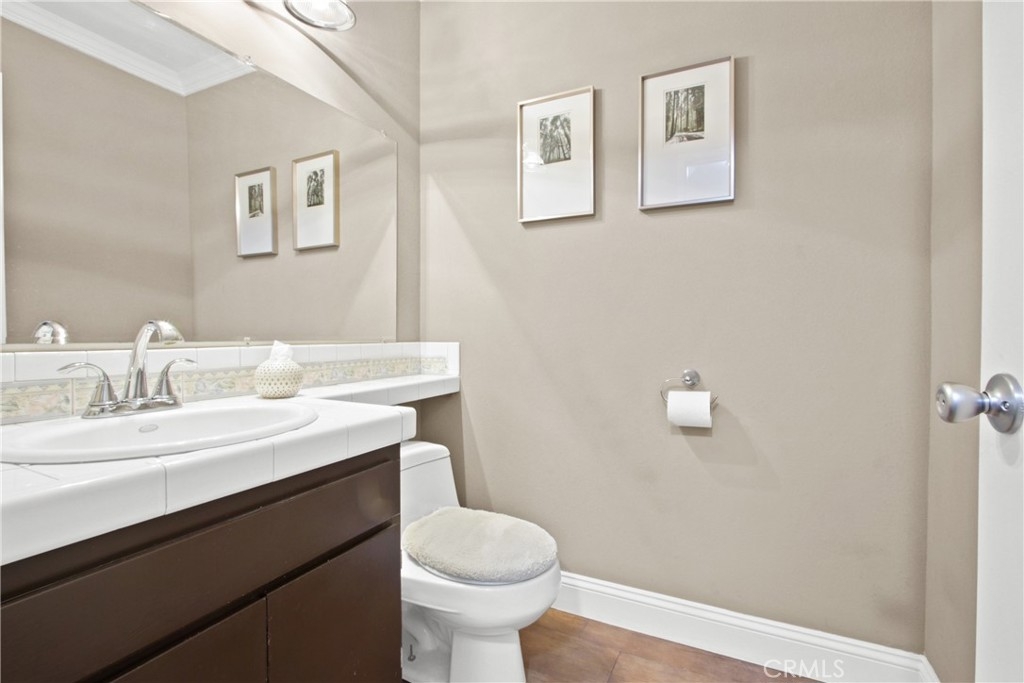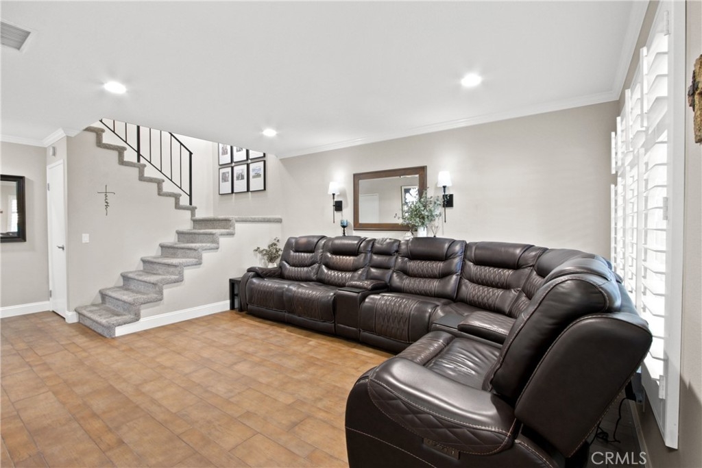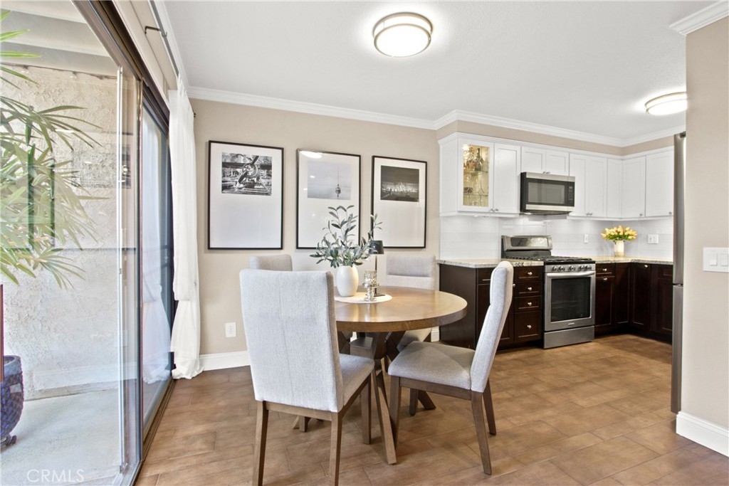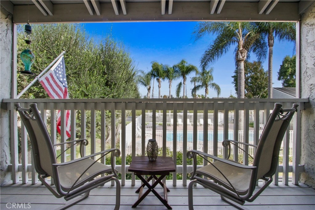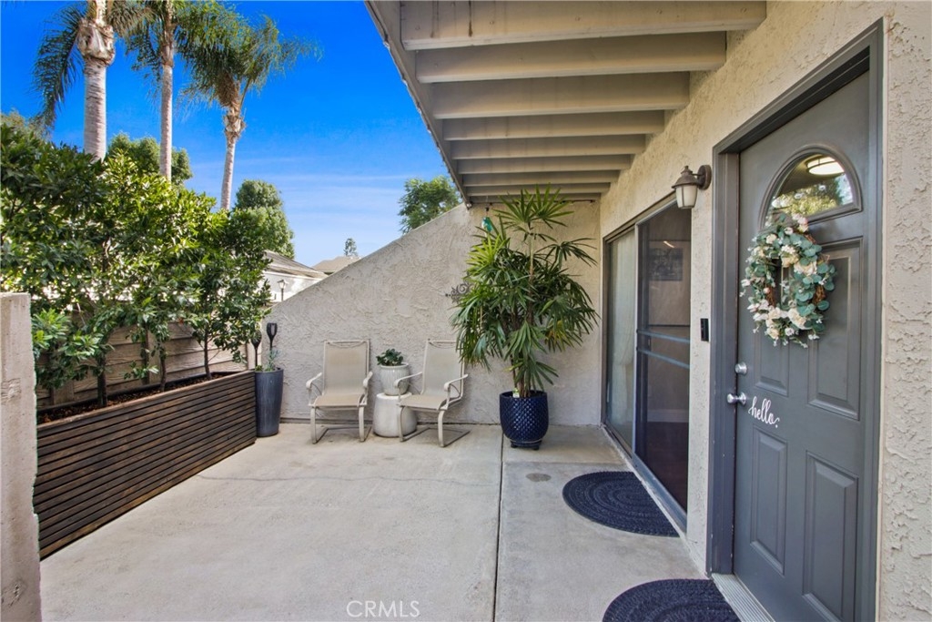 Nestled in the charming Huntington Beach community of Tamarack Village! HIGHLY UPGRADED townhome with a LOW HOA, three-bedrooms, one and a-half-baths, situated nicely within the middle of the community overlooking the pool and clubhouse, with no neighbors in front or behind! This home has been lovingly cared for by the owners for the past 21 years, truly a rare gem waiting for you to discover! The remodeled kitchen (in 2018) is equipped with elegant Viscount white granite counters, 16x4 inch modern white glass back splash, Pro-American recessed shaker style panel cabinets in Java Cherry (lowers) and Linen (uppers) including under lighting, a Kohler stainless sink, five burner KitchenAid gas range with oven, Samsung refrigerator, Bosch dishwasher, and an under mounted microwave above the stove. The dine in kitchen is adjacent to the living room, and a spacious private front enclosed patio connected by a sliding door which makes it perfect for entertaining! Tucked around the back side of the living room is the half bathroom, and the direct access to the garage. All three bedrooms are located on the second level, a nice size primary room with two separate closets (mirrored sliding doors), and a balcony overlooking the pool with expansive views of the community! Across the hall from the primary suite, are the two additional bedrooms. The upstairs bathroom was handsomely remodeled in 2022 includes a Carrara marble vanity, bidet toilet, and a floor to ceiling “marble like” large tiled shower with frameless glass enclosure and a long shelf perfect for all of your toiletries! Other upgrades include: Central AC and heat, a separate 220V outlet for EV charging in the garage, dual pane low e-glass windows, plantation shutters, Gambarelli Atlantis Porcellanato plank tile "wood look" downstairs and in both bathrooms, crown molding, larger baseboards, dimmable LED recessed ceiling lights, 40 gallon water heater installed in 2023 with a six yr. warranty, diamond cut and polished cement patio slab, and washer and dryer in the garage are included. Residents of this community enjoy the sparkling swimming pool, complimentary use of the clubhouse and green belts! Water and trash are included with the HOA! Just a short four mile drive to Huntington State Beach where the sea meets the sand! This turnkey townhome is a must have!