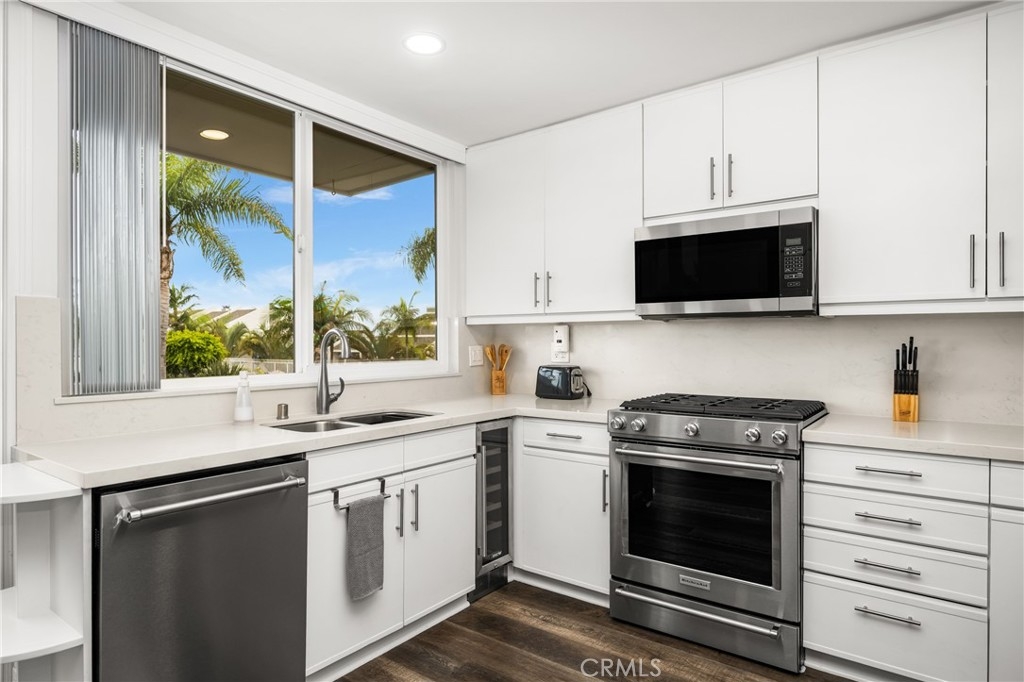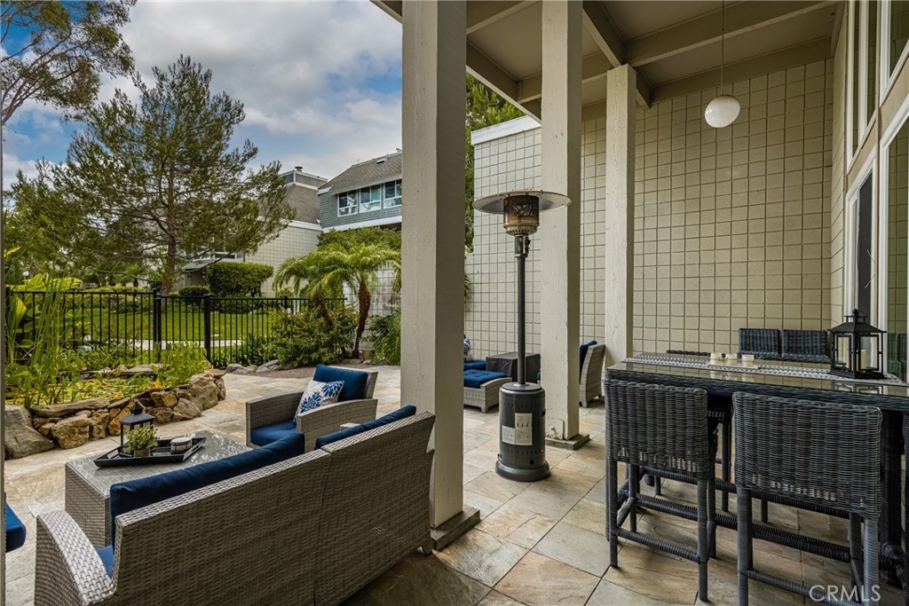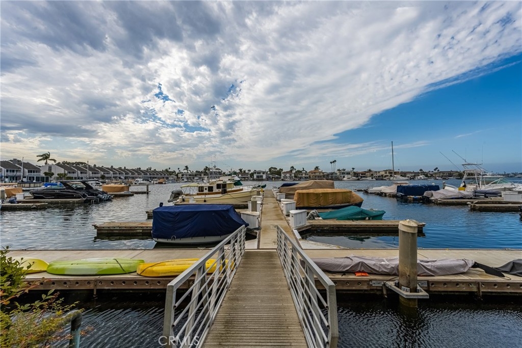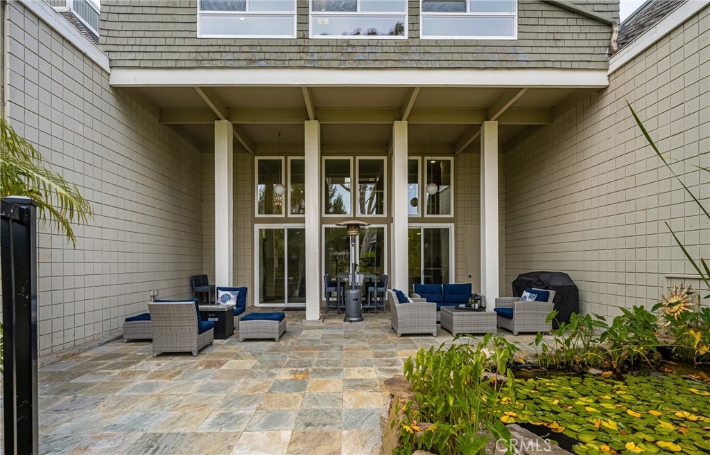 New Price! Experience the best of Huntington Harbour living in this beautifully updated tri-level condo with a deeded 25-foot private dock just moments from your door. This 3-bedroom, 2.5-bath residence is located in a gated, resort-style community and has been thoughtfully remodeled to blend luxury with coastal comfort. Fresh paint, new light Berber carpet, and newer dual-pane windows create a light and airy feel throughout. The gourmet kitchen features white cabinetry, quartz countertops, and high-end KitchenAid appliances along with a built-in Dacor refrigerator. A formal dining area, breakfast nook, and spacious living room provide multiple options for gathering, while the lower-level family room with fireplace and bar opens directly to the private patio. The outdoor space is a true retreat with multiple seating areas, a fire pit, and a serene pond with a waterfall feature framed by lush greenbelts for privacy. Upstairs, the primary suite offers a spa-like, remodeled bathroom with a freestanding tub, dual vanities, and sleek contemporary finishes. A fully updated second bath features Carrara porcelain tile and modern details. Beyond the home itself, the community amenities include tennis, pickleball, and basketball courts, a sparkling pool and spa, and direct access to a sandy beach area for paddleboarding, kayaking, and sunbathing. This is a rare opportunity to enjoy a private dock, peaceful setting, and vibrant neighborhood in one of Huntington Harbour’s most sought-after enclaves.