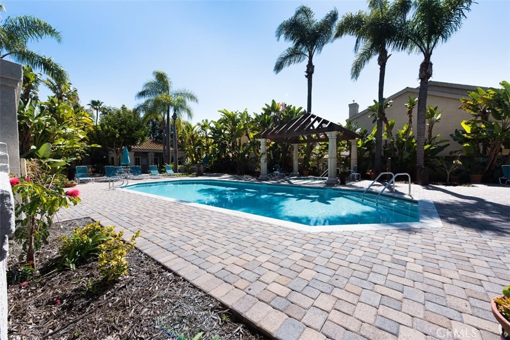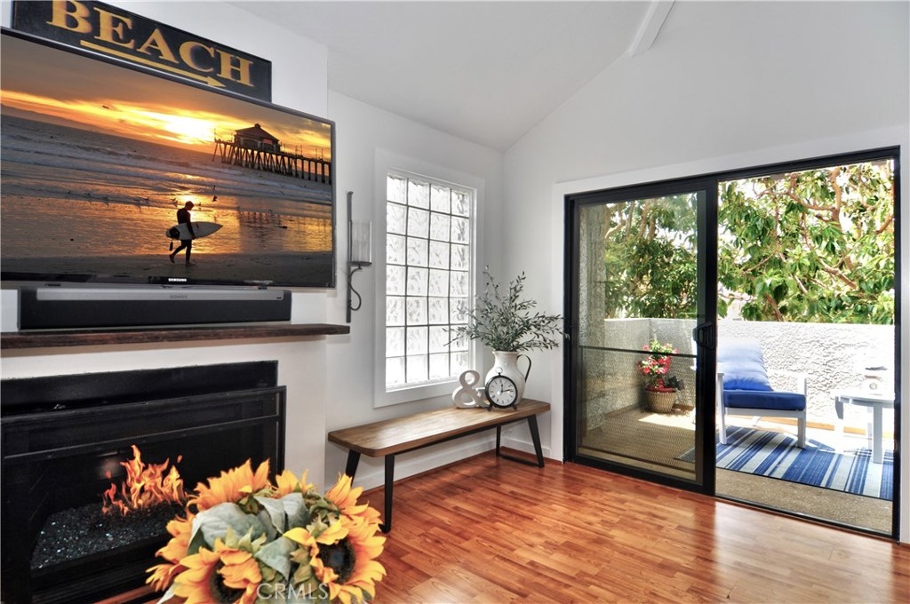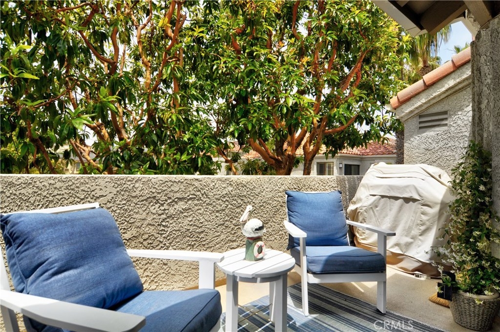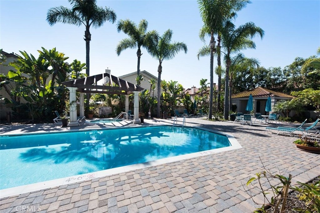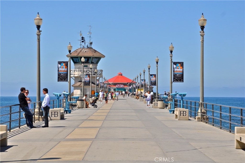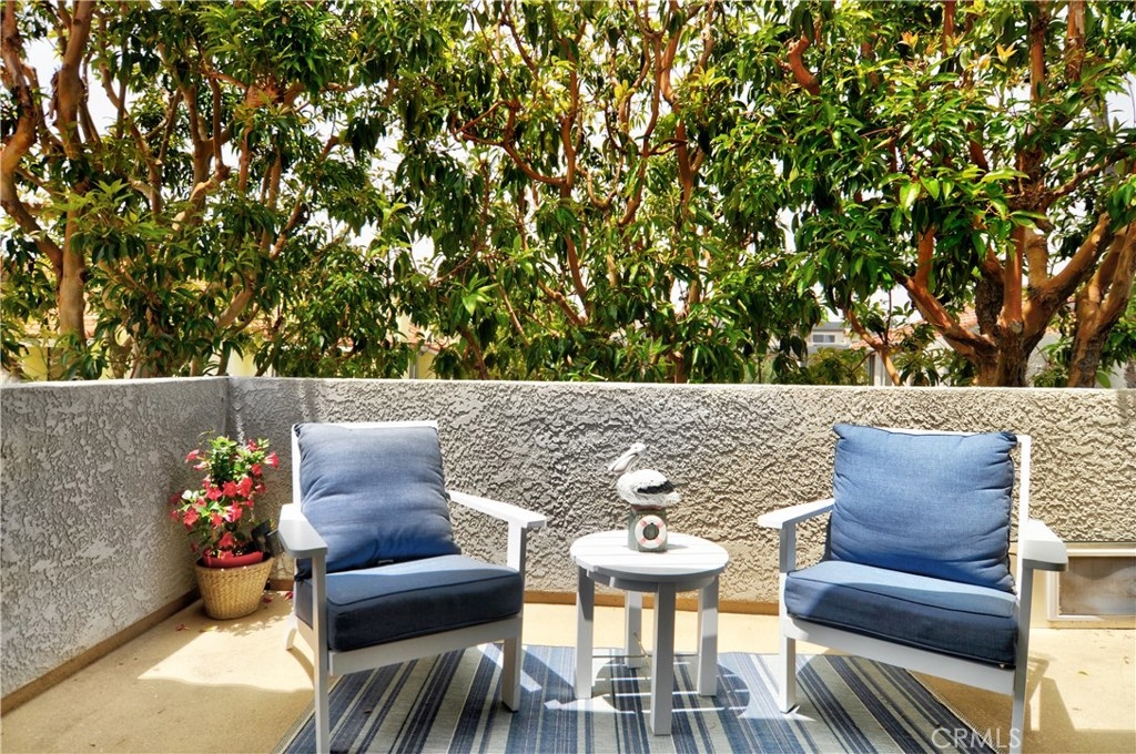 Welcome to this beautifully remodeled condo in the desirable Tiara de la Pacifica community. Great upper end unit quiet location with private courtyard entrance and an Open Floor Plan. The Renovated Kitchen with quartz counter tops, white shaker cabinets, contemporary glass tile back splash and garden window opens up to the dining area and family room. Artistic design with vaulted ceilings, newer paint, elegant wood laminate flooring, updated fireplace with glass rock, glass block windows, and sliding door to the large private patio with gorgeous views of the trees. The living area is bathed in natural light, and ocean breezes stream through this lovely home! Two spacious bedrooms, two bathrooms, built in storage, laundry closet with stackable washer/dryer space, huge loft storage with drop down ladder, and two private decks. The largest bedroom has a large walk-in closet and dressing area. The second bedroom has its own balcony patio which faces south and provides great morning sunlight. Detached single car garage, plus one additional assigned parking space, and plenty of parking in this great community. Community pool, Water fountain, Club House and lush landscaping throughout the complex. Located steps from the Bolsa Chica wetlands, about 1 mile to the beach, and a short walk to restaurants, Trader Joe's and the Harbour Mall Shopping Center. Complex is FHA and VA approved. This condo is a MUST see and will not last!