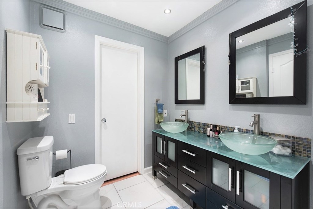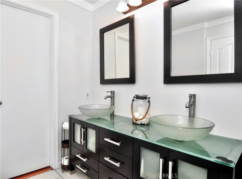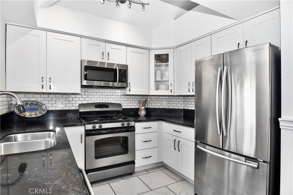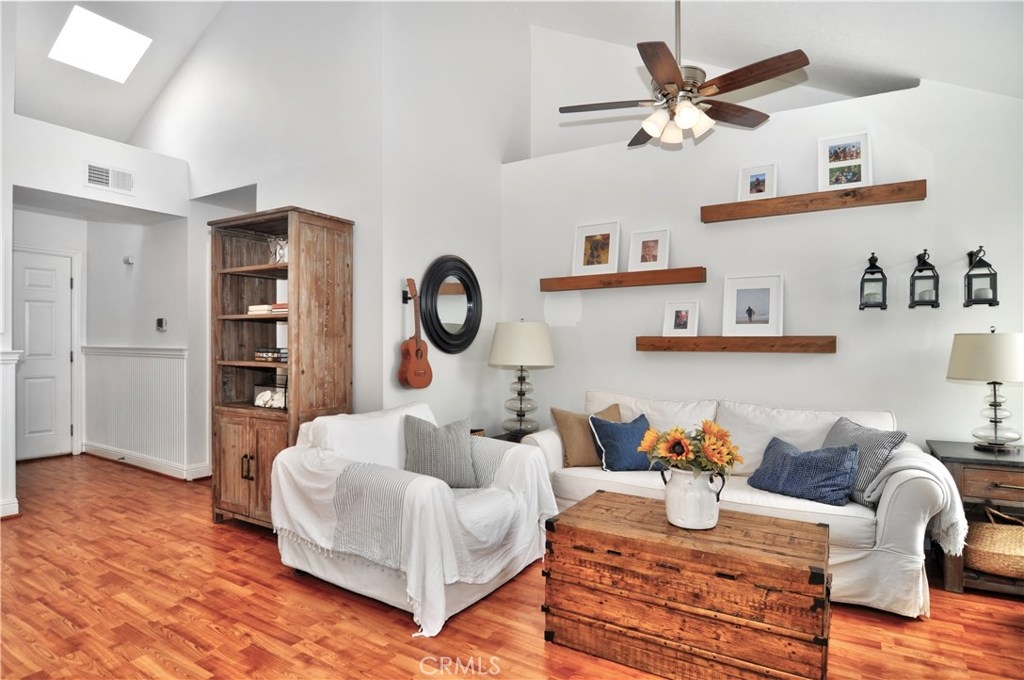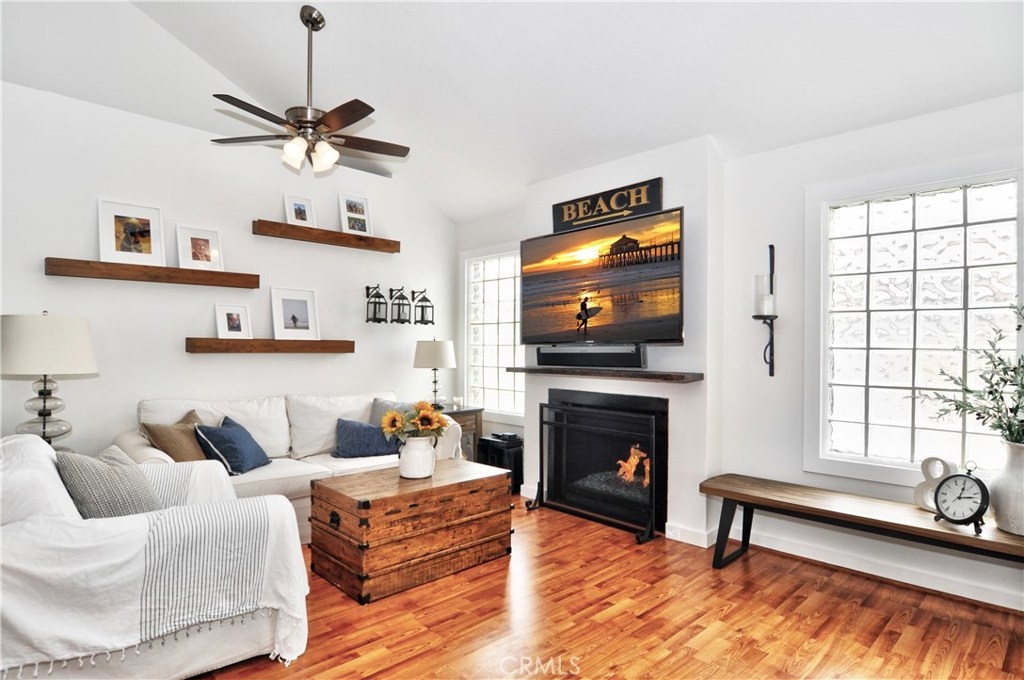 Welcome to this beautifully remodeled condo in the desirable Tiara de la Pacifica community. Great upper end unit quiet location with private courtyard entrance and an Open Floor Plan. The Renovated Kitchen with quartz counter tops, white shaker cabinets, contemporary glass tile back splash and garden window opens up to the dining area and family room. Artistic design with vaulted ceilings, newer paint, elegant wood laminate flooring, updated fireplace with glass rock, glass block windows, and sliding door to the large private patio with gorgeous views of the trees. The living area is bathed in natural light, and ocean breezes stream through this lovely home! Two spacious bedrooms, two bathrooms, built in storage, laundry closet with stackable washer/dryer space, huge loft storage with drop down ladder, and two private decks. The largest bedroom has a large walk-in closet and dressing area. The second bedroom has its own balcony patio which faces south and provides great morning sunlight. Detached single car garage, plus one additional assigned parking space, and plenty of parking in this great community. Community pool, Water fountain, Club House and lush landscaping throughout the complex. Located steps from the Bolsa Chica wetlands, about 1 mile to the beach, and a short walk to restaurants, Trader Joe's and the Harbour Mall Shopping Center. Complex is FHA and VA approved. This condo is a MUST see and will not last!