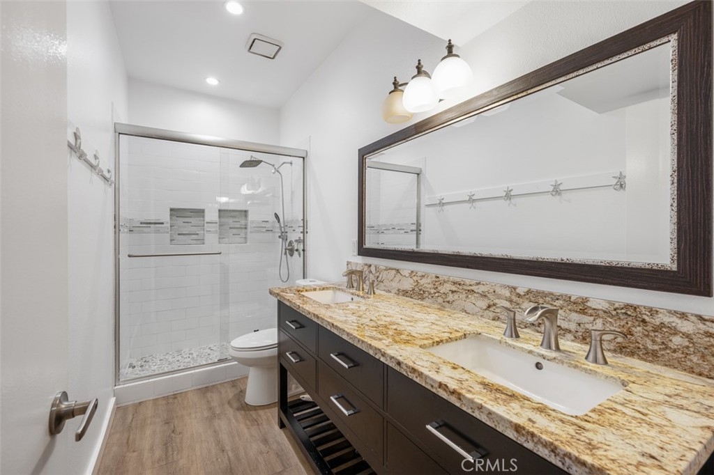 ASSUMABLE FHA LOAN AT 3.375%!! CALL FOR DETAILS. Step into a slice of paradise in this vibrant, gated community that perfectly captures the essence of resort-style beach living. This single-level gem is a beautifully maintained 1-bedroom, 1-bath condo that’s ready to welcome you home with charm and comfort. Freshly painted and detailed to perfection, this home greets you with brand-new hardscaping and elegant brickwork that sets the tone for what’s inside. Kick back in the inviting living room, complete with a cozy fireplace for those laid-back evenings. The kitchen is a culinary delight featuring sleek stainless steel appliances, granite countertops, and generous cabinet space—perfect for whipping up your favorite meals. When it’s time to unwind, retreat to your spacious bedroom, highlighted by a stylish barn door and full-length mirrored wardrobes. You'll be wowed by the renovated bathroom with its dual sinks, waterfall faucets, and a stunning glass-enclosed walk-in shower adorned with shimmering mosaic tiles. Spend your weekends soaking up the sun on the private patio or taking a dip in the sparkling, newly updated pool. Bonus perks include a one-car garage with additional storage and an assigned parking spot—because convenience matters. Best of all? You're just about a mile from the beach and minutes from Huntington Harbour, downtown HB, Pacific City, scenic wetlands, dog-friendly beaches, parks, playgrounds, shopping, dining, and more.