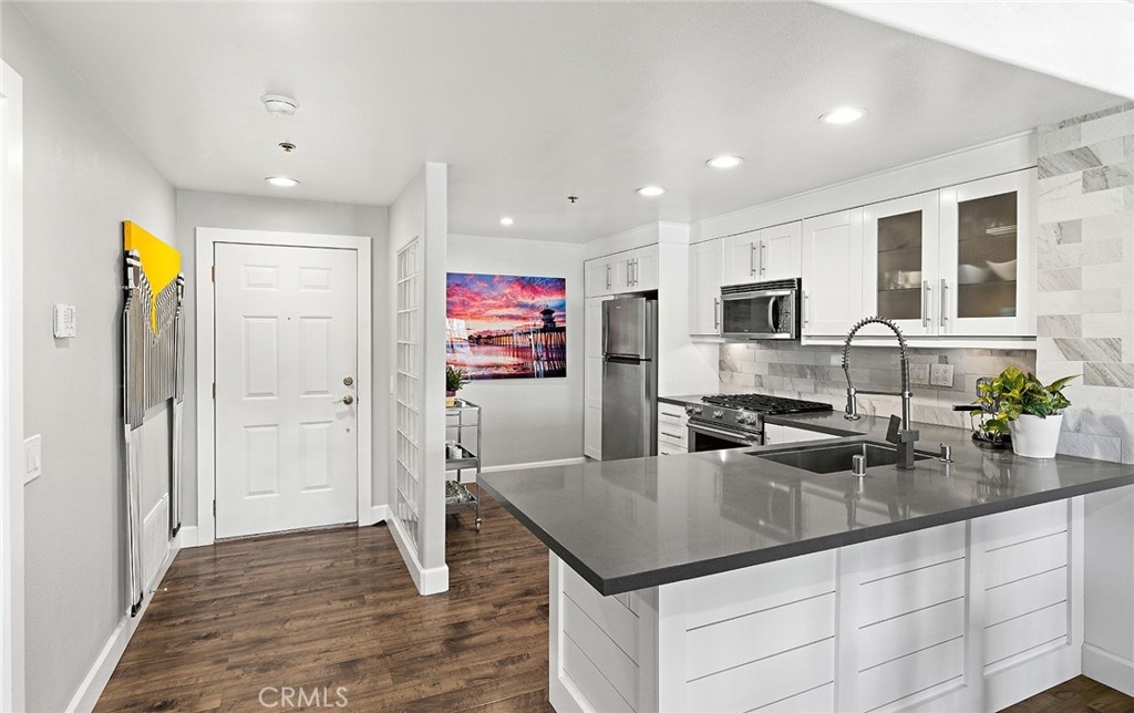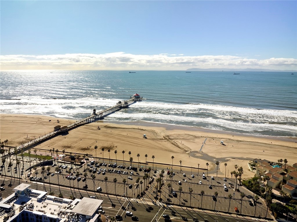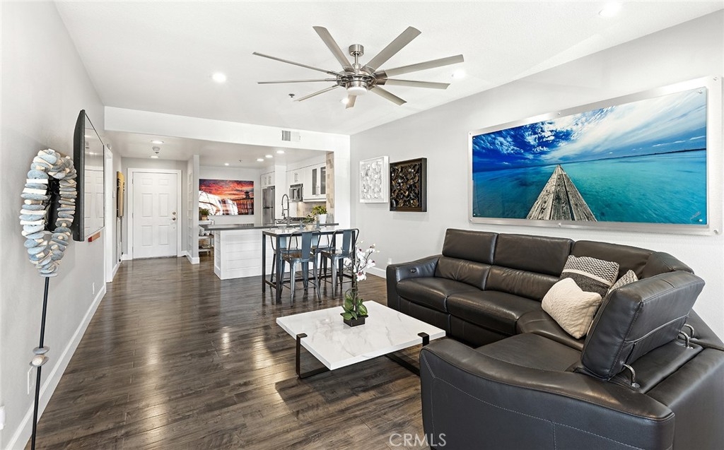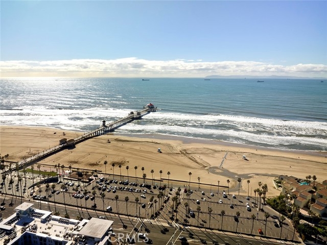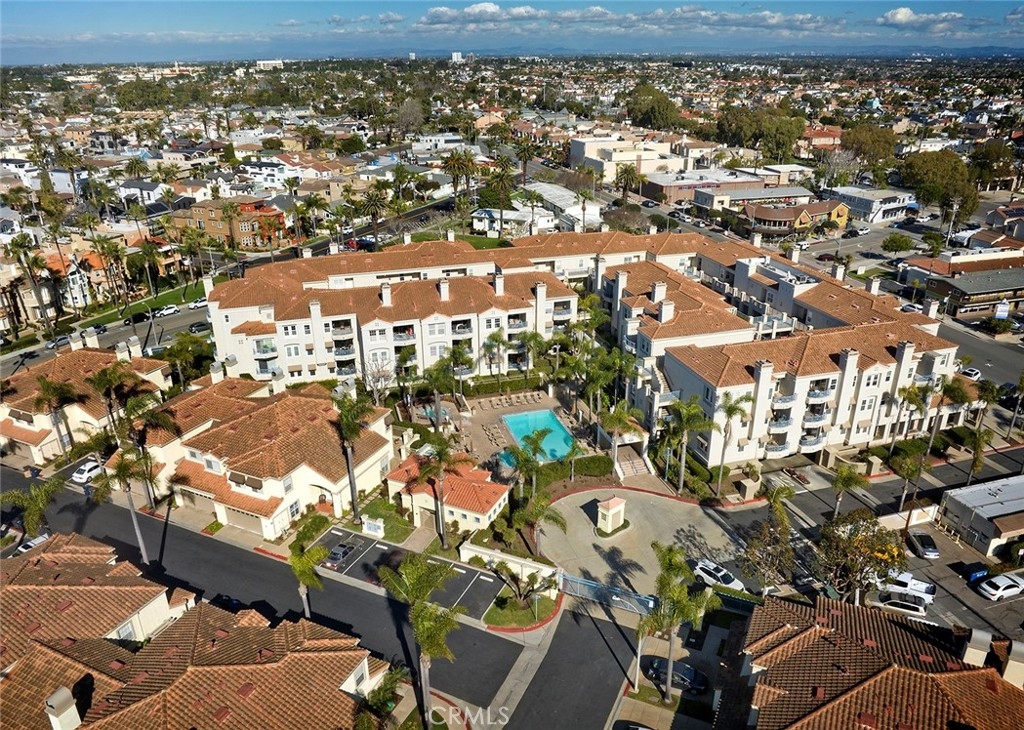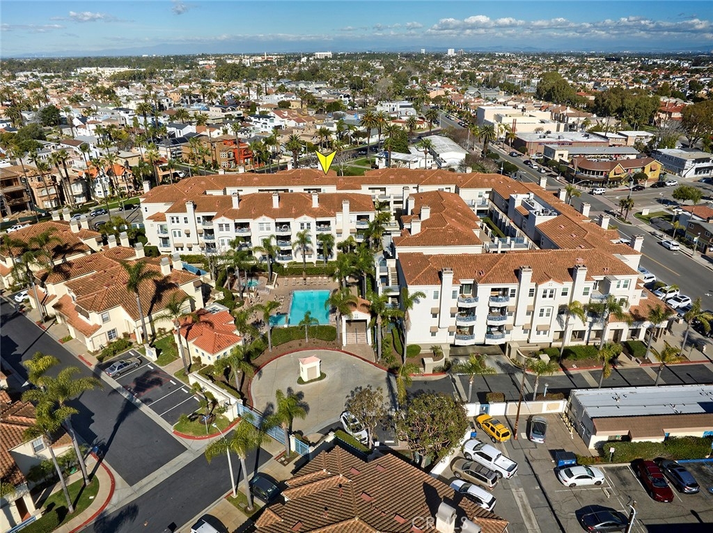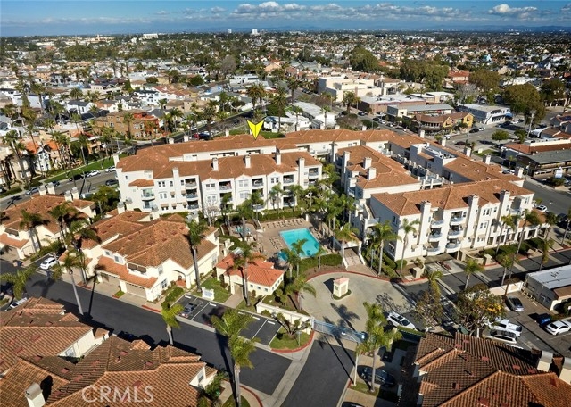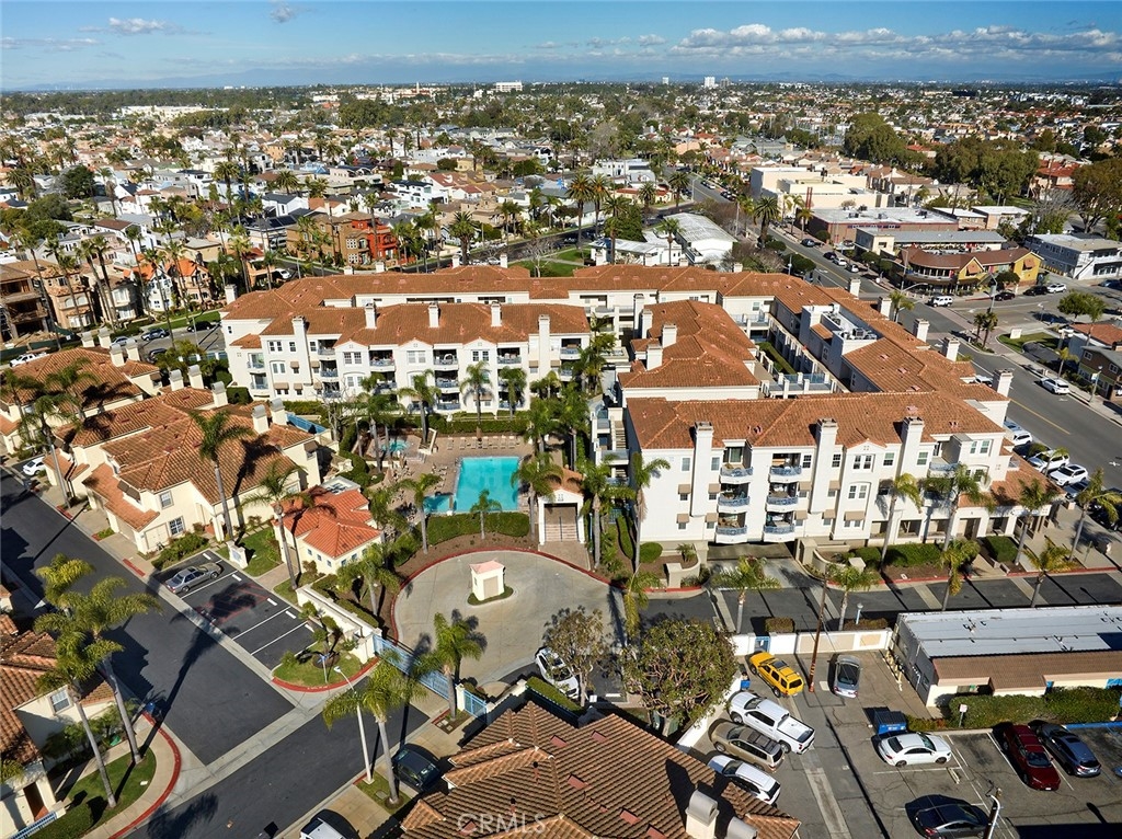 Welcome to Townsquare Condos; your own slice of luxury beach living! This meticulous & freshly remodeled extra-large 1 Bedroom condominium offers privacy with state-of-the-art secured access as well as an effortless downtown lifestyle just steps to the sand. This amazing property is located right on main street with over 100 restaurants and local eateries, live music and farmers markets, surf competitions, one block to Pacific City and annual festivities, Huntington Beach is truly defined by its sense of community and fun-loving atmosphere! This Pied-à-terre has spared no expense and has been remodeled from top to bottom. Brand new expanded open concept kitchen-living space, custom cabinetry with quartz counters, shiplap and marble accents with a stainless (gas) appliance group package. The home is outfitted with luxury LTV flooring throughout with gray and subtle brown undertones, blending seamlessly with any decor & artwork. Large living and sleeping quarters with dual sliders leading out to your private patio space from either room; overlooking the sunsets, palms and green space (additional storage closet and utility access location as well). The large walk-in master closet adjoins an exquisitely remodeled en-suite bathroom that boasts designer tile from floor to ceiling, custom cabinetry with quartz counters and raised modern wash-room accents, large format matte gray porcelain floors lead to an oversized frameless heavy-glass shower and water closet area. Upgraded plumbing, lighting and electrical with recessed lighting additions and an interior laundry closet with washer/dryer are included. Elevator access to all floors including the secure access subterranean garage for both personal and guest vehicles along with two convenient bike storage locker-rooms. This unit comes with 3 parking spaces!, 1 assigned and 2 guest spots. This second floor unit is also uniquely positioned within the complex as there is no dwelling unit above you. Beautifully maintained and private grounds with luxury pool and spa. Come and see this piece of coastal paradise!