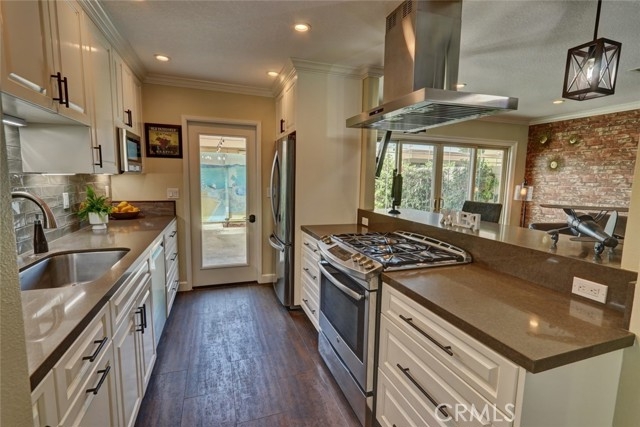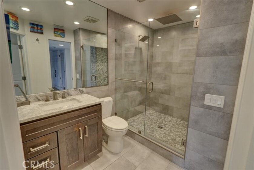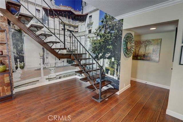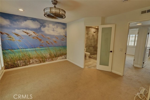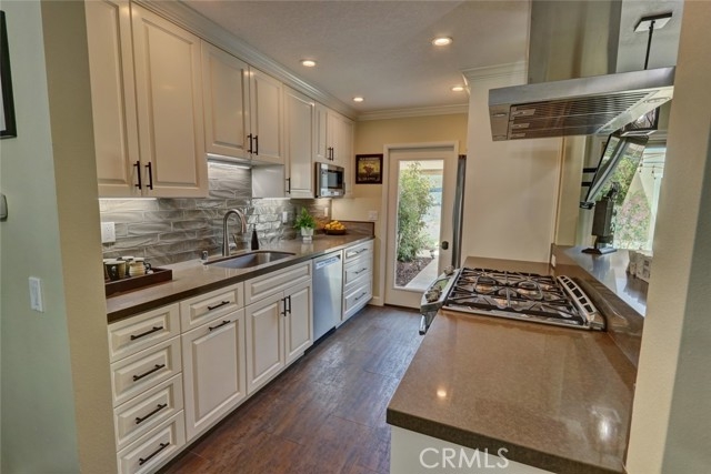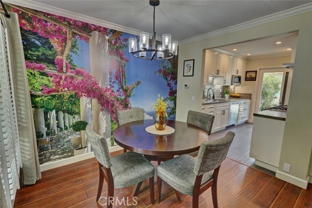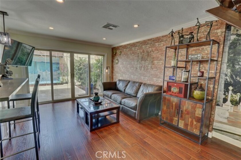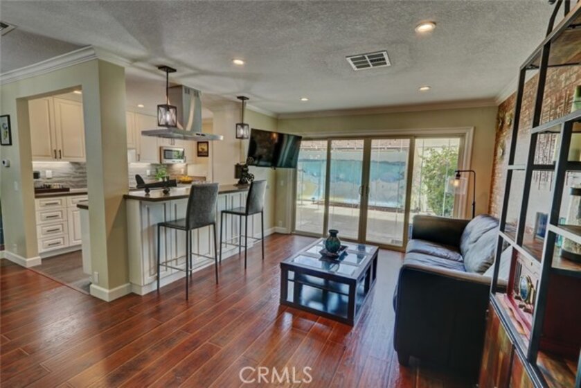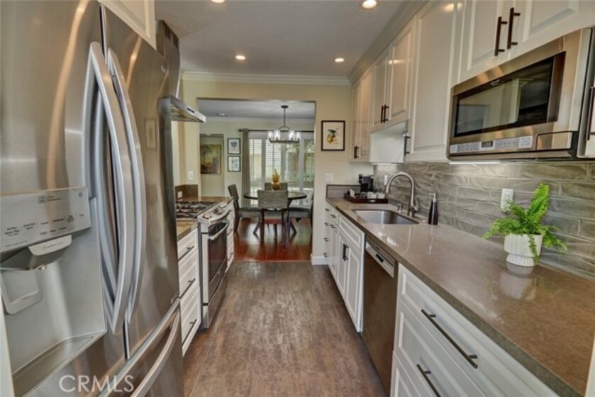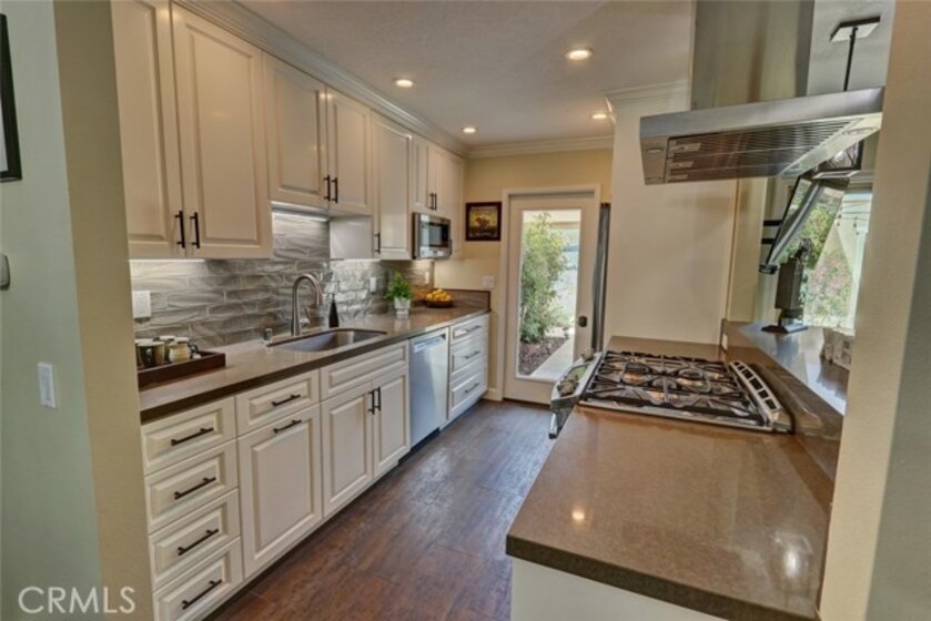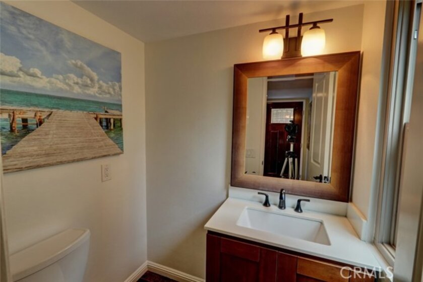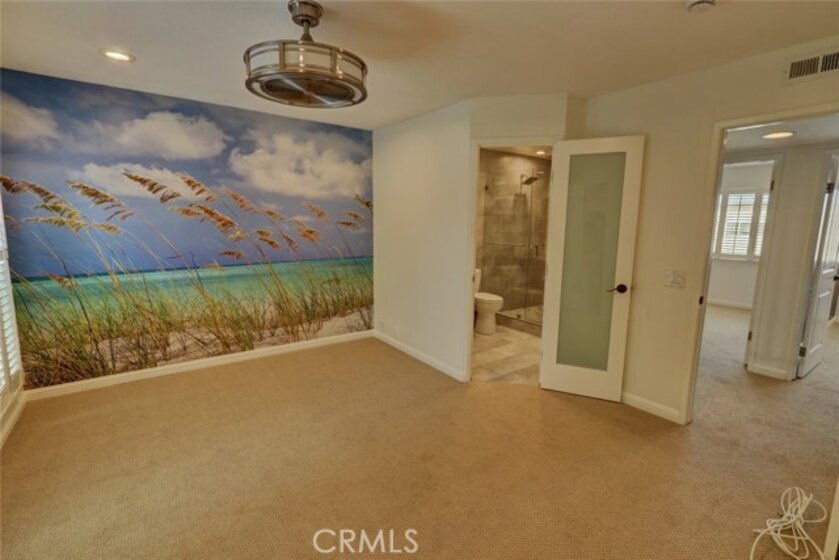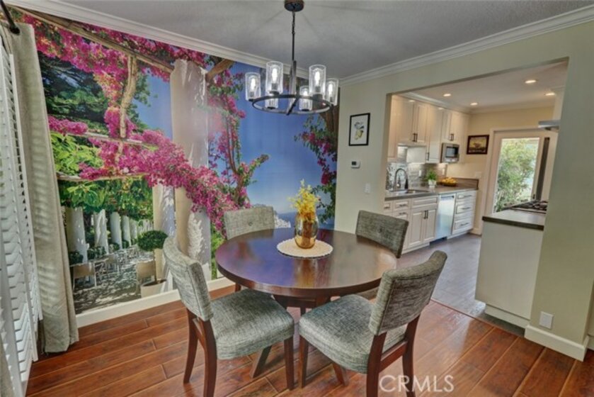 Escape to paradise without leaving home inside this upgraded, 2 bedroom with the 3rd bedroom being converted into an den/office, 1.5 bathroom condo where every wall tells a story! Travel inspired wallpaper from the Amalfi Coast, Central Park, and Bora Bora bring the world's most beautiful destinations right into your home!! Features include new carpet in all upstairs bedrooms and hallway, updated bathroom with large walk in shower, updated kitchen with white cabinets, gray Quartz countertops built in microwave, gas range, dishwasher, refrigerator, and a large stainless steel sink. You will enjoy being located just minutes away from the local beaches of Huntington and Newport Beach, shopping and great restaurants. Your private patio is perfect for morning coffee while you day dream of being in Greece. There is a 2-car detached garage that offers plenty of space for cars, bikes, beach gear, washer/dryer hookups, and direct access to the patio.