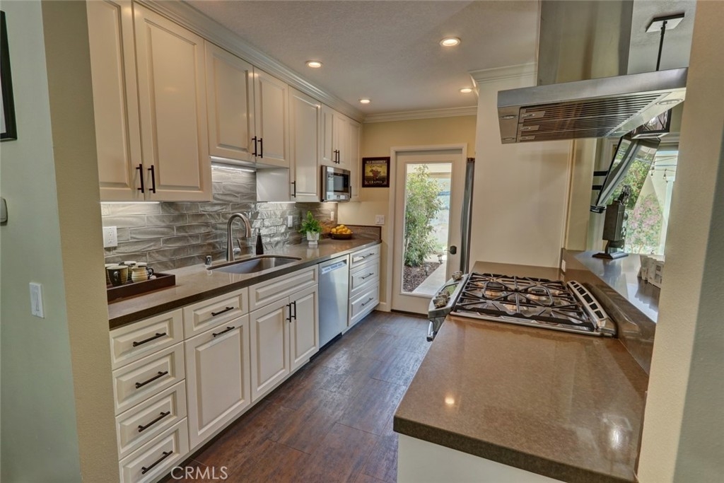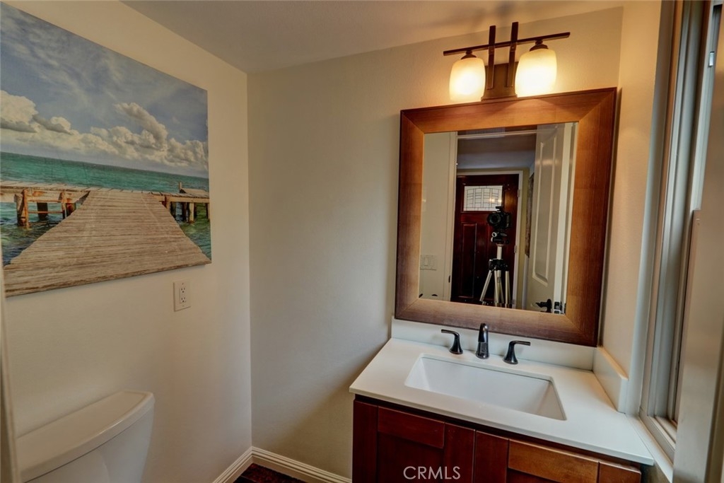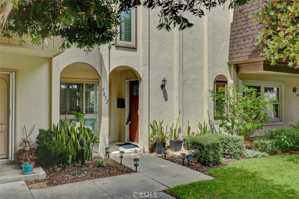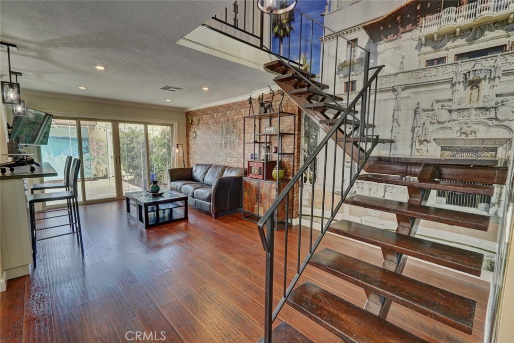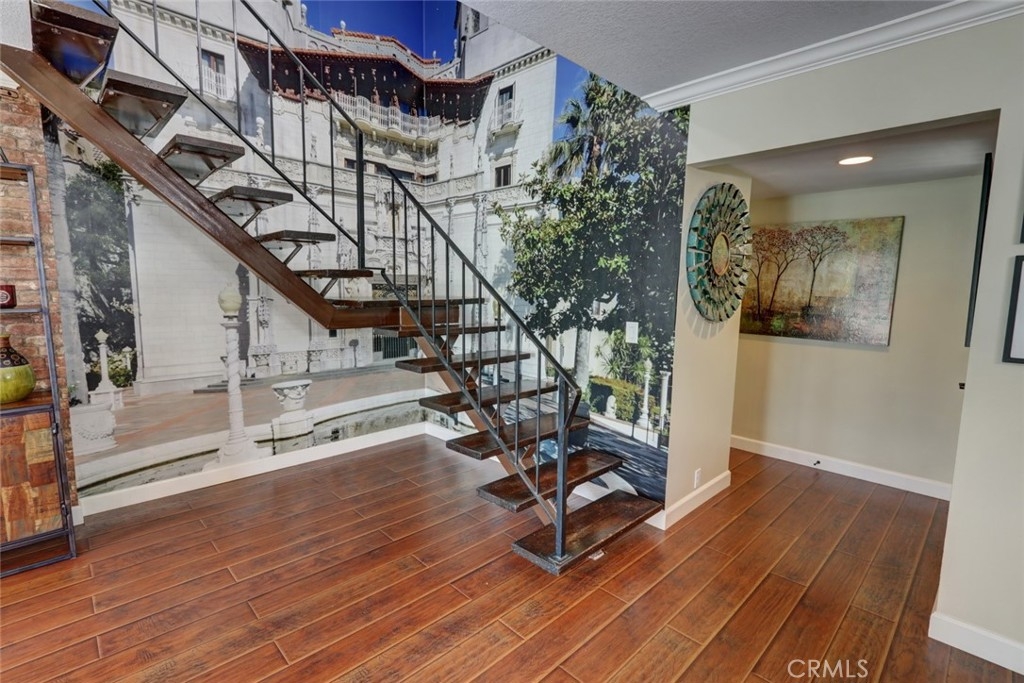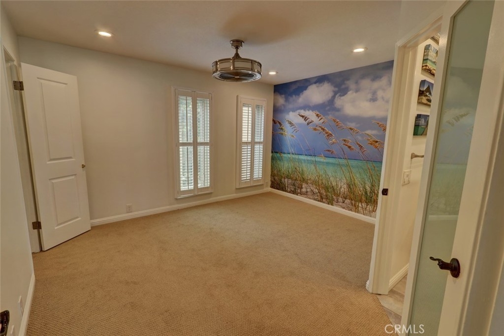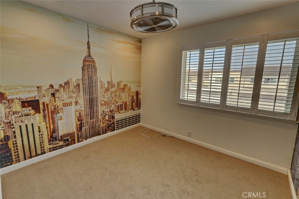 Escape to paradise without leaving home inside this upgraded, 2 bedroom with the 3rd bedroom being converted into an den/office, 1.5 bathroom condo where every wall tells a story! Travel inspired wallpaper from the Amalfi Coast, Central Park, and Bora Bora bring the world's most beautiful destinations right into your home!! Features include new carpet in all upstairs bedrooms and hallway, updated bathroom with large walk in shower, updated kitchen with white cabinets, gray Quartz countertops built in microwave, gas range, dishwasher, refrigerator, and a large stainless steel sink. You will enjoy being located just minutes away from the local beaches of Huntington and Newport Beach, shopping and great restaurants. Your private patio is perfect for morning coffee while you day dream of being in Greece. There is a 2-car detached garage that offers plenty of space for cars, bikes, beach gear, washer/dryer hookups, and direct access to the patio.